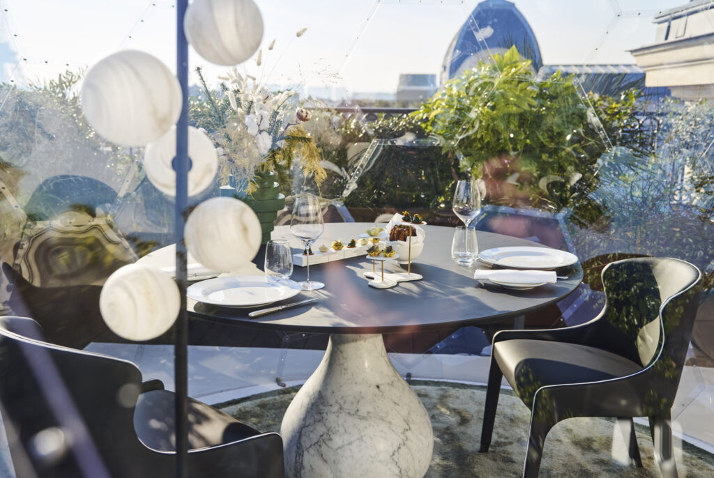 Les créations Roche Bobois transforment ces terrasses en havres de quiétude et de raffinement, où l’élégance du mobilier épouse le paysage urbain parisien.