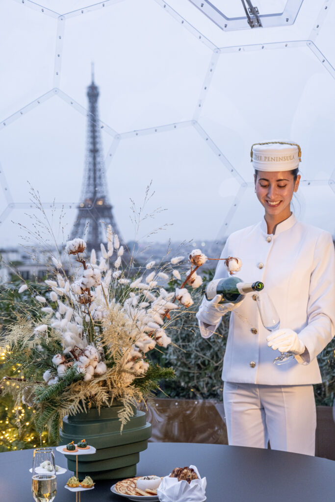 Pour une immersion encore plus intime, le Peninsula dévoile une seconde oasis perchée : La Suite Rooftop Eiffel. Niché sur la terrasse privée de la Suite Eiffel, cet écrin douillet invite à une parenthèse hivernale exclusive.