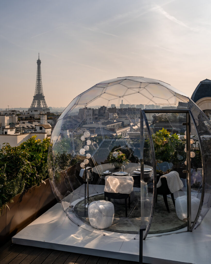 Le froid hivernal n’a jamais été aussi envoûtant. Pour la saison 2024-2025, le Peninsula Paris s’associe à Roche Bobois pour imaginer deux refuges suspendus sur les toits de la capitale, véritables écrins de luxe et d’intimité. Offrant une vue imprenable sur la Tour Eiffel, ces bulles cristallines, conçues comme des espaces de rêverie et d’évasion, redéfinissent l’art du cocooning haute couture.
