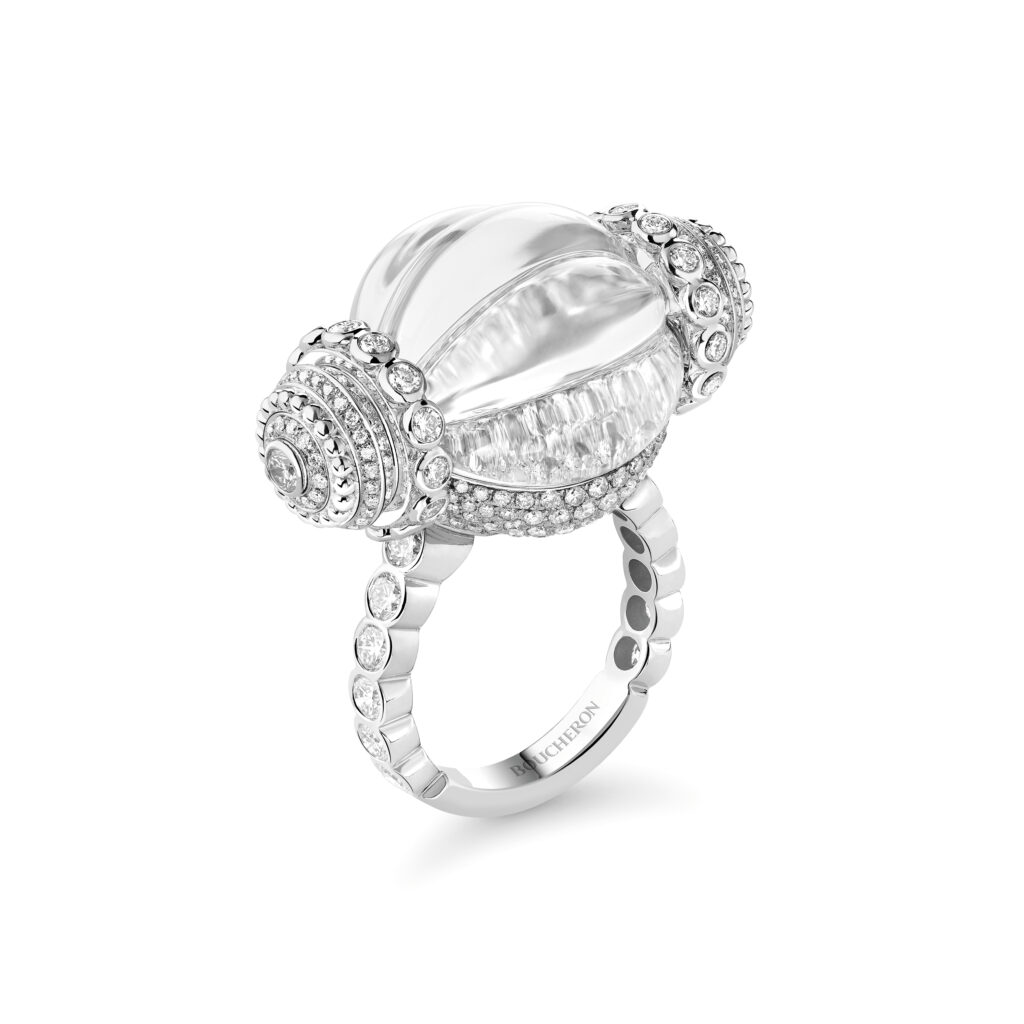 - La bague Architecture, chef-d’œuvre où le cristal de roche s’entrelace avec un sertissage précis de diamants.