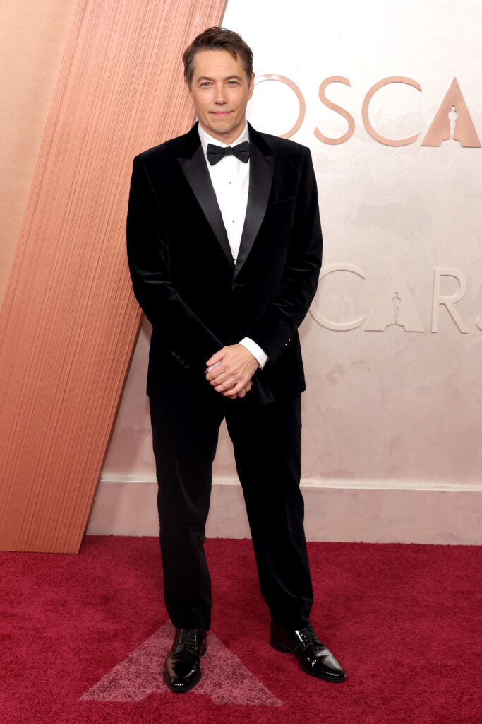 Le cinéaste de Red Rocket et The Florida Project a misé sur un smoking Dior Men réalisé sur mesure en velours noir, une alternative sophistiquée à la laine traditionnelle.