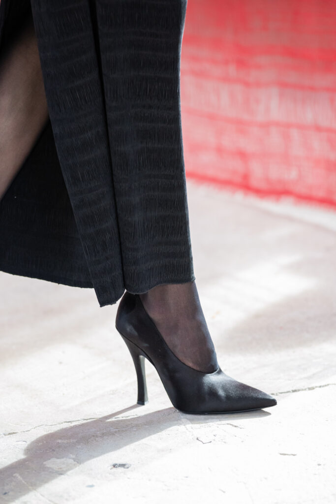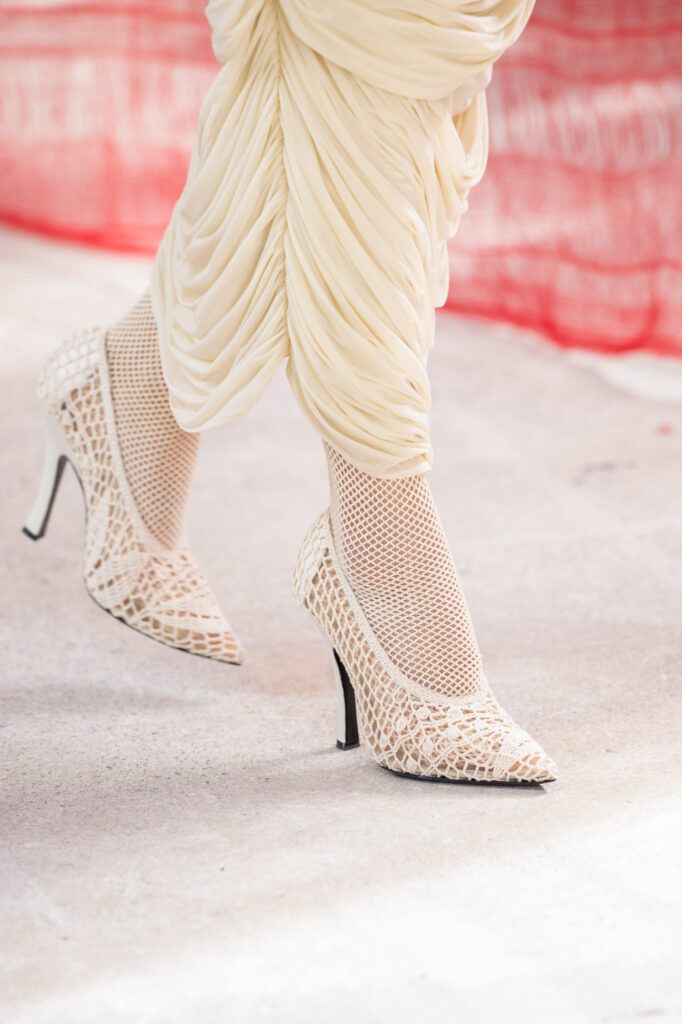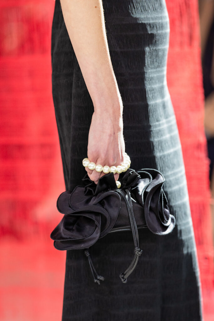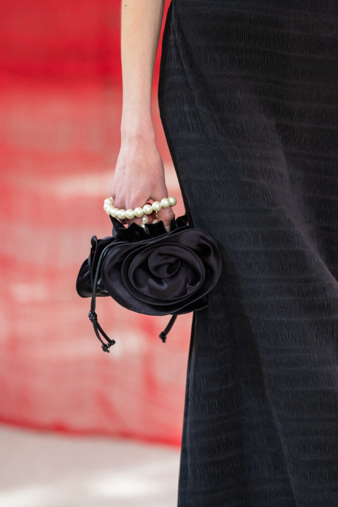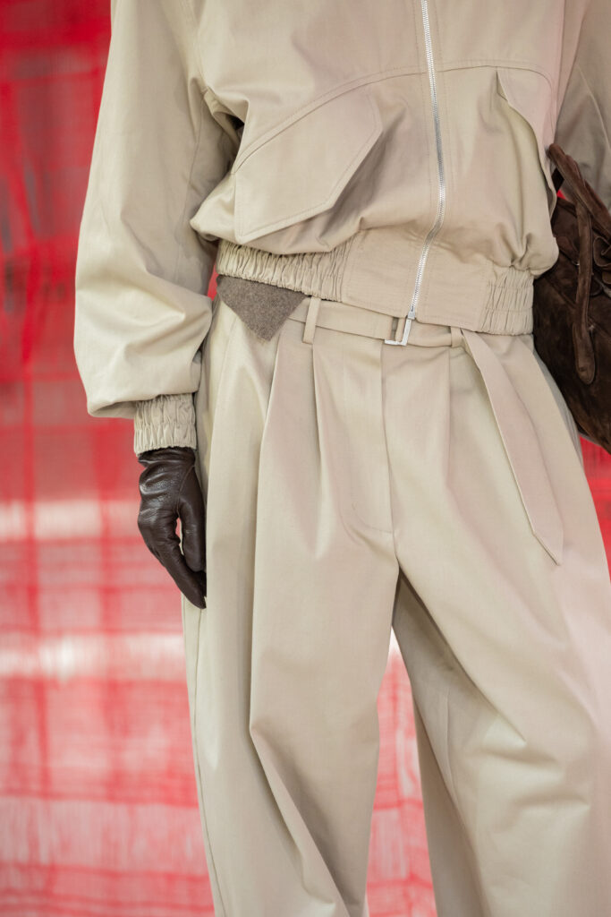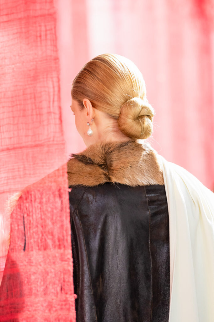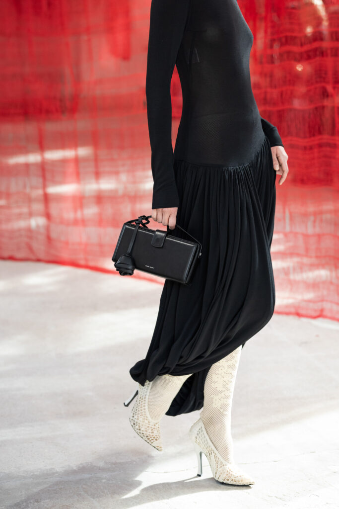 Le savoir-faire textile, mis en avant dans le décor comme dans les vêtements, souligne la volonté de Magda Butrym d’ancrer son travail dans une tradition millénaire tout en explorant de nouvelles possibilités créatives.