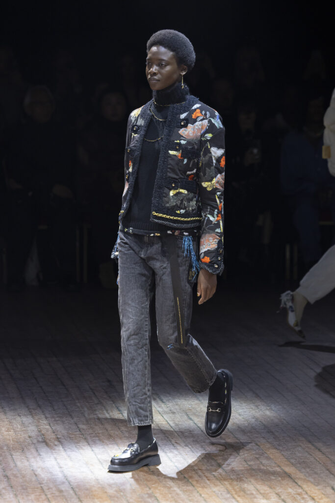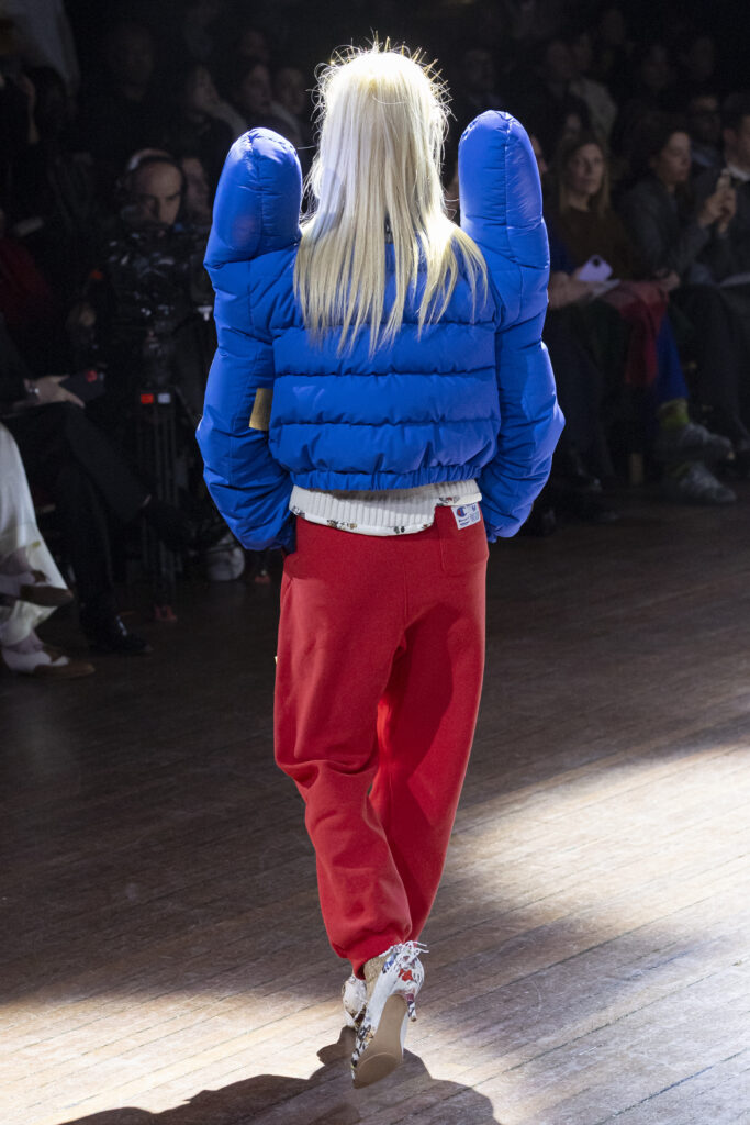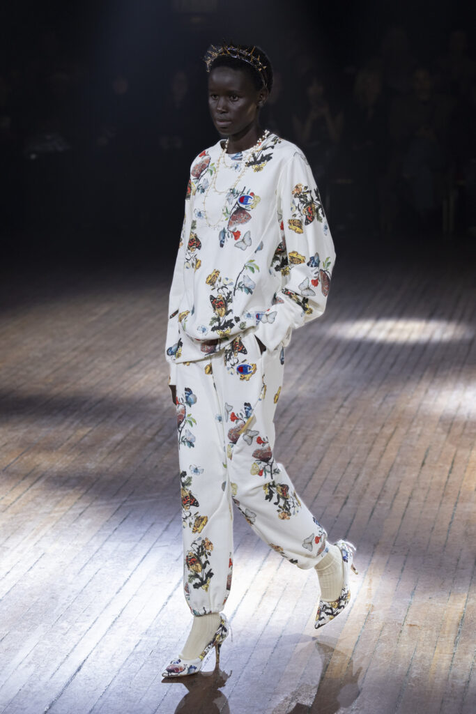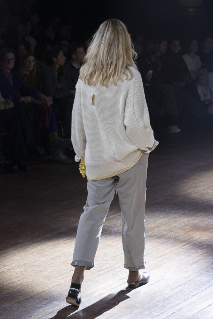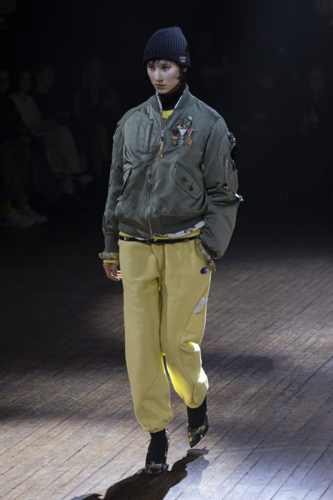 Côté sportswear, la présence de UNDERCOVER x CHAMPION confirmait une volonté de brouiller les frontières entre luxe et streetwear, offrant une alternative confortable et sophistiquée à une garde-robe d’hiver.