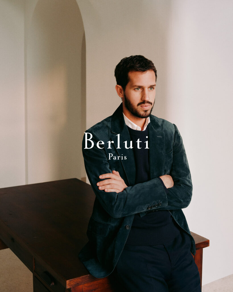 Victor Belmondo incarne avec naturel l’élégance désinvolte chère à Berluti. Fidèle à son ADN, la Maison met en avant des pièces intemporelles et modernes, créant des silhouettes masculines qui allient audace et maîtrise. « Victor Belmondo incarne l’esprit Berluti : ce mélange d’héritage et de modernité, d’élégance et d’audace », déclare Jean-Marc Mansvelt, Directeur Général de la Maison Berluti.