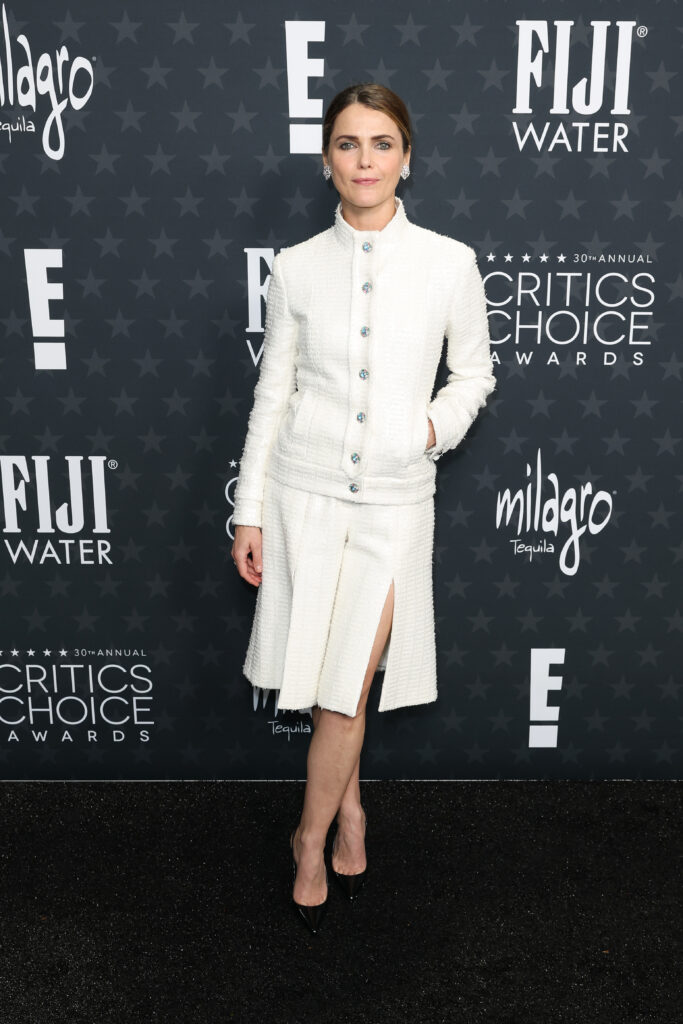 Réputée pour son charisme à l’écran et son élégance discrète, Keri Russell a choisi une tenue à la fois sophistiquée et contemporaine pour cette cérémonie. Nommée dans la catégorie Meilleure actrice dans une série dramatique pour The Diplomat, la comédienne américaine a fait honneur à la quintessence du style CHANEL avec un ensemble en tweed blanc pailleté, composé d’une veste ajustée aux boutons bijoux et d’une jupe assortie. Ce look 20, issu de la Collection Prêt-à-Porter Printemps-Été 2024/25, réinterprète un code emblématique de la maison sous une lumière résolument moderne, mêlant tradition et éclat.