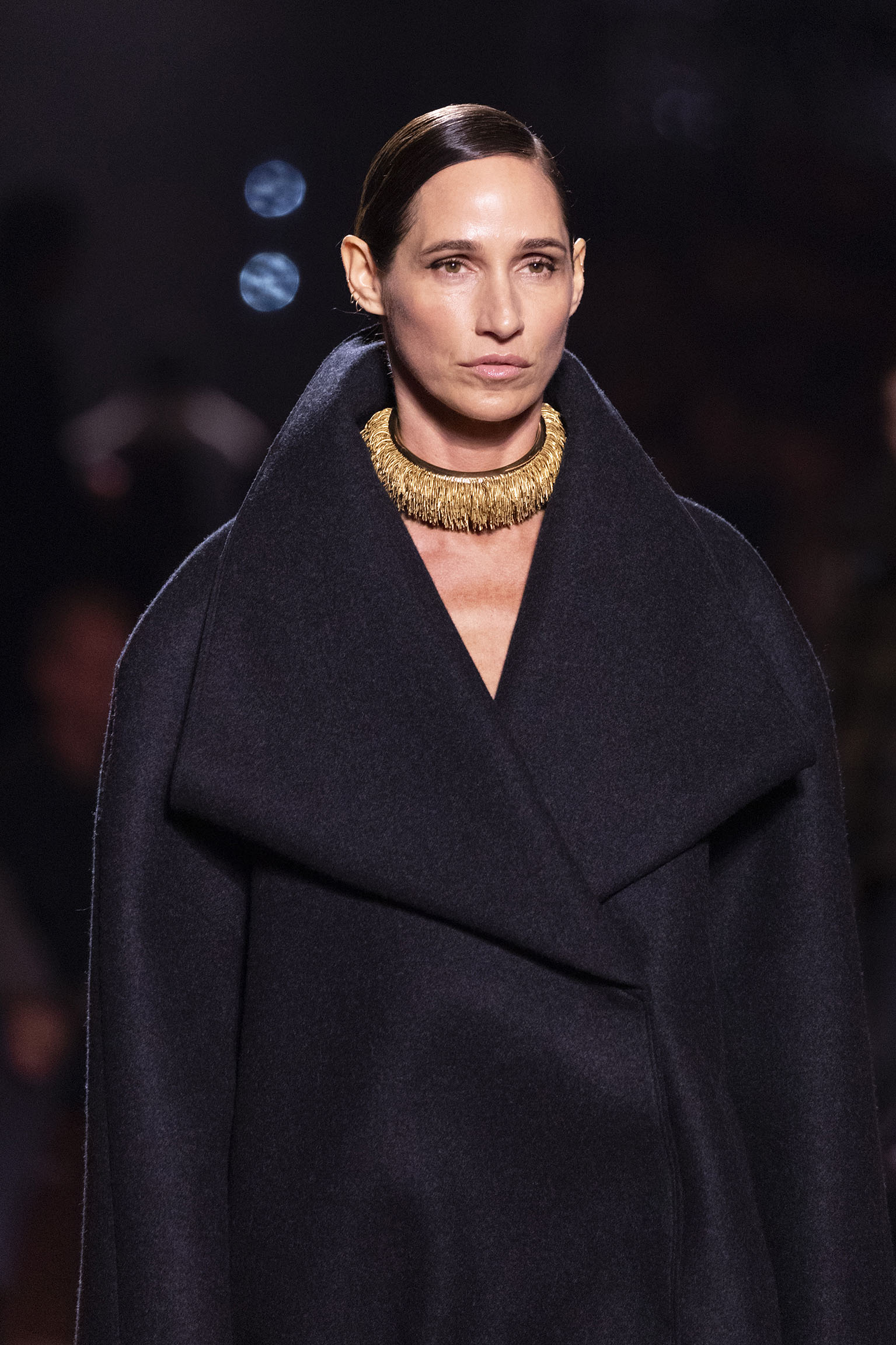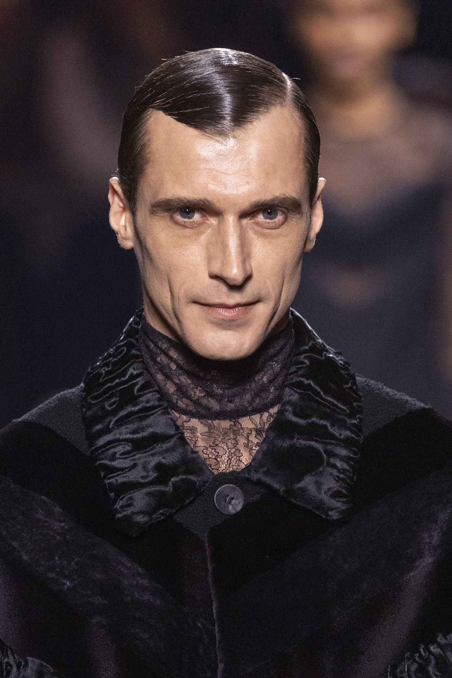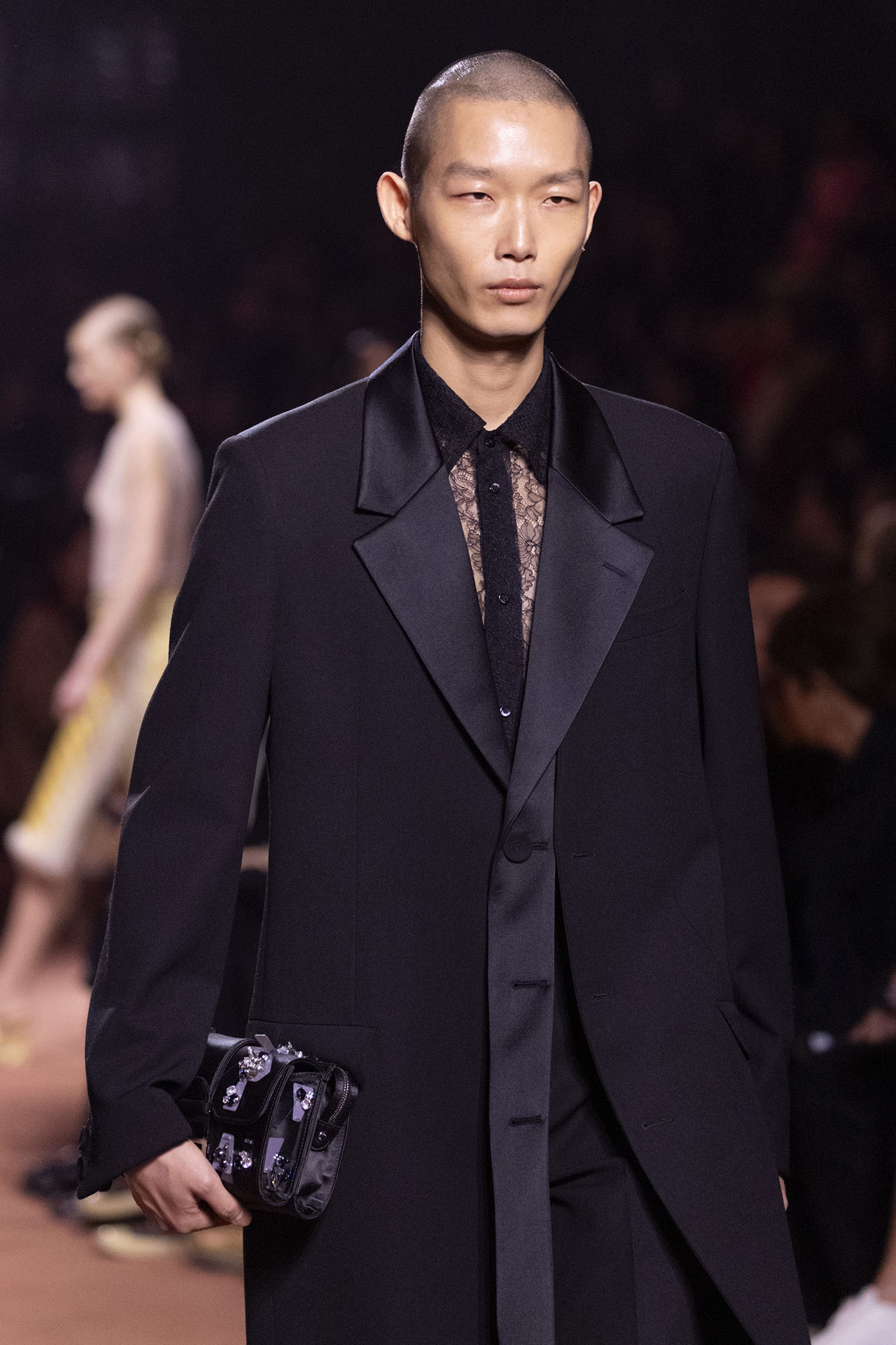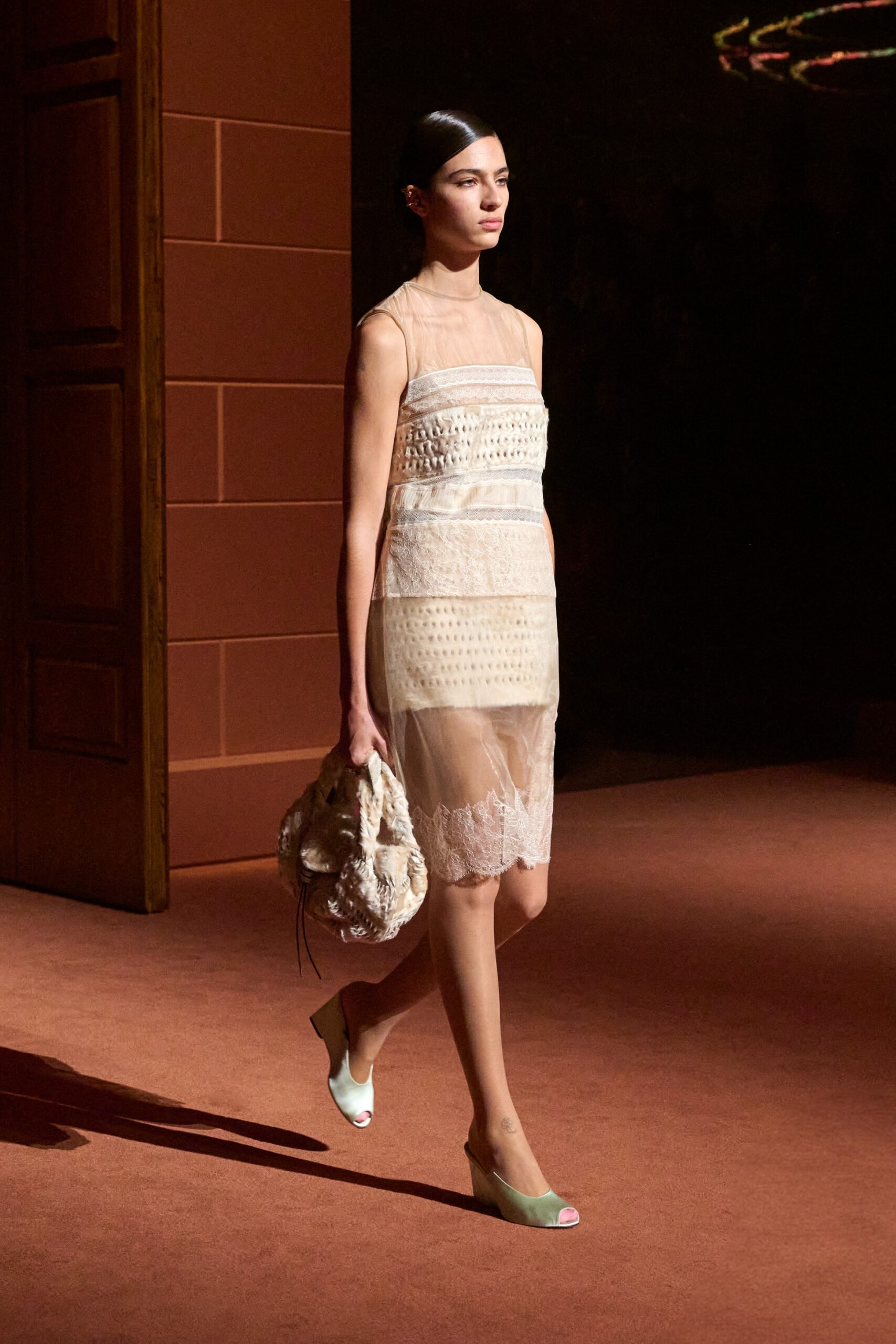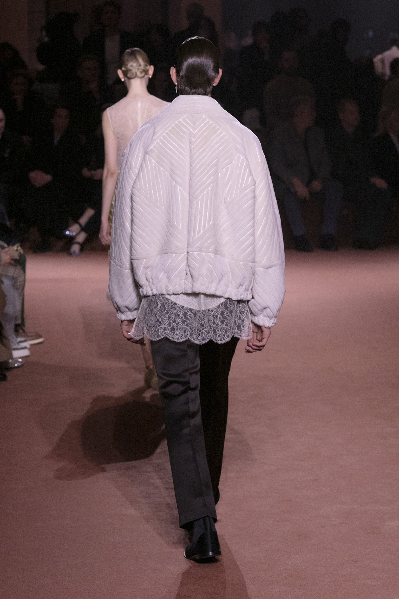 La bande-son du défilé, orchestrée par Michel Gaubert, vient parfaire cette immersion multisensorielle. Les notes de Barry White s’entrelacent aux voix d’Ornella Vanoni, Mina, Patty Pravo et Franco Battiato, évoquant une époque où la musique italienne était synonyme d’émotion et de révolte, et où chaque chanson résonnait comme un hymne à la liberté et à l’élégance. Ce choix musical, à la fois éclectique et profondément enraciné dans la culture italienne, sert de fil conducteur à une mise en scène qui célèbre la dualité entre nostalgie et modernité, entre souvenir et innovation.
