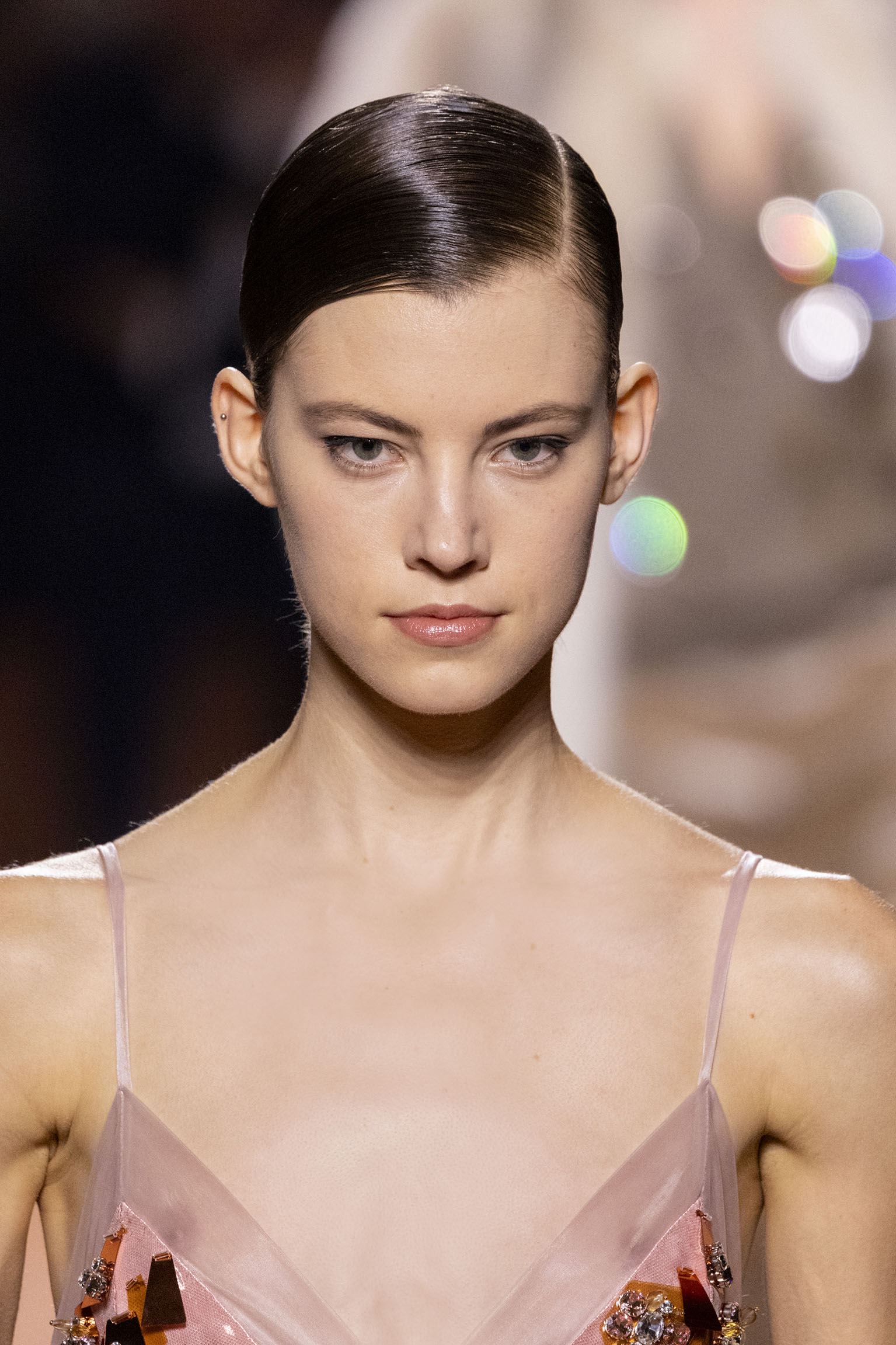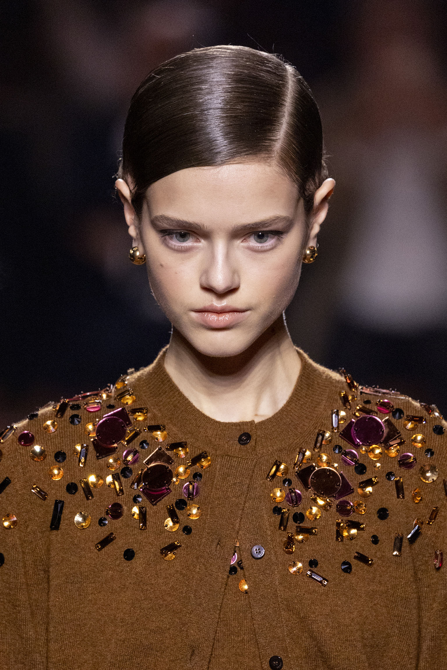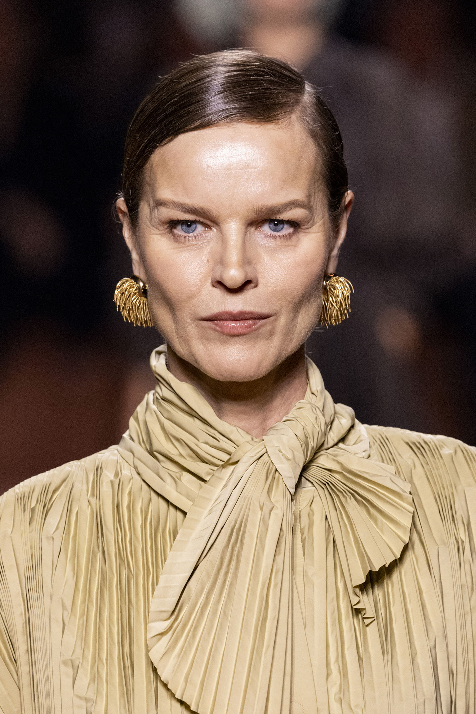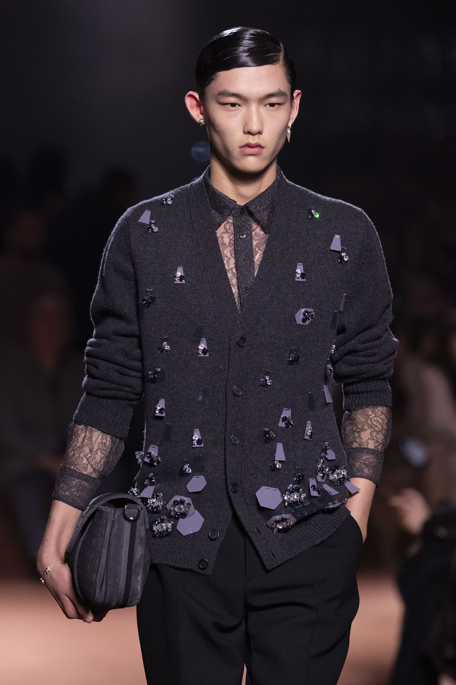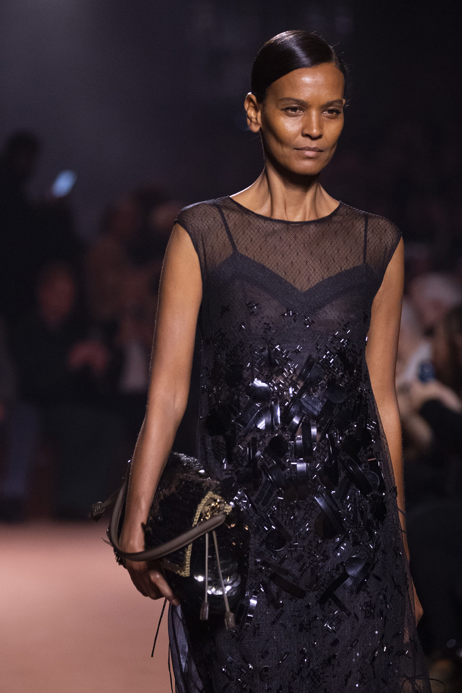La bande-son du défilé, orchestrée par Michel Gaubert, vient parfaire cette immersion multisensorielle. Les notes de Barry White s’entrelacent aux voix d’Ornella Vanoni, Mina, Patty Pravo et Franco Battiato, évoquant une époque où la musique italienne était synonyme d’émotion et de révolte, et où chaque chanson résonnait comme un hymne à la liberté et à l’élégance. Ce choix musical, à la fois éclectique et profondément enraciné dans la culture italienne, sert de fil conducteur à une mise en scène qui célèbre la dualité entre nostalgie et modernité, entre souvenir et innovation.