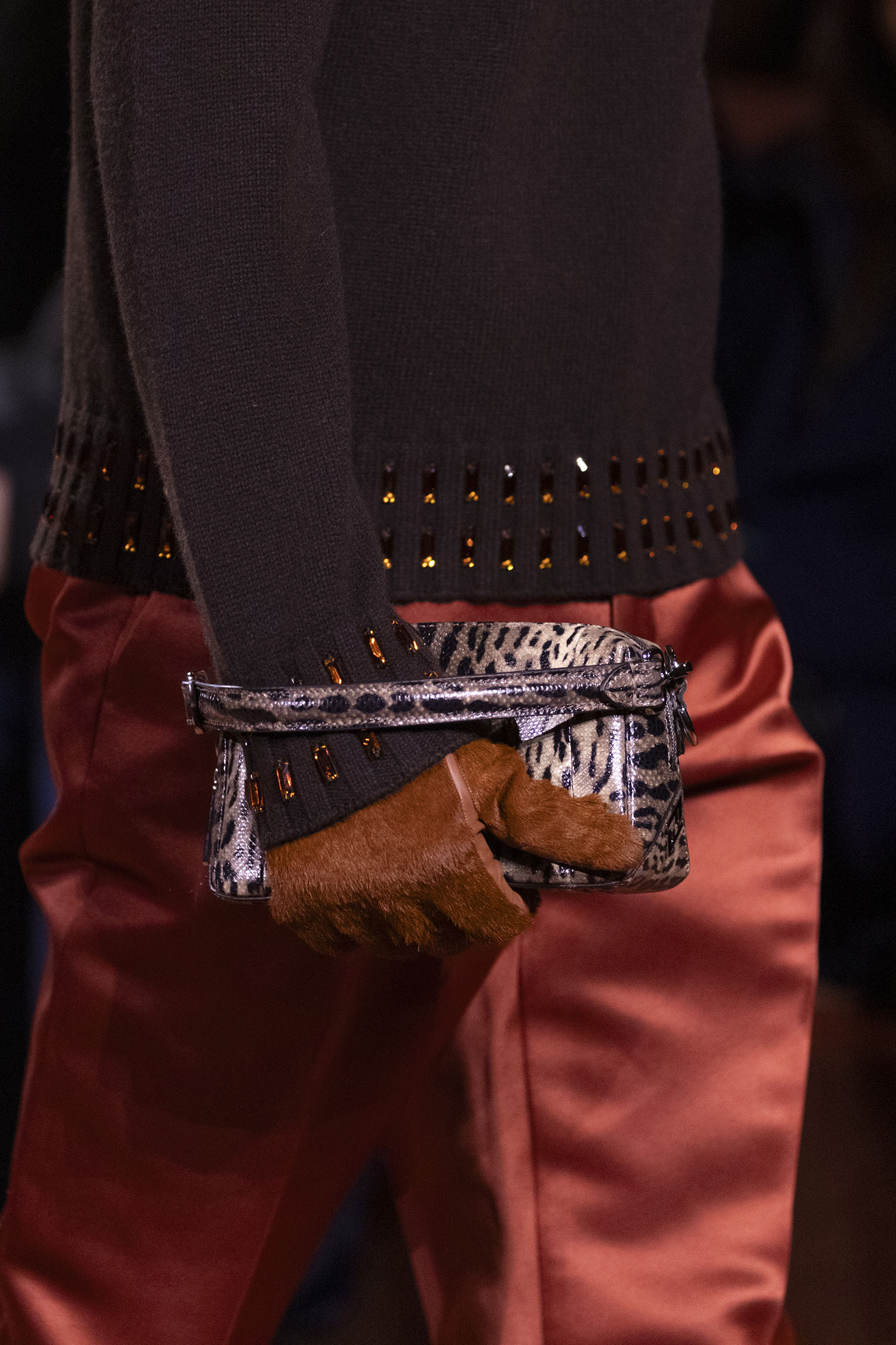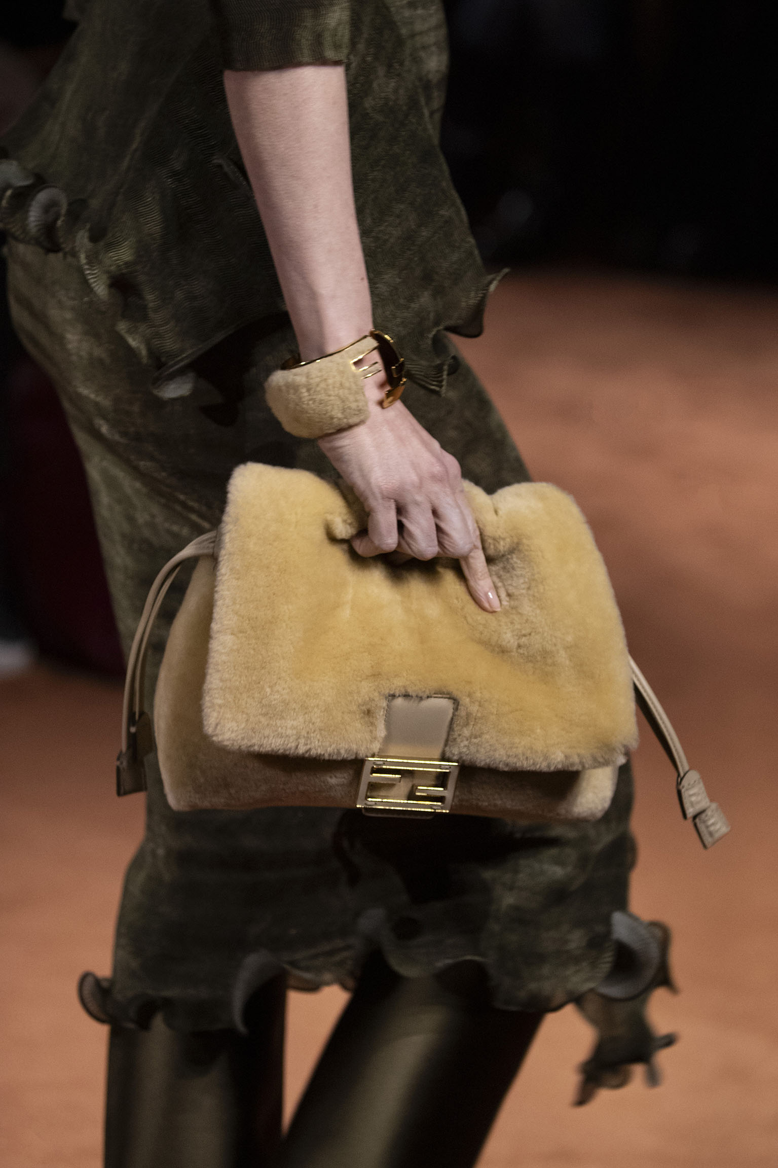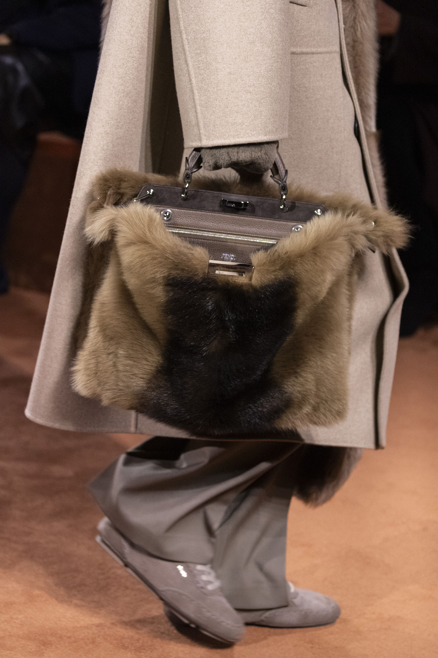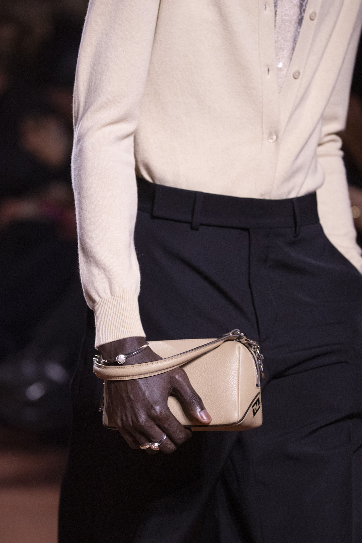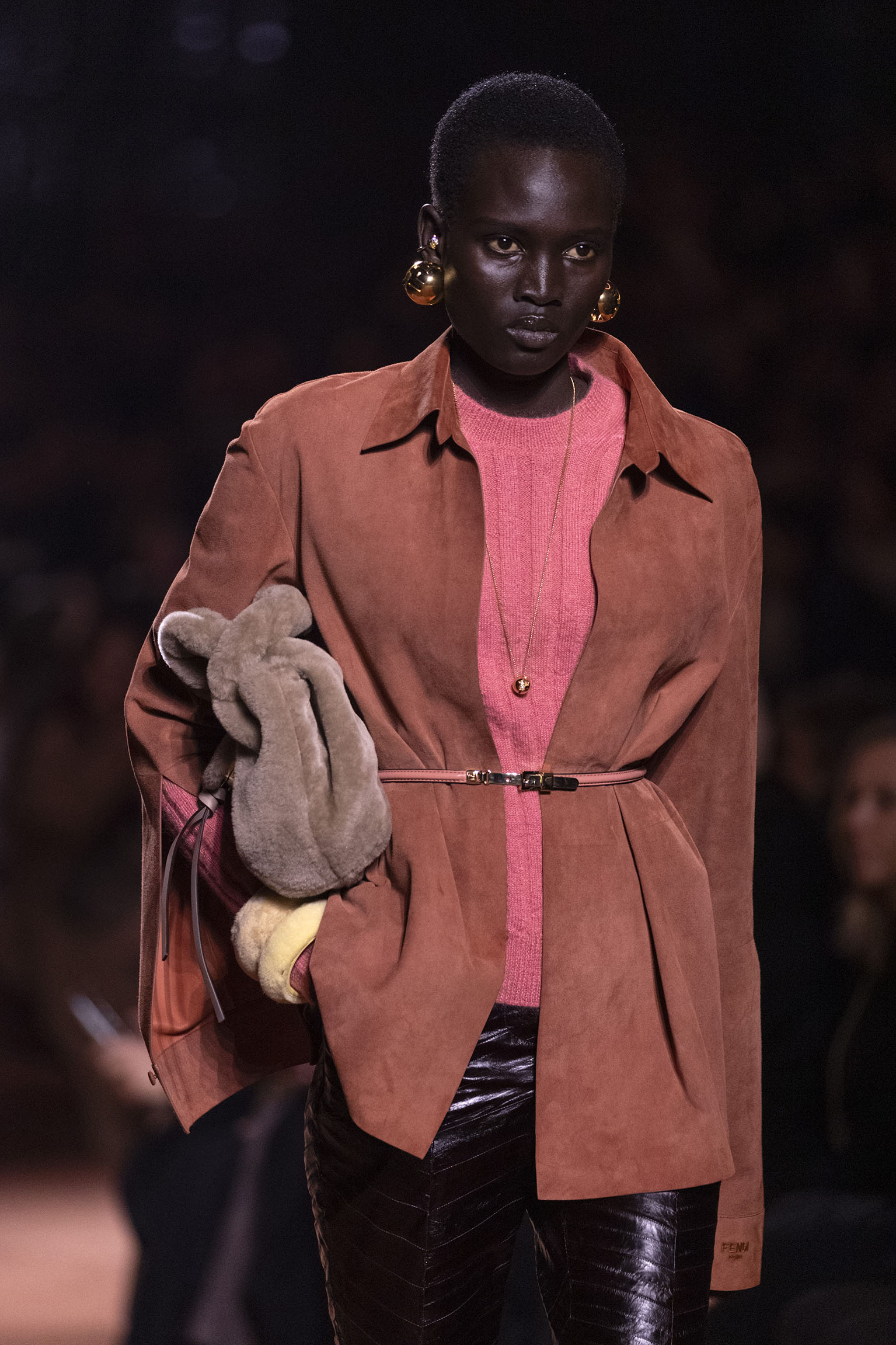 La richesse de la collection Fall/Winter 2025-26 se révèle également à travers l’horizon des accessoires, véritables prolongements du savoir-faire Fendi. Chaque pièce – qu’il s’agisse du Fendi Giano, du Spy Bag ou des modèles iconiques tels que le Peekaboo Soft et le Mamma Baguette – est conçue pour être à la fois fonctionnelle et esthétiquement irrésistible. La diversité des matériaux, allant du cuir travaillé en Selleria à la shearling aux touches métalliques, offre un éventail de possibilités stylistiques qui s’adaptent aux besoins d’un quotidien raffiné et d’occasions exceptionnelles. Ce mariage réussi entre tradition et innovation confère à la Maison une identité forte et singulière, faisant de chaque accessoire un symbole du luxe intemporel.