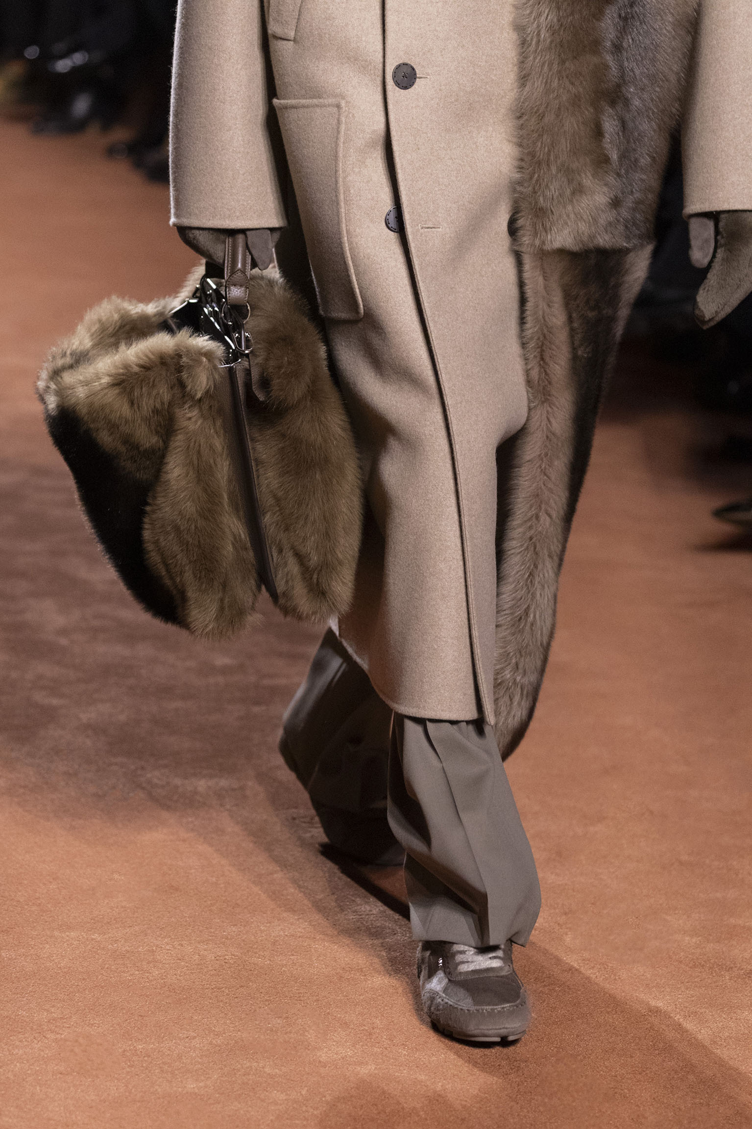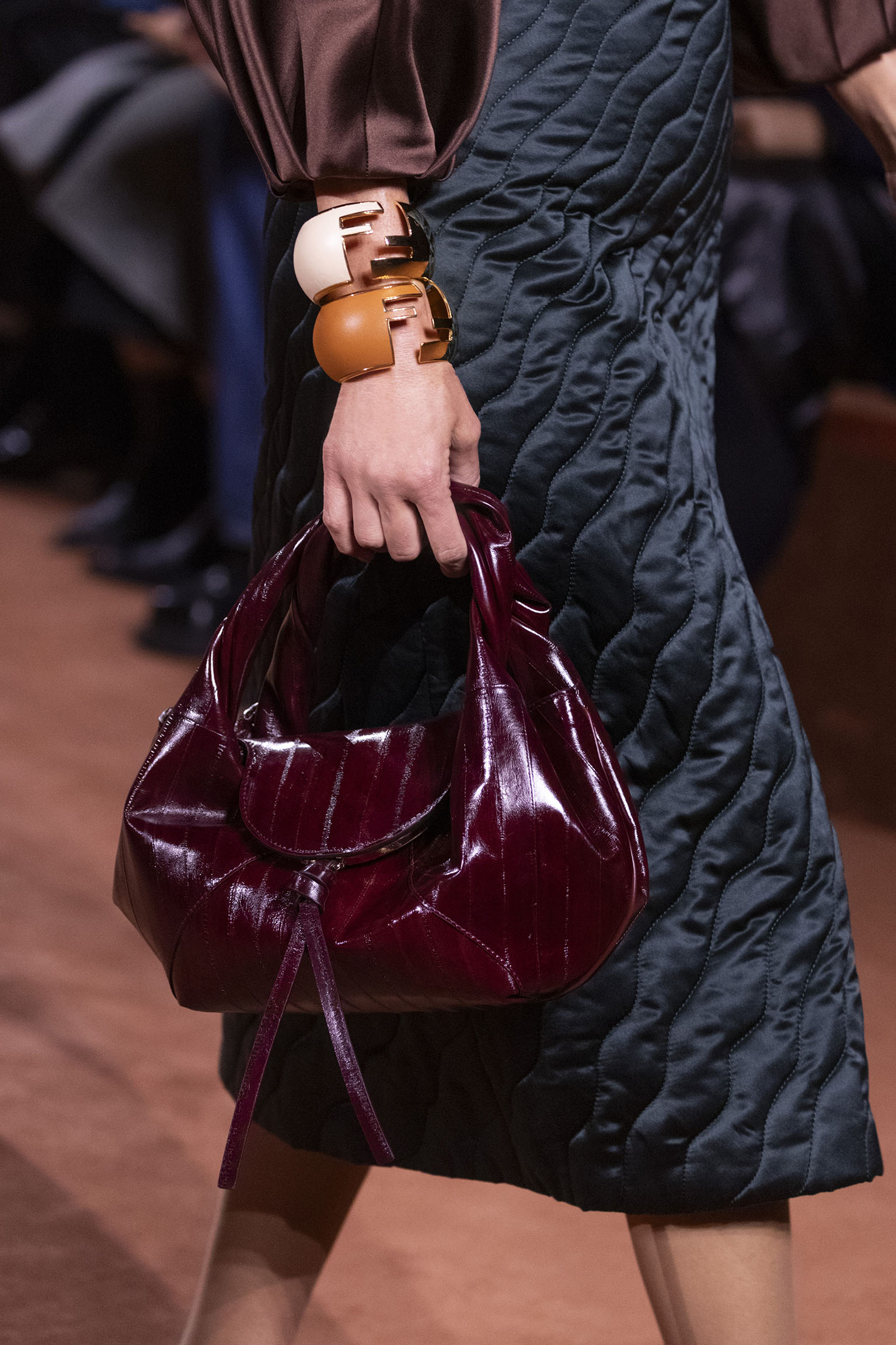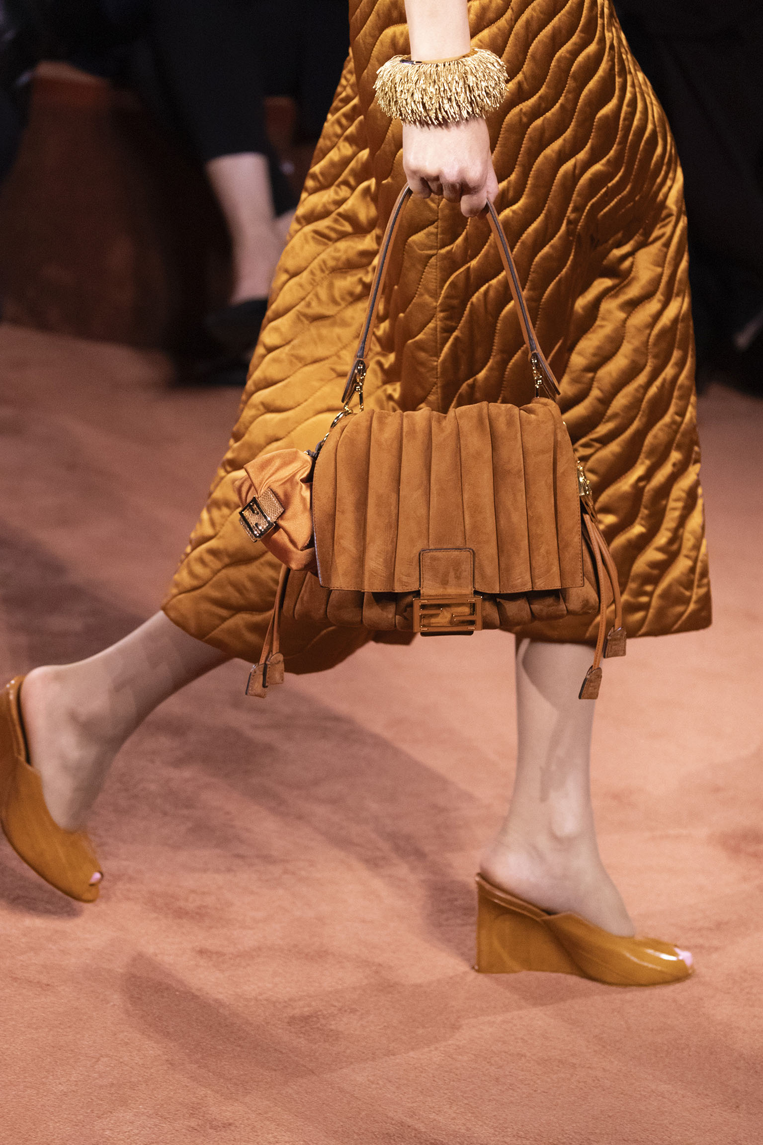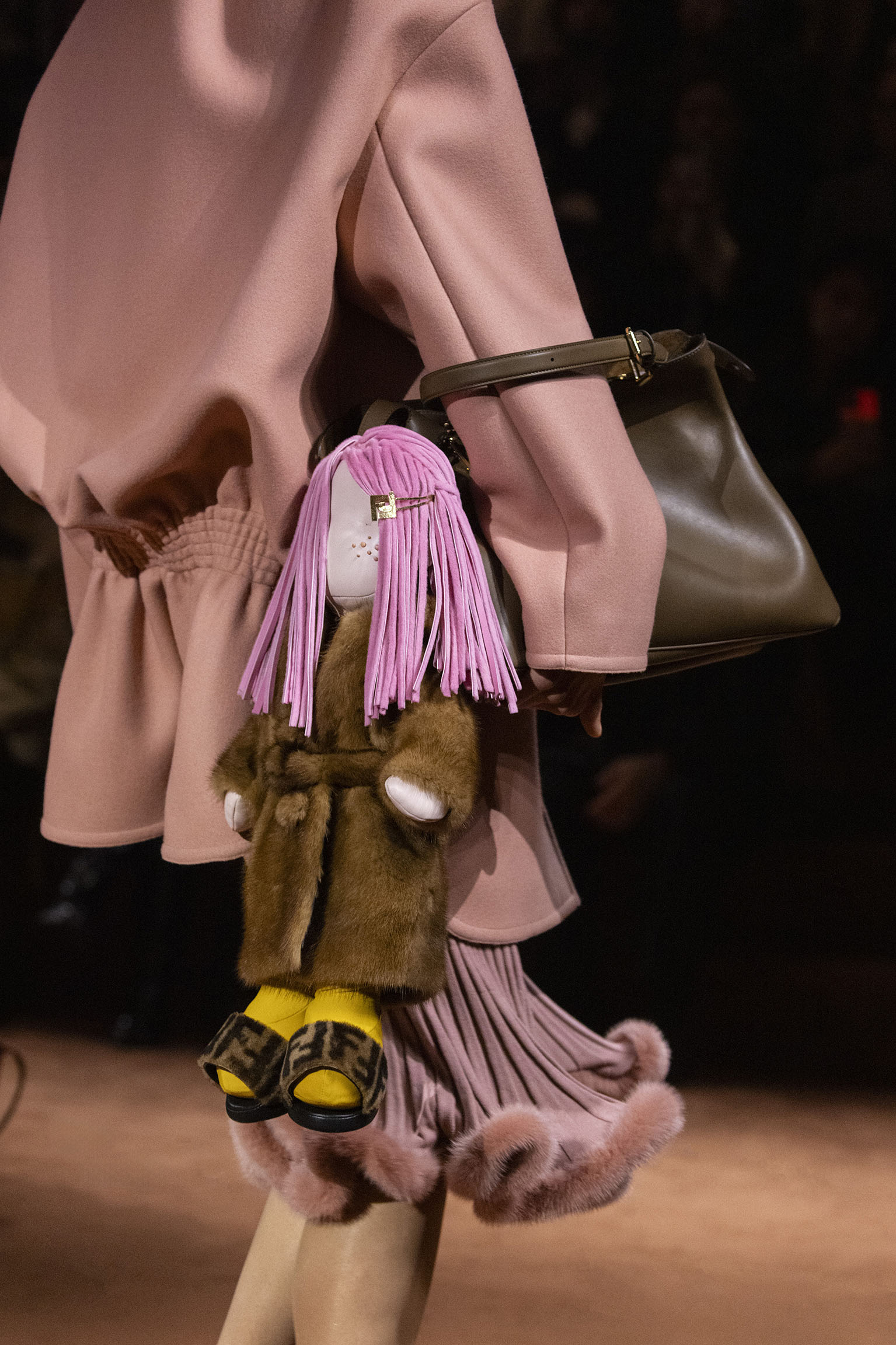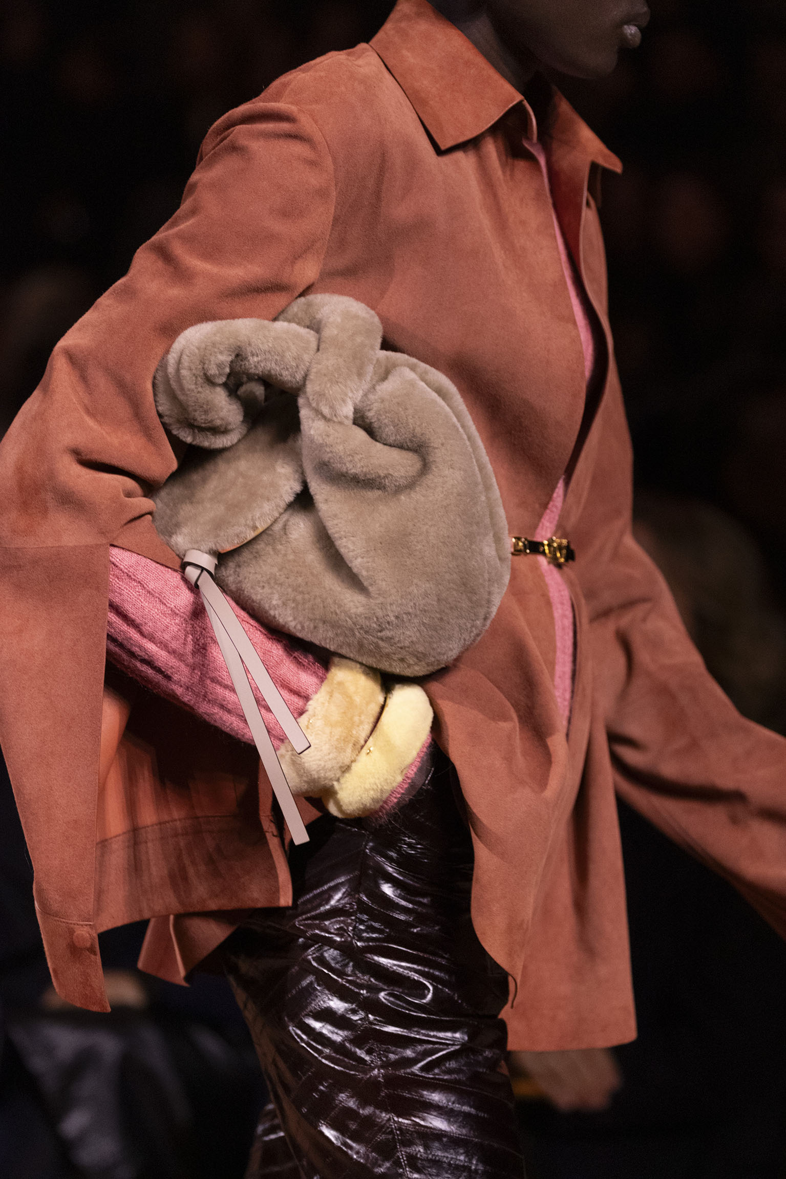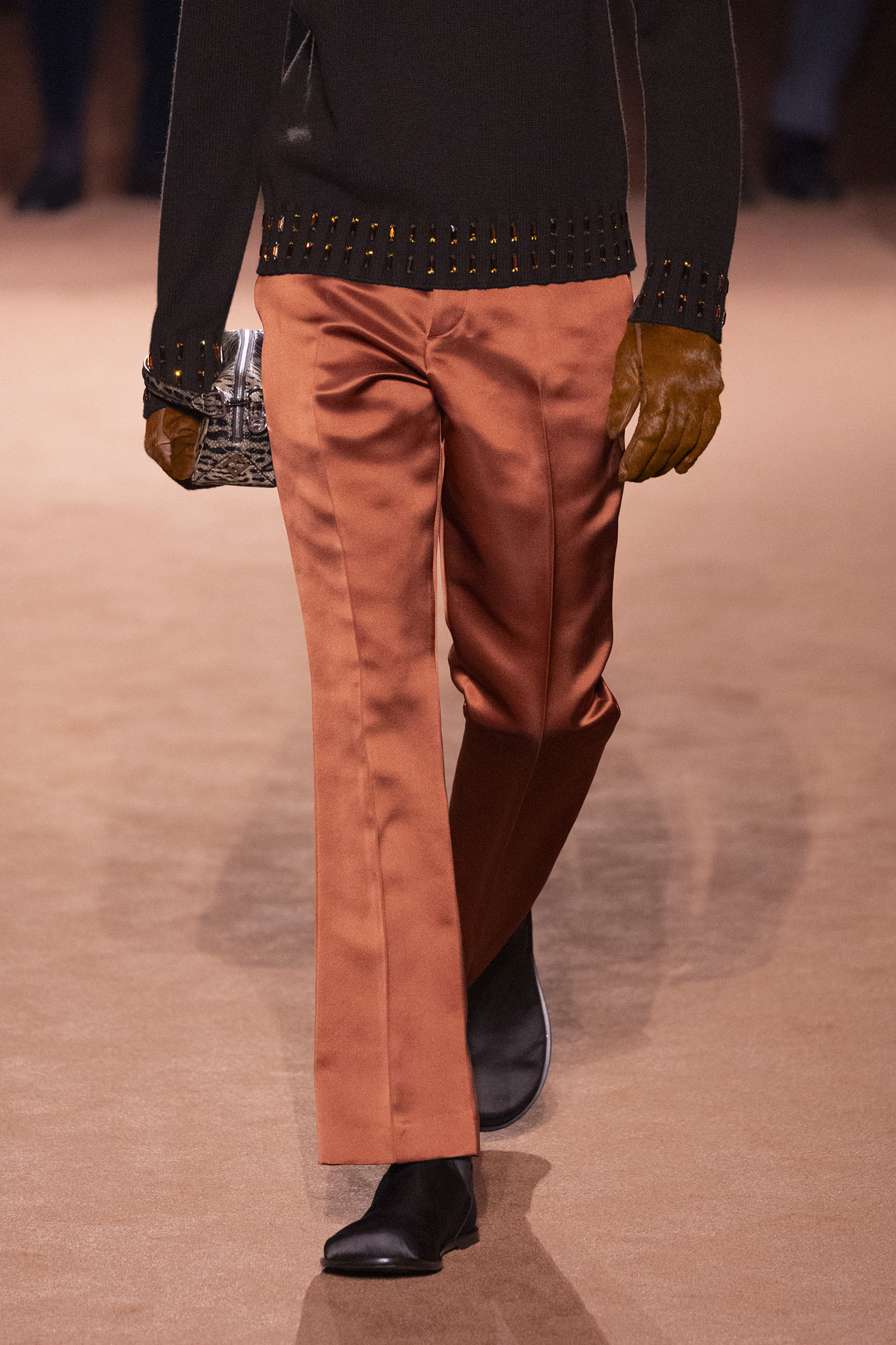 La richesse de la collection Fall/Winter 2025-26 se révèle également à travers l’horizon des accessoires, véritables prolongements du savoir-faire Fendi. Chaque pièce – qu’il s’agisse du Fendi Giano, du Spy Bag ou des modèles iconiques tels que le Peekaboo Soft et le Mamma Baguette – est conçue pour être à la fois fonctionnelle et esthétiquement irrésistible. La diversité des matériaux, allant du cuir travaillé en Selleria à la shearling aux touches métalliques, offre un éventail de possibilités stylistiques qui s’adaptent aux besoins d’un quotidien raffiné et d’occasions exceptionnelles. Ce mariage réussi entre tradition et innovation confère à la Maison une identité forte et singulière, faisant de chaque accessoire un symbole du luxe intemporel.