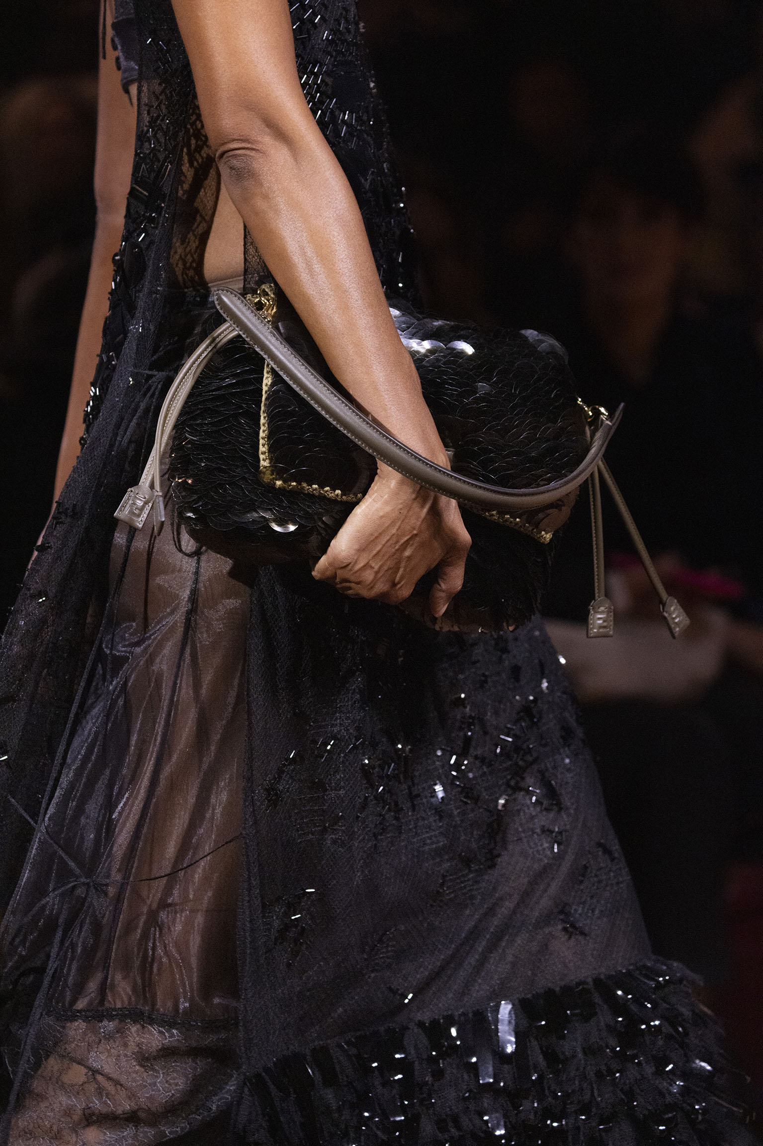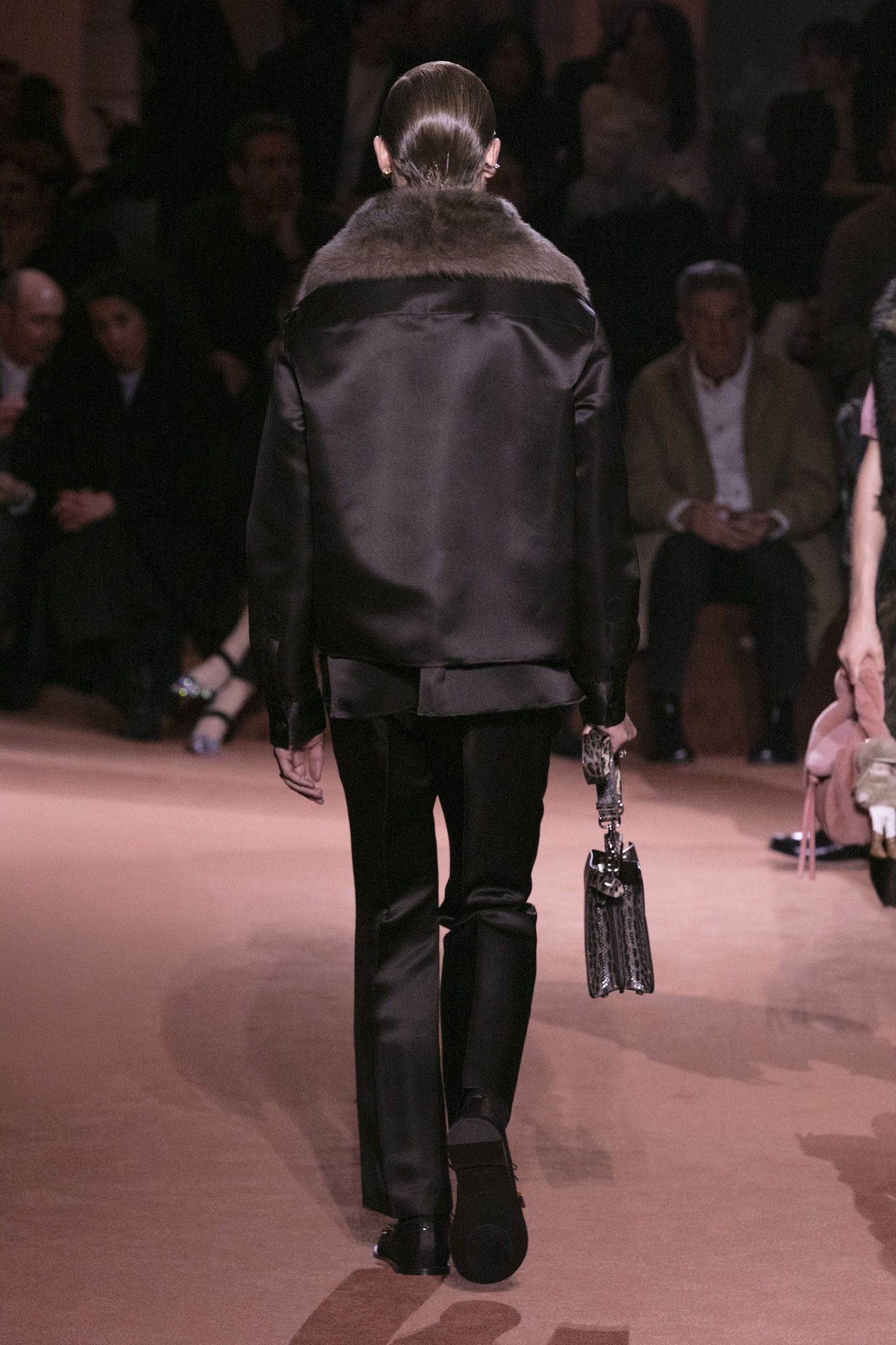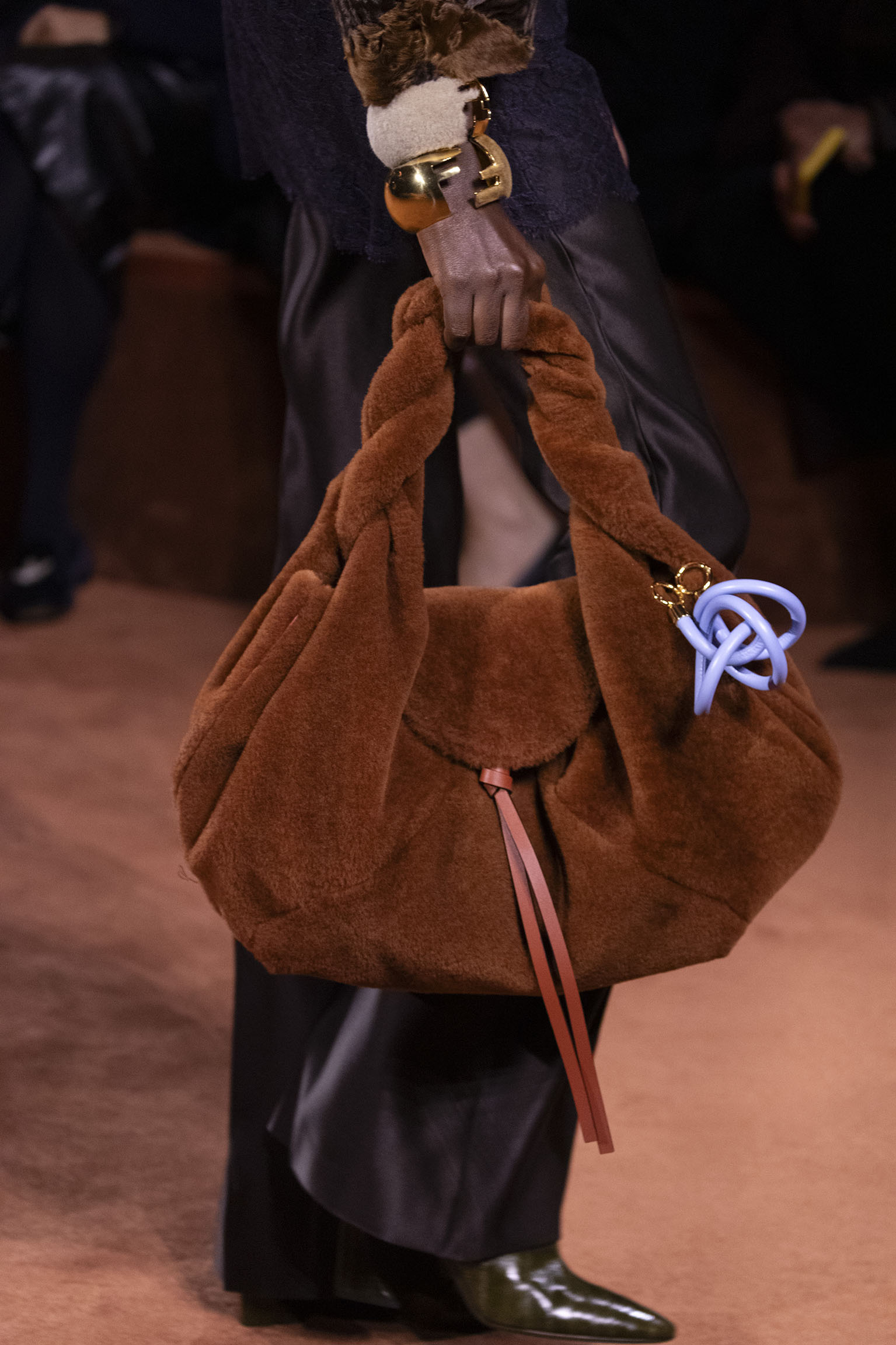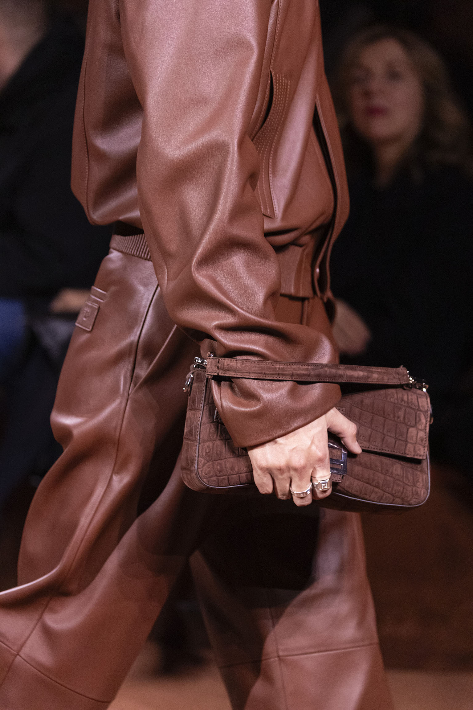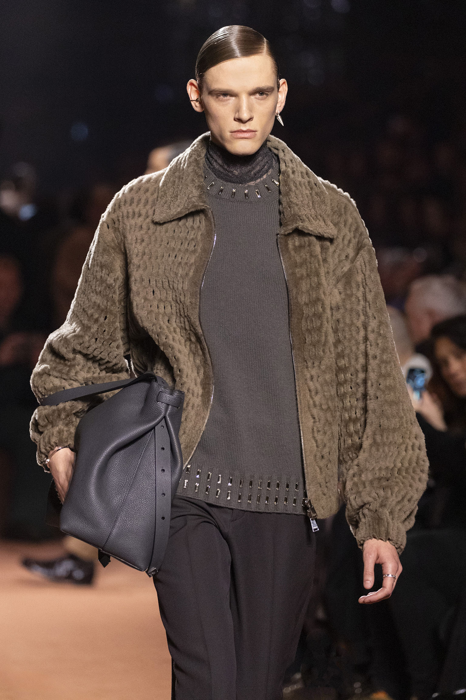 La richesse de la collection Fall/Winter 2025-26 se révèle également à travers l’horizon des accessoires, véritables prolongements du savoir-faire Fendi. Chaque pièce – qu’il s’agisse du Fendi Giano, du Spy Bag ou des modèles iconiques tels que le Peekaboo Soft et le Mamma Baguette – est conçue pour être à la fois fonctionnelle et esthétiquement irrésistible. La diversité des matériaux, allant du cuir travaillé en Selleria à la shearling aux touches métalliques, offre un éventail de possibilités stylistiques qui s’adaptent aux besoins d’un quotidien raffiné et d’occasions exceptionnelles. Ce mariage réussi entre tradition et innovation confère à la Maison une identité forte et singulière, faisant de chaque accessoire un symbole du luxe intemporel.