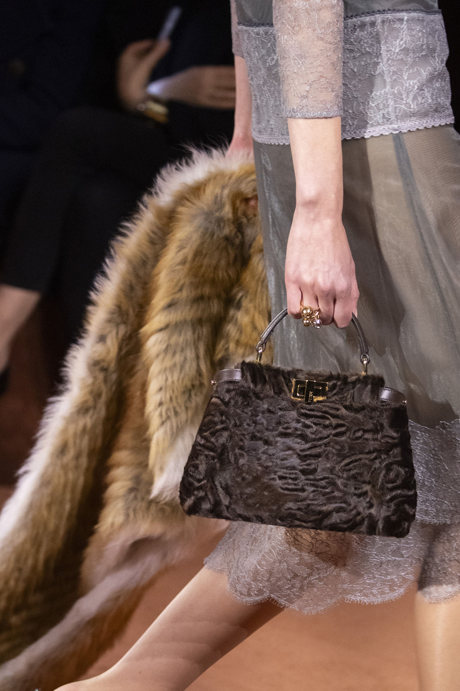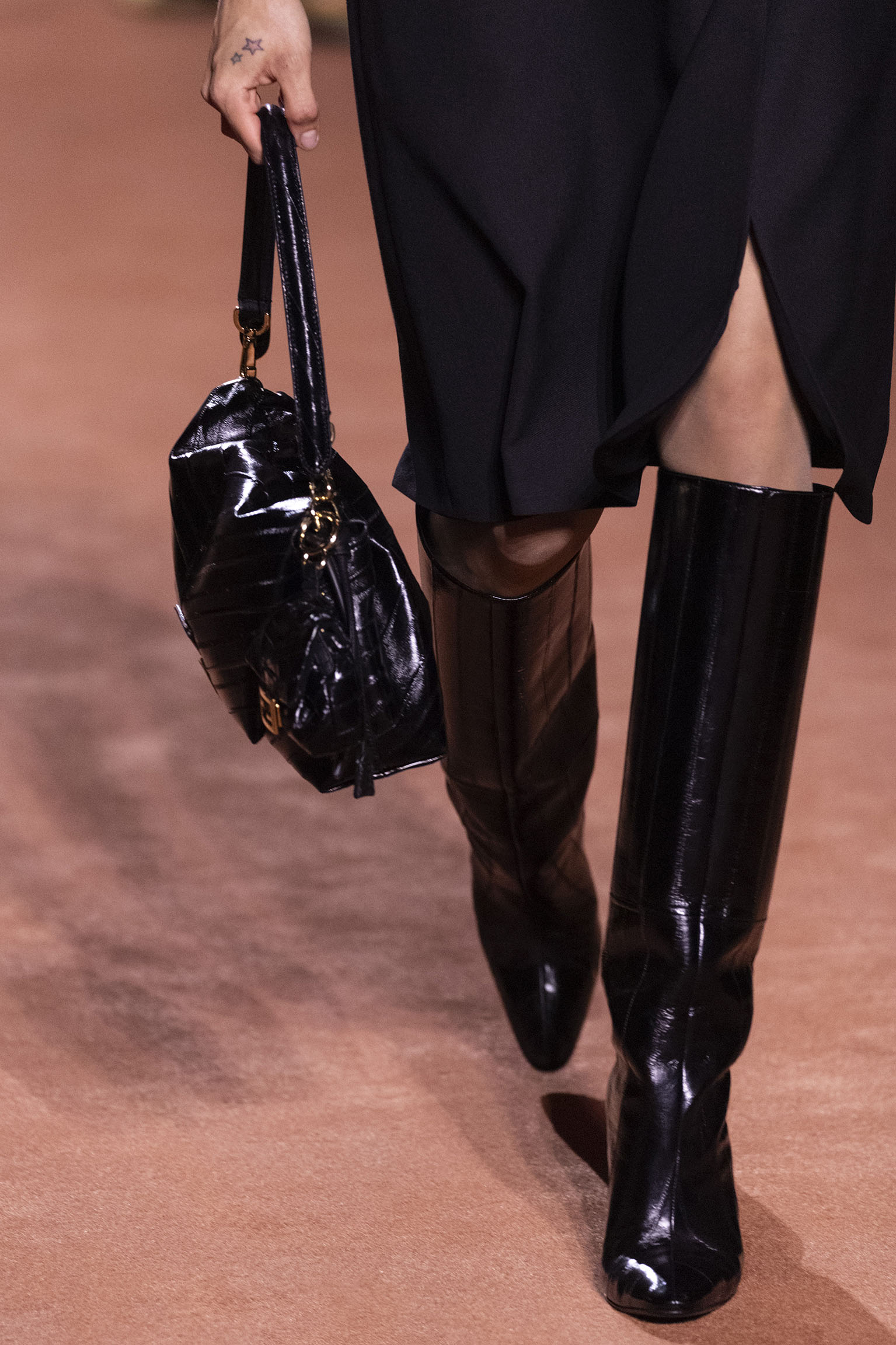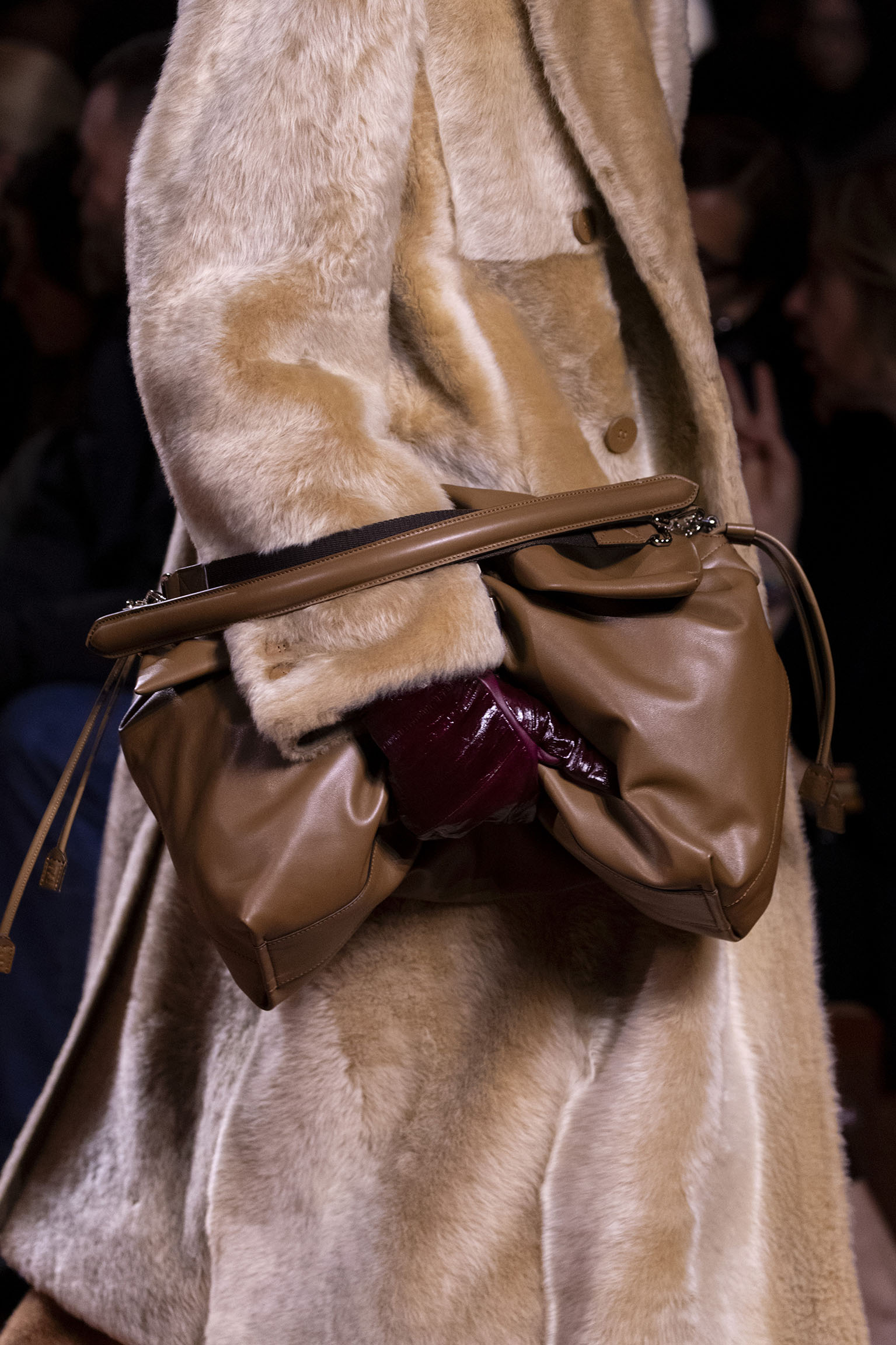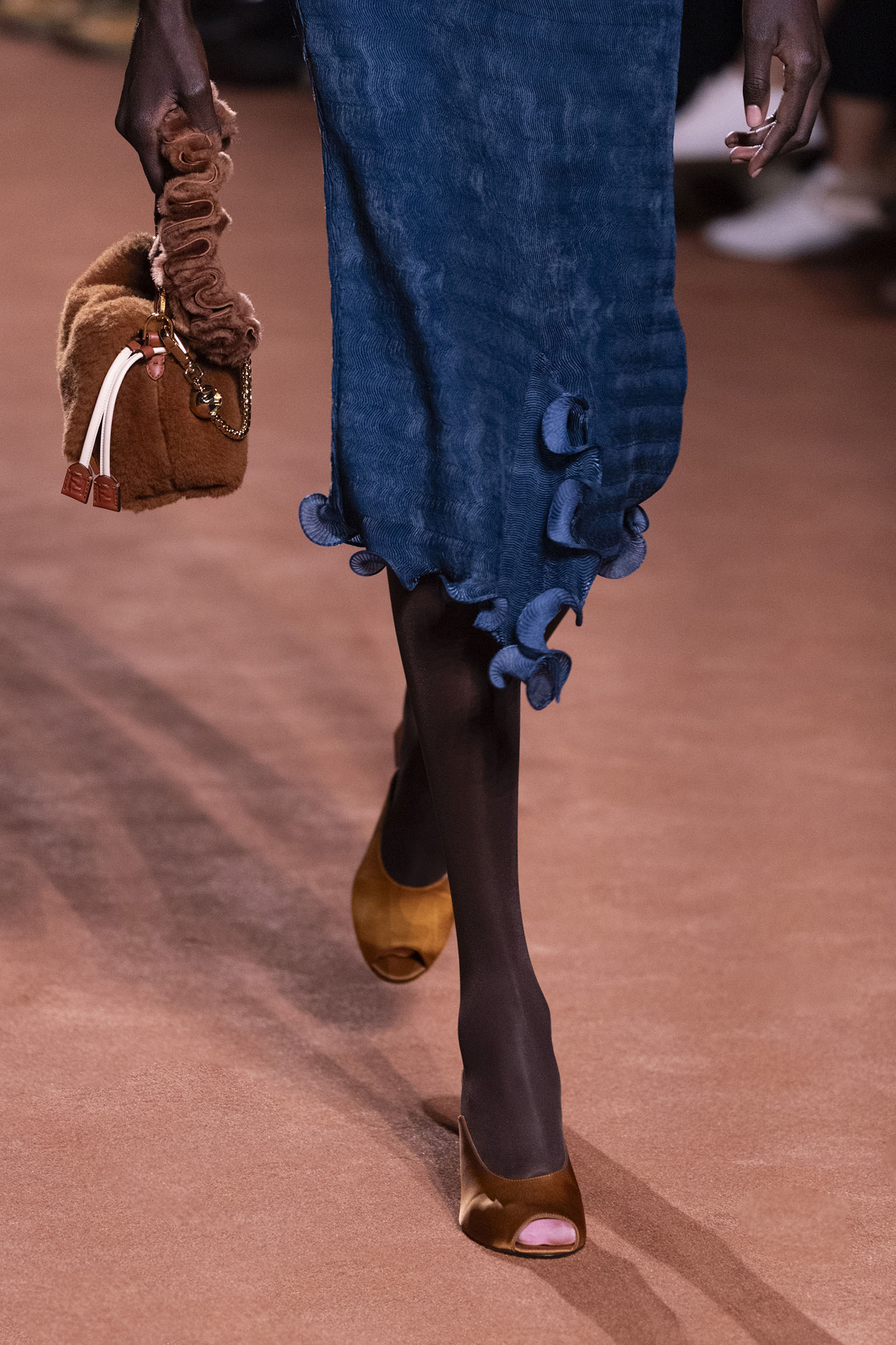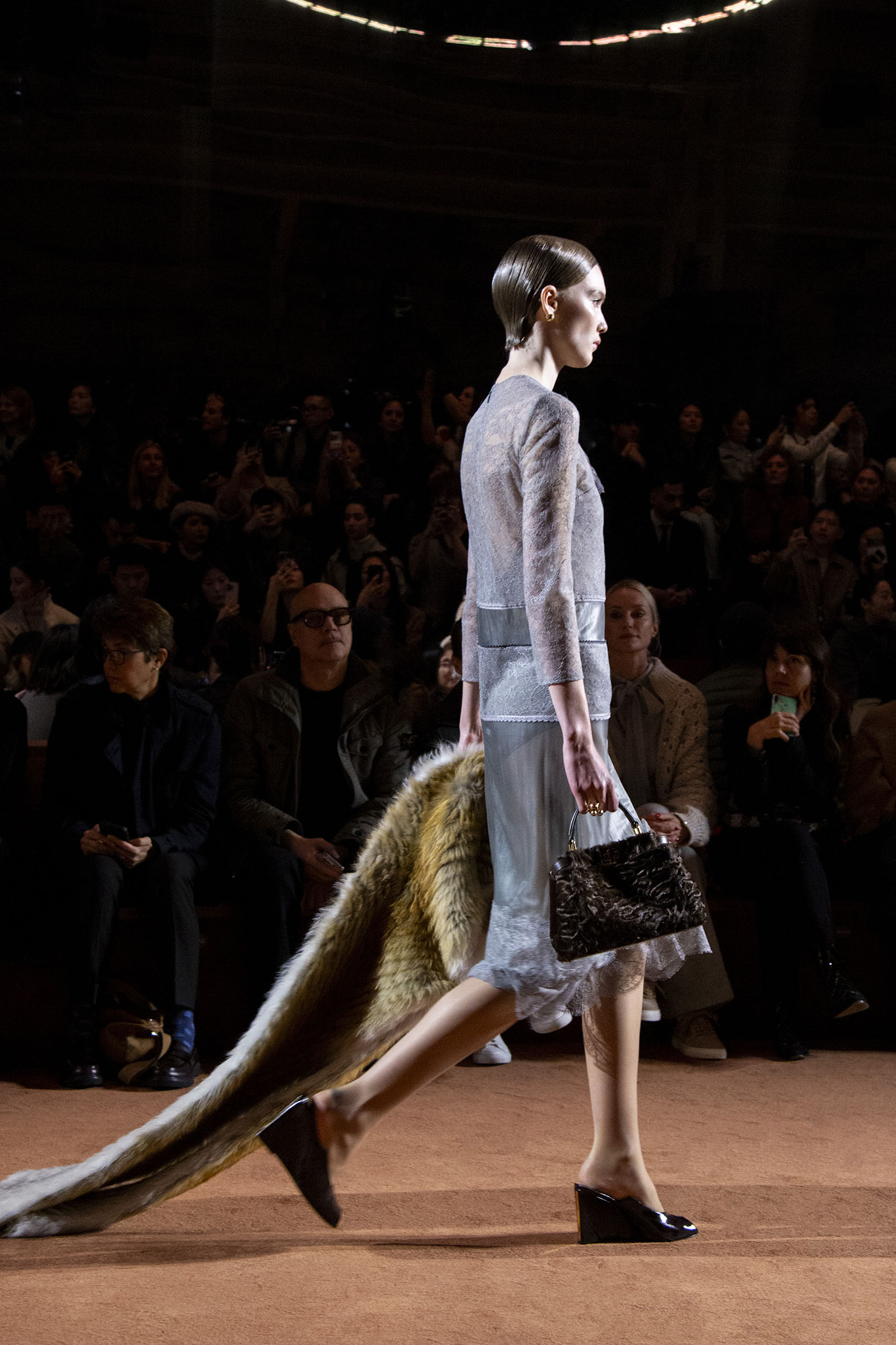 La richesse de la collection Fall/Winter 2025-26 se révèle également à travers l’horizon des accessoires, véritables prolongements du savoir-faire Fendi. Chaque pièce – qu’il s’agisse du Fendi Giano, du Spy Bag ou des modèles iconiques tels que le Peekaboo Soft et le Mamma Baguette – est conçue pour être à la fois fonctionnelle et esthétiquement irrésistible. La diversité des matériaux, allant du cuir travaillé en Selleria à la shearling aux touches métalliques, offre un éventail de possibilités stylistiques qui s’adaptent aux besoins d’un quotidien raffiné et d’occasions exceptionnelles. Ce mariage réussi entre tradition et innovation confère à la Maison une identité forte et singulière, faisant de chaque accessoire un symbole du luxe intemporel.