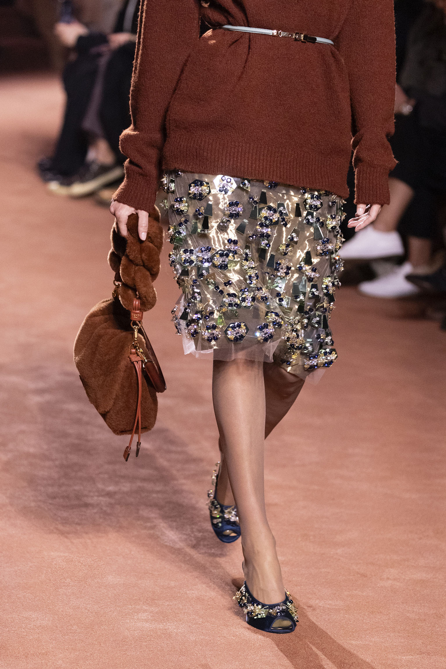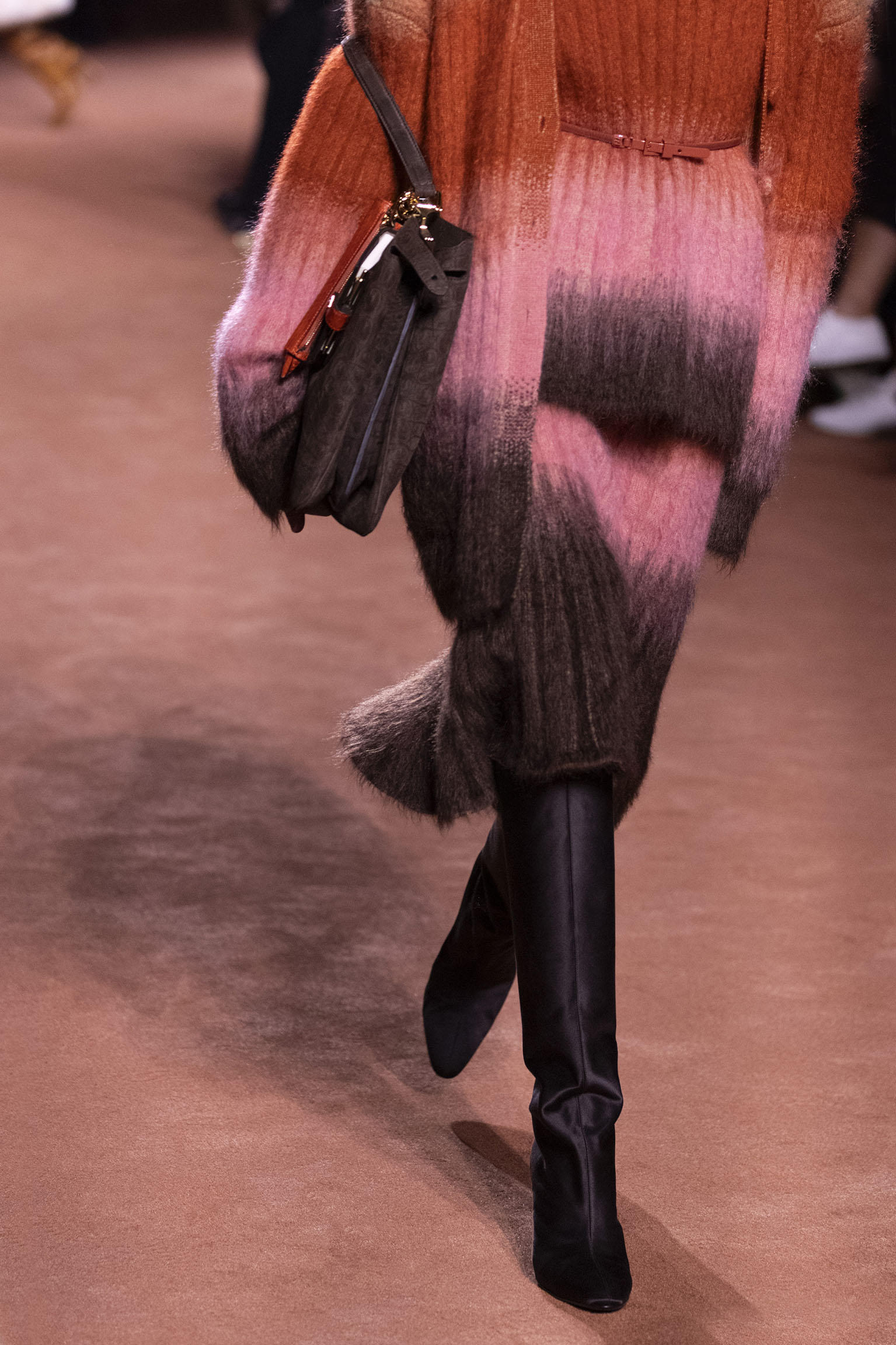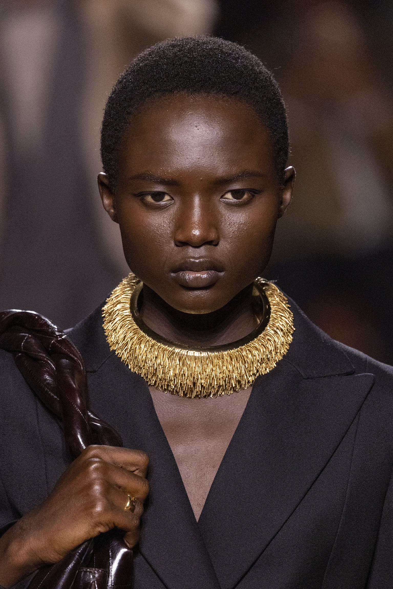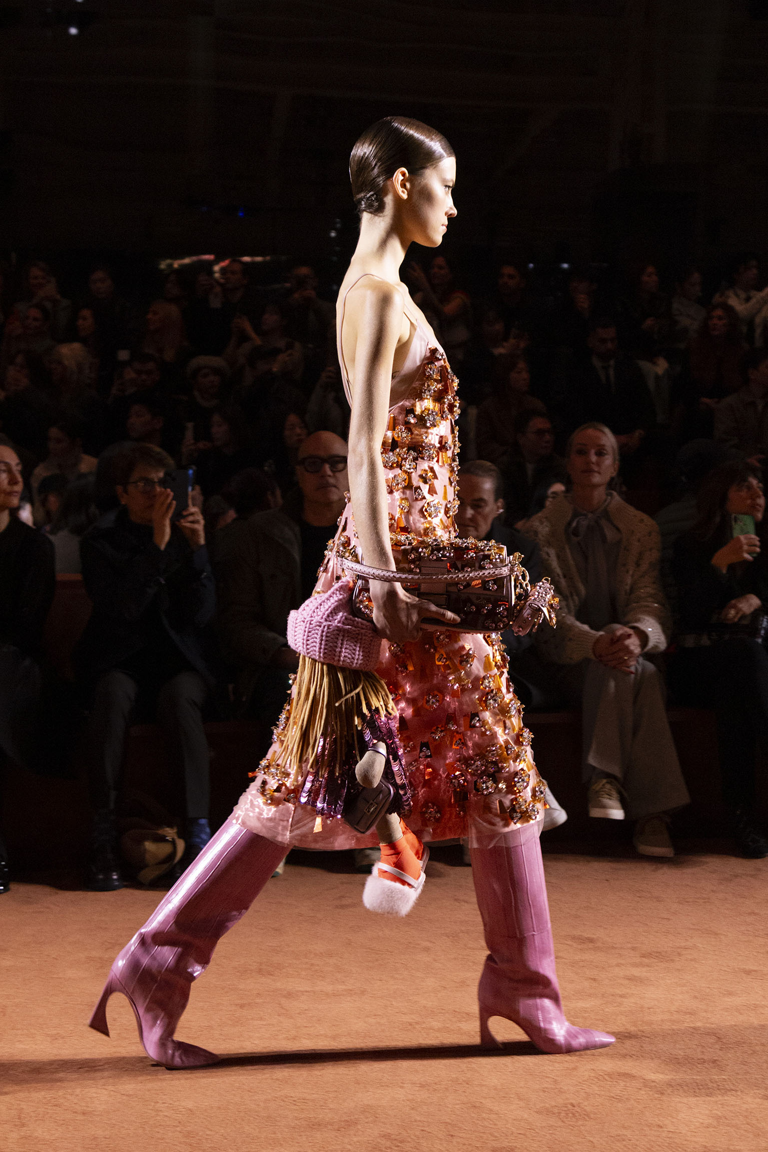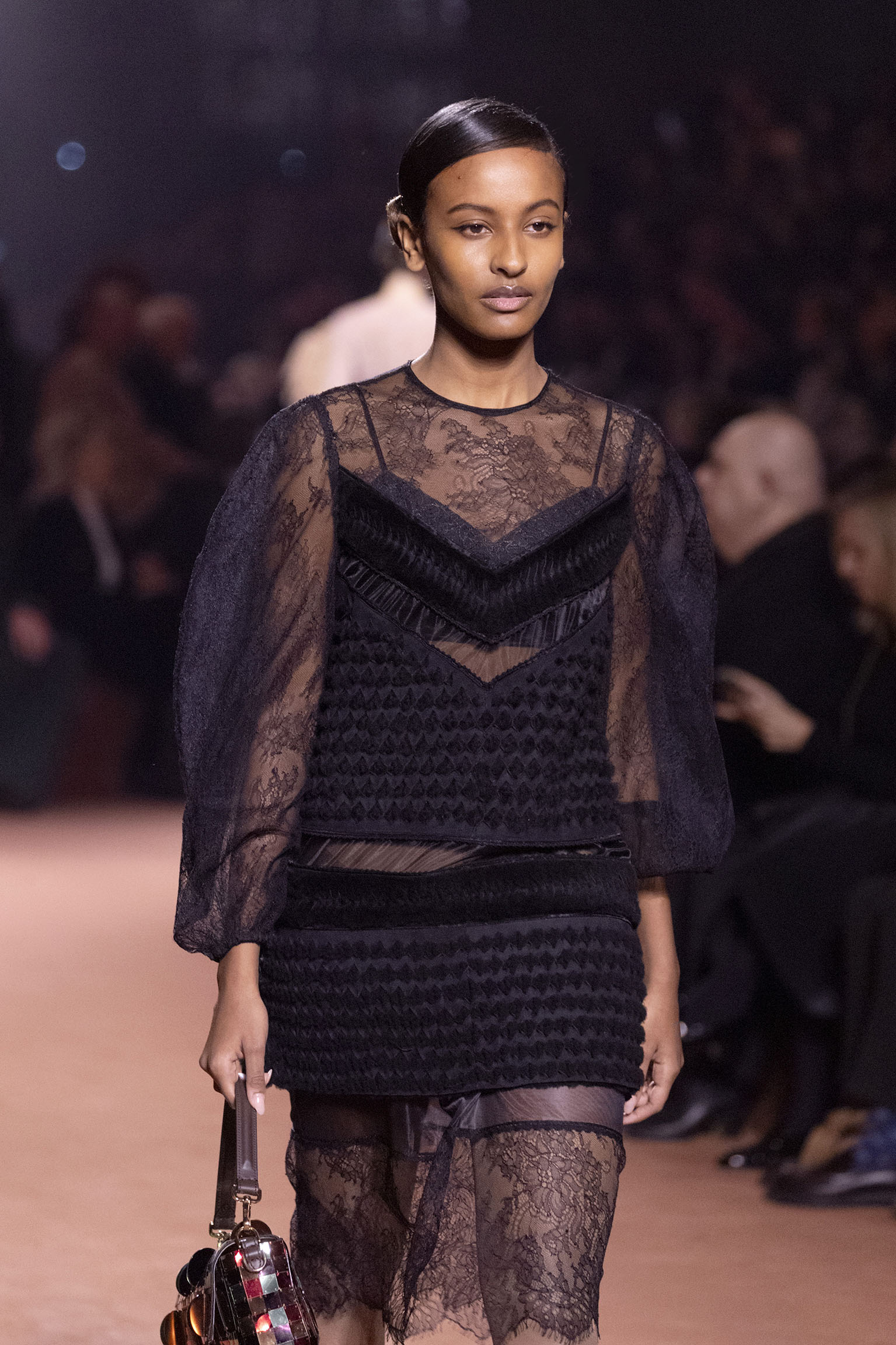 La richesse de la collection Fall/Winter 2025-26 se révèle également à travers l’horizon des accessoires, véritables prolongements du savoir-faire Fendi. Chaque pièce – qu’il s’agisse du Fendi Giano, du Spy Bag ou des modèles iconiques tels que le Peekaboo Soft et le Mamma Baguette – est conçue pour être à la fois fonctionnelle et esthétiquement irrésistible. La diversité des matériaux, allant du cuir travaillé en Selleria à la shearling aux touches métalliques, offre un éventail de possibilités stylistiques qui s’adaptent aux besoins d’un quotidien raffiné et d’occasions exceptionnelles. Ce mariage réussi entre tradition et innovation confère à la Maison une identité forte et singulière, faisant de chaque accessoire un symbole du luxe intemporel.