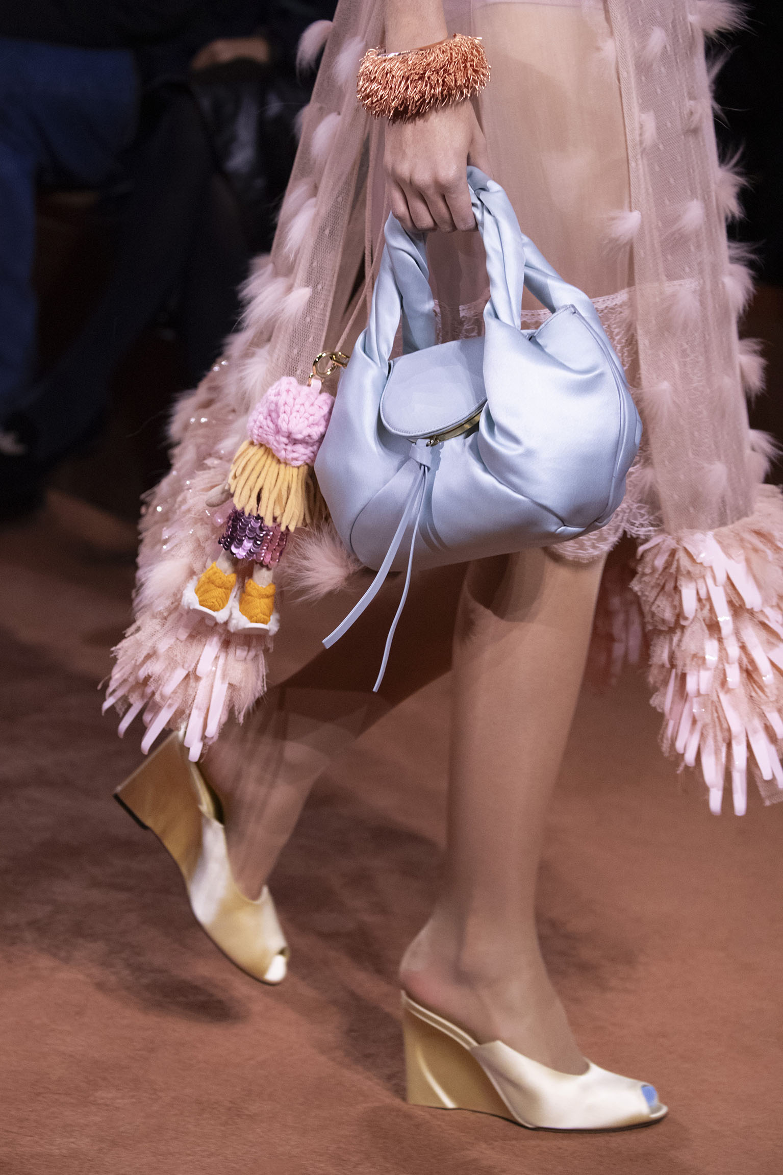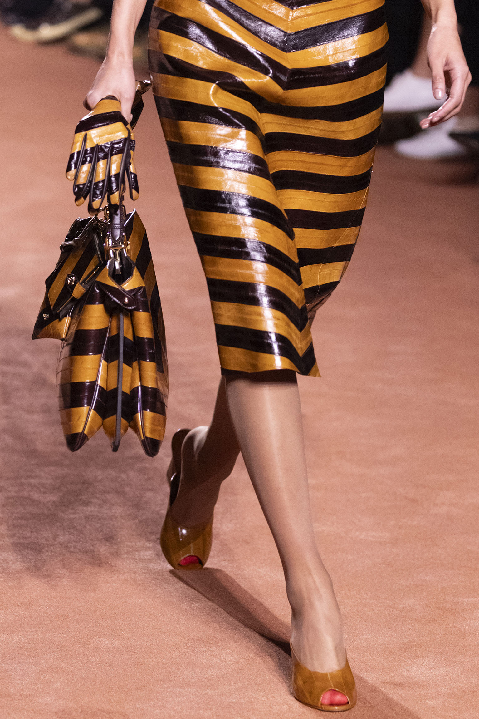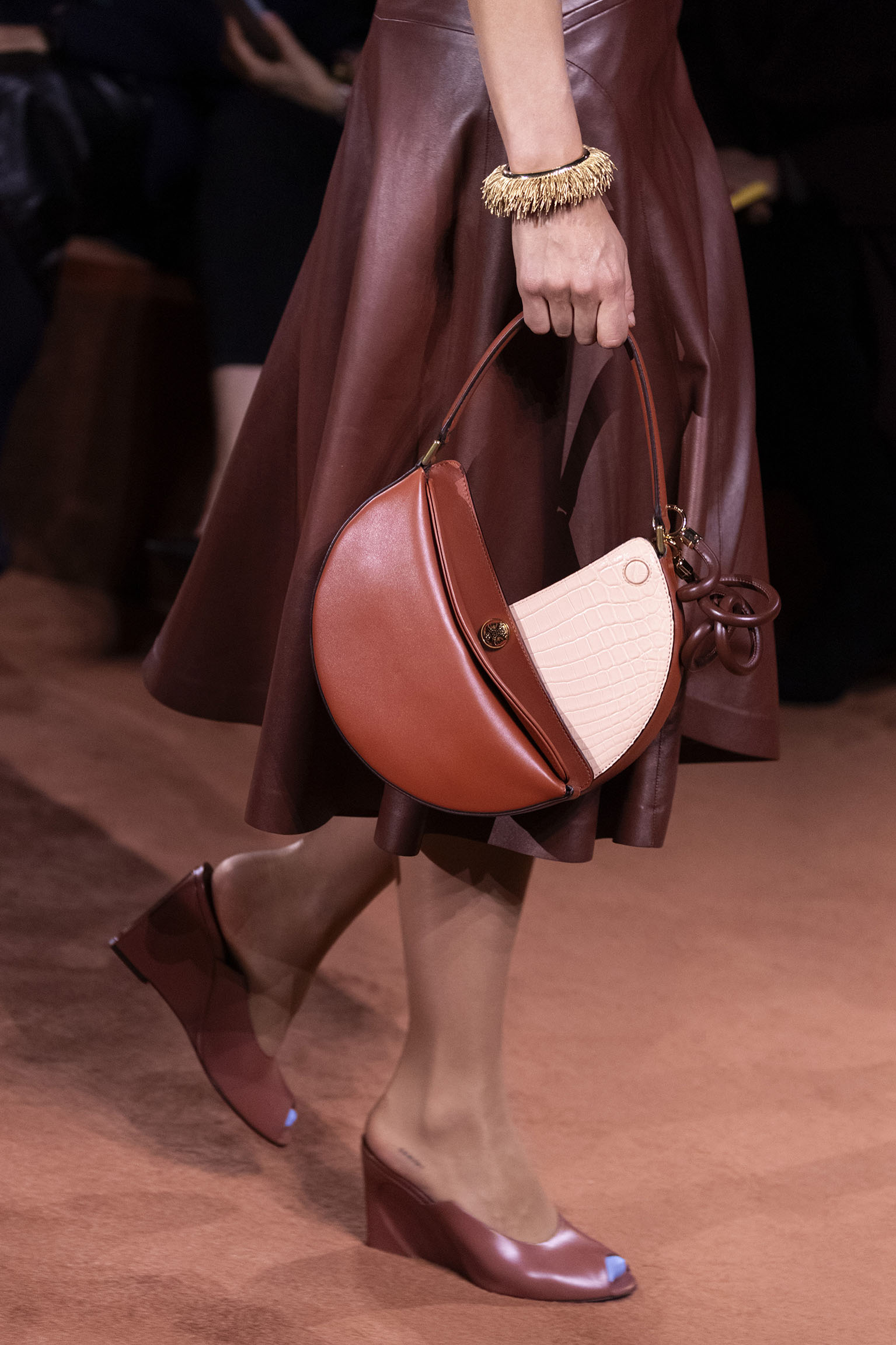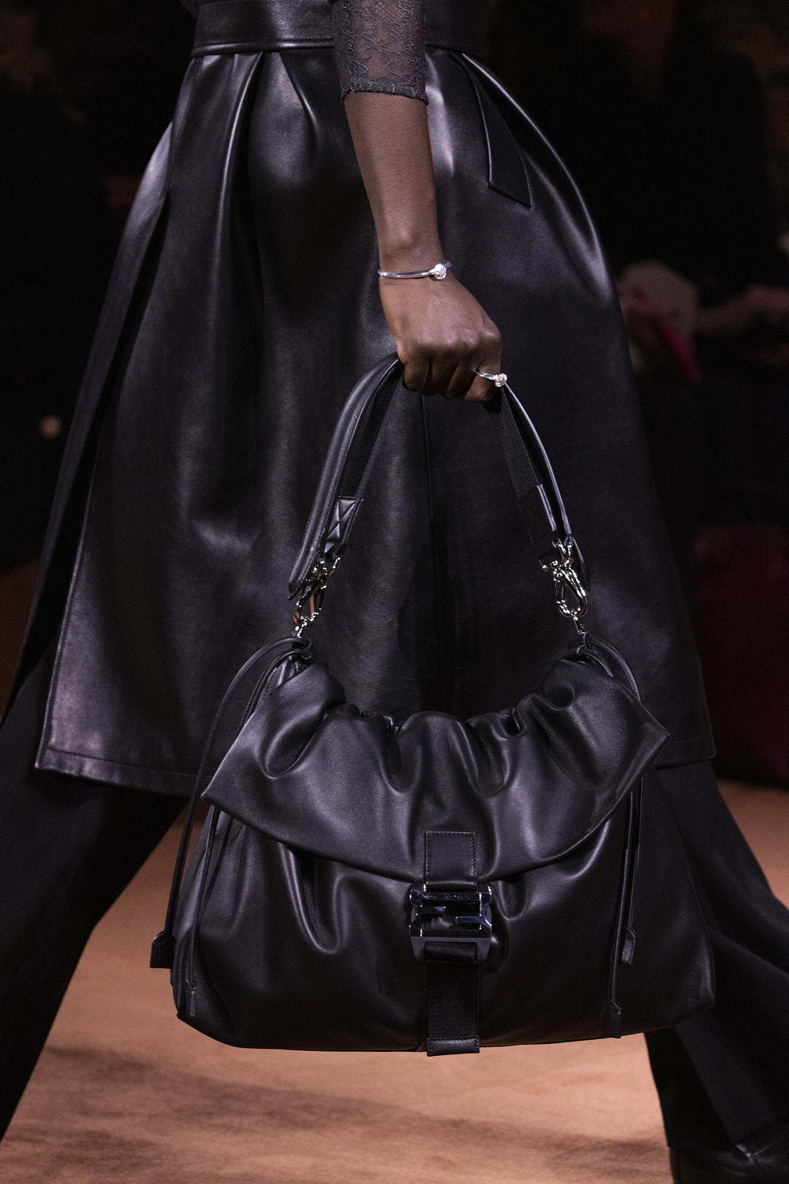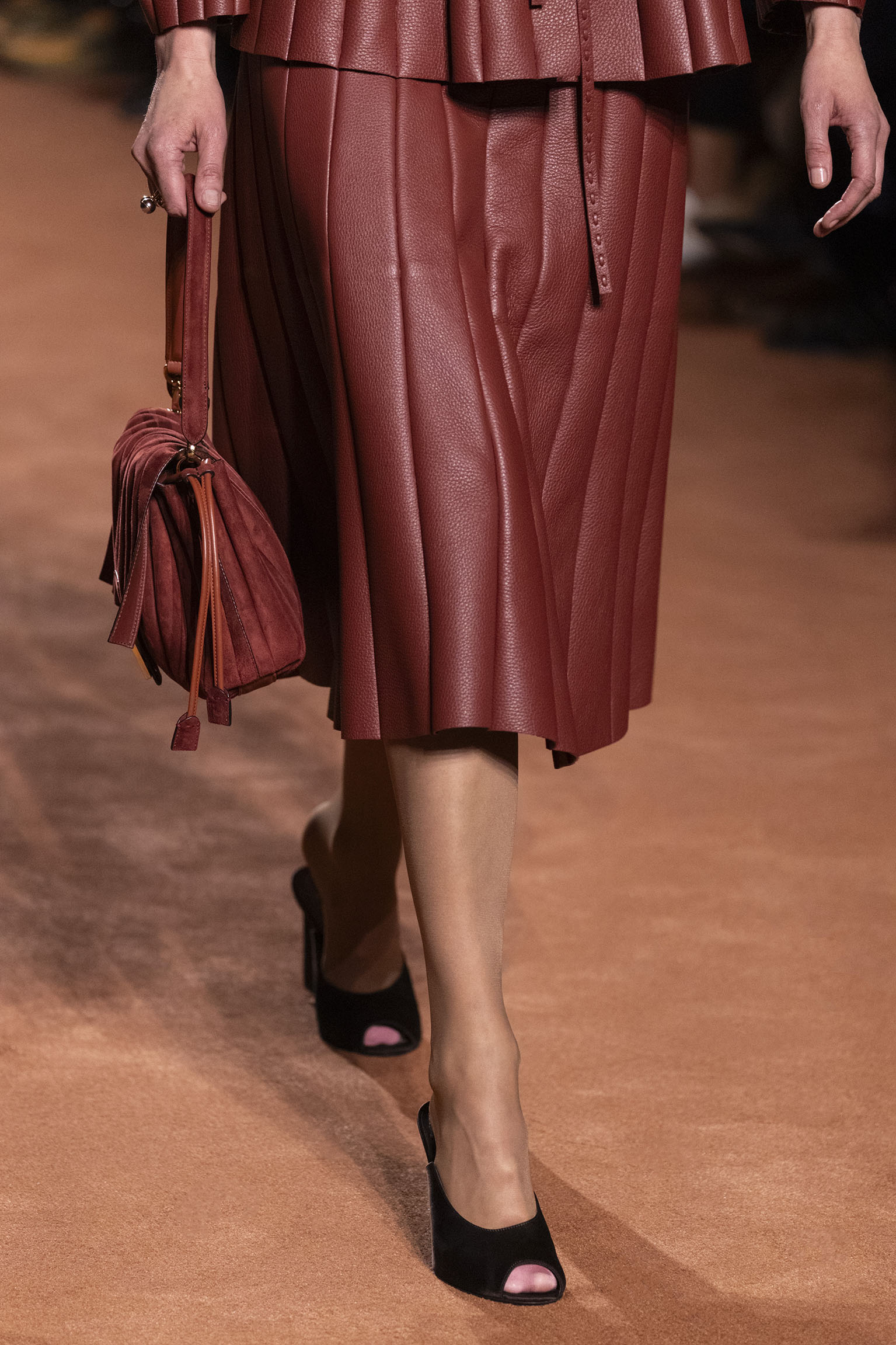 La richesse de la collection Fall/Winter 2025-26 se révèle également à travers l’horizon des accessoires, véritables prolongements du savoir-faire Fendi. Chaque pièce – qu’il s’agisse du Fendi Giano, du Spy Bag ou des modèles iconiques tels que le Peekaboo Soft et le Mamma Baguette – est conçue pour être à la fois fonctionnelle et esthétiquement irrésistible. La diversité des matériaux, allant du cuir travaillé en Selleria à la shearling aux touches métalliques, offre un éventail de possibilités stylistiques qui s’adaptent aux besoins d’un quotidien raffiné et d’occasions exceptionnelles. Ce mariage réussi entre tradition et innovation confère à la Maison une identité forte et singulière, faisant de chaque accessoire un symbole du luxe intemporel.