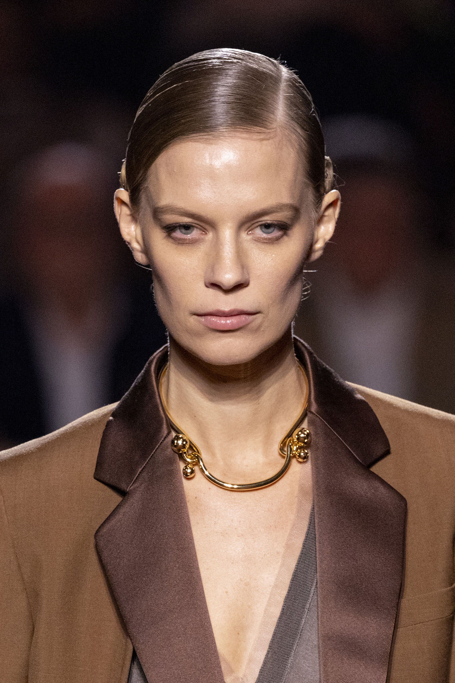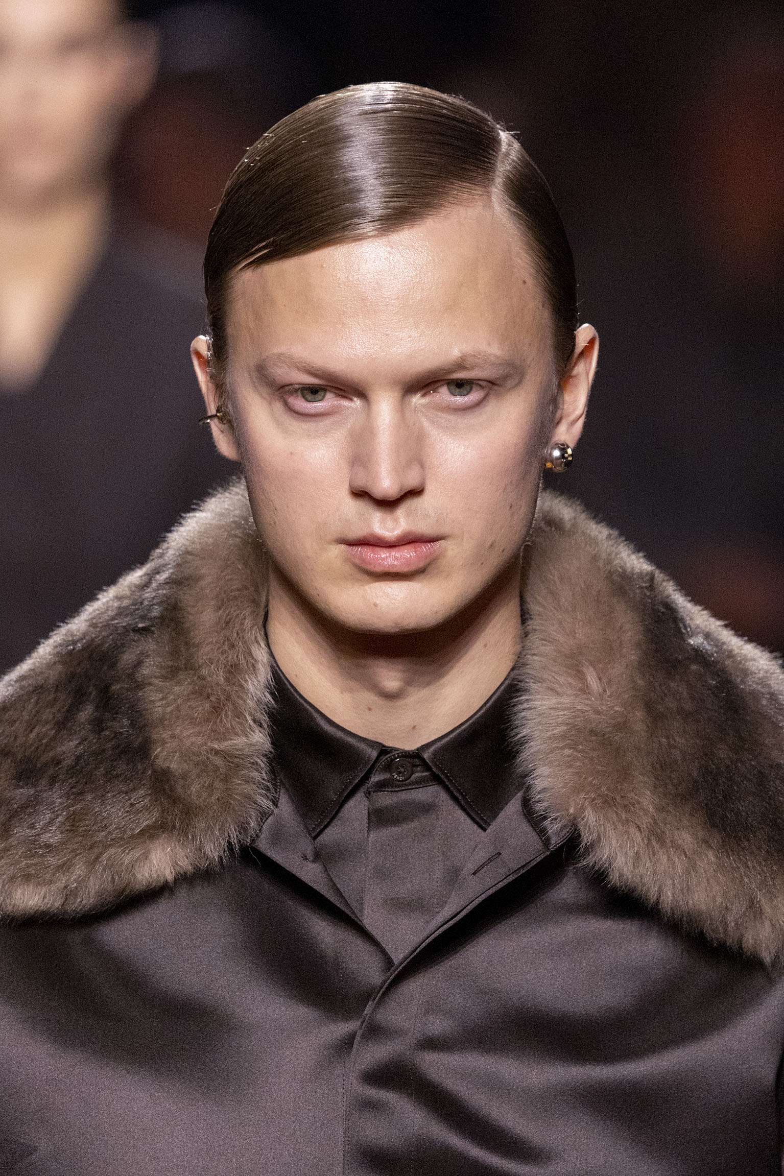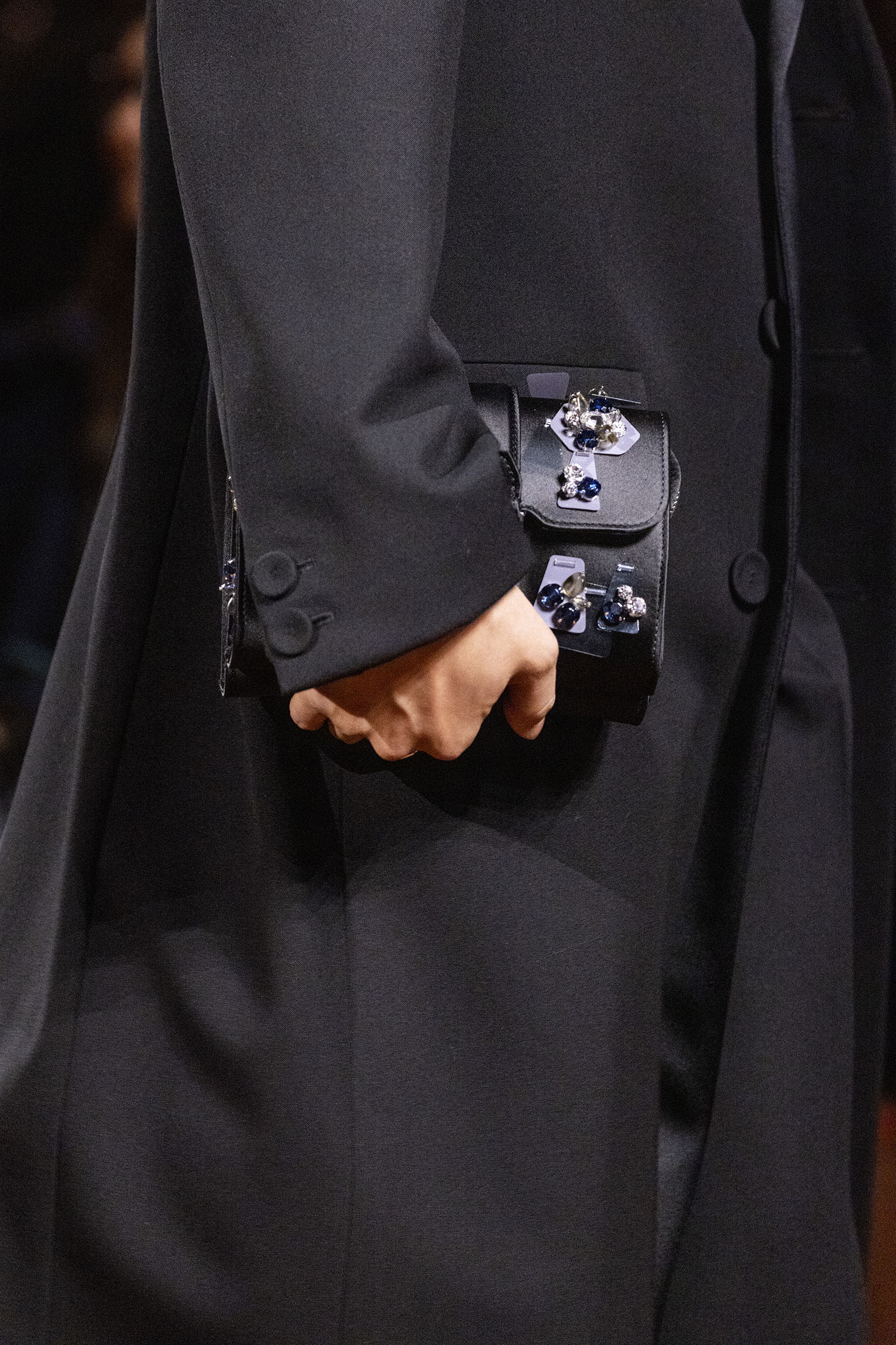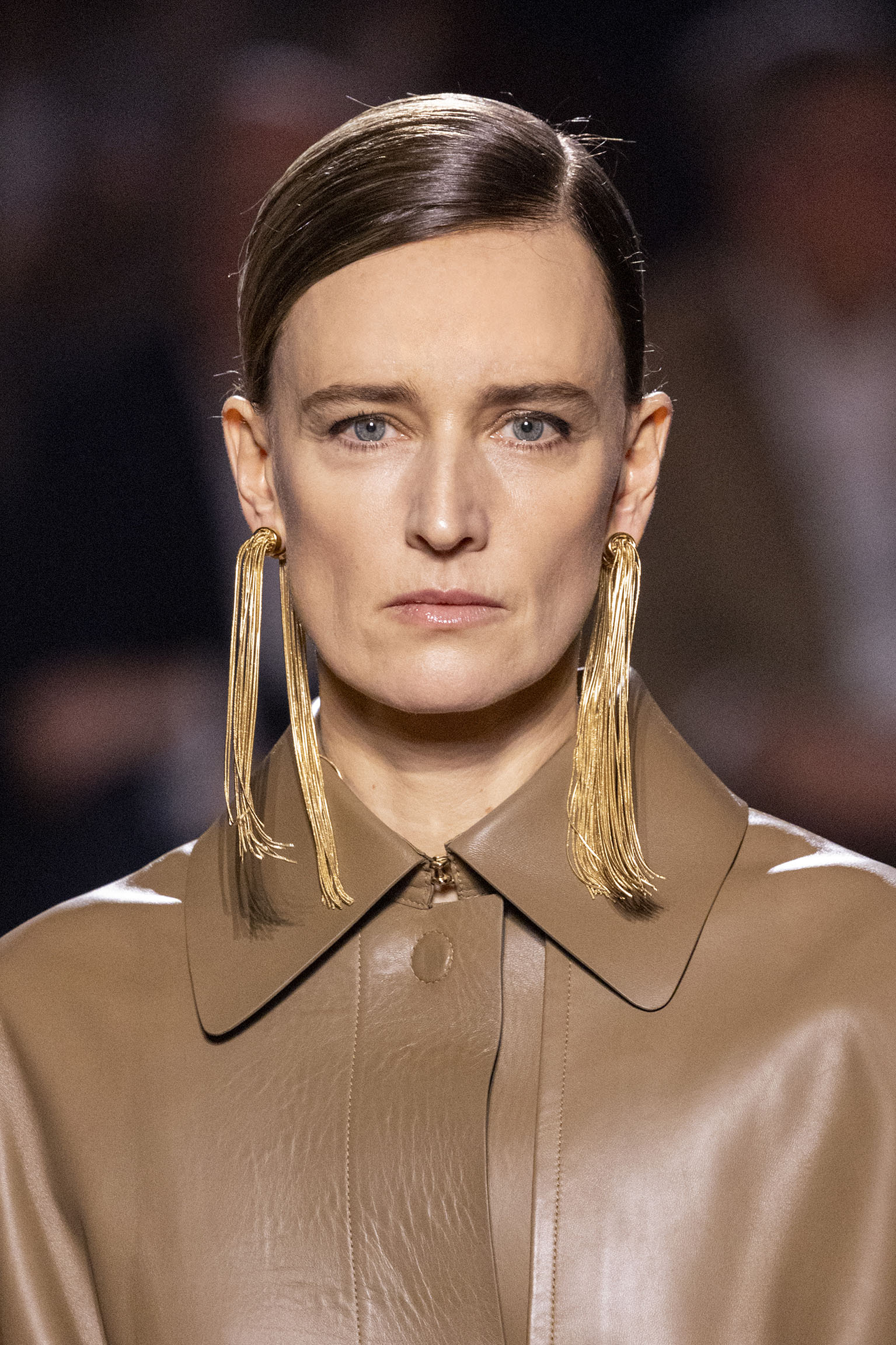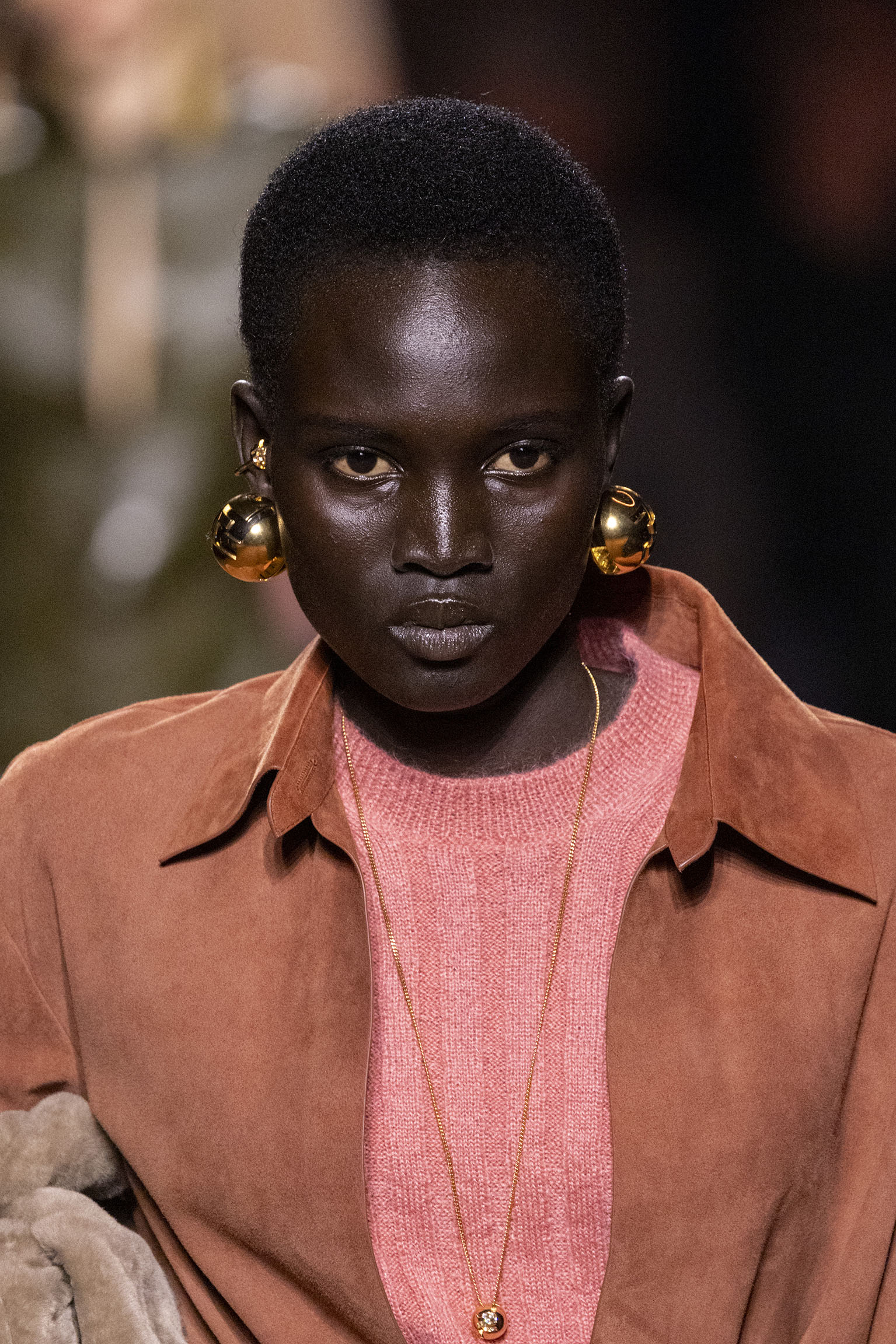 Les jeux de volume et de forme se métamorphosent en une véritable déclaration d’intemporalité et de modernité. Les coupes, à la fois structurées et fluides, invitent à une redéfinition du silhouette traditionnelle. Un manteau retravaillé, par exemple, se déploie en une cape majestueuse, tandis que des vestes se parent d’un revers satinés et de finitions de haute précision. À cela s’ajoute la signature Fendi, toujours présente à travers des motifs graphiques qui réinterprètent l’iconographie du passé – le bracelet-sleeve blazer ou encore le trench revisité – et se déclinent dans une palette de couleurs inspirée des nuances d’un Rome au crépuscule. De la douceur d’un champagne effervescent aux teintes plus robustes telles que le graphite ou le chocolat, chaque couleur évoque une facette de la capitale italienne, tantôt mystérieuse, tantôt éclatante, reflétant la complexité et la richesse d’un héritage millénaire.