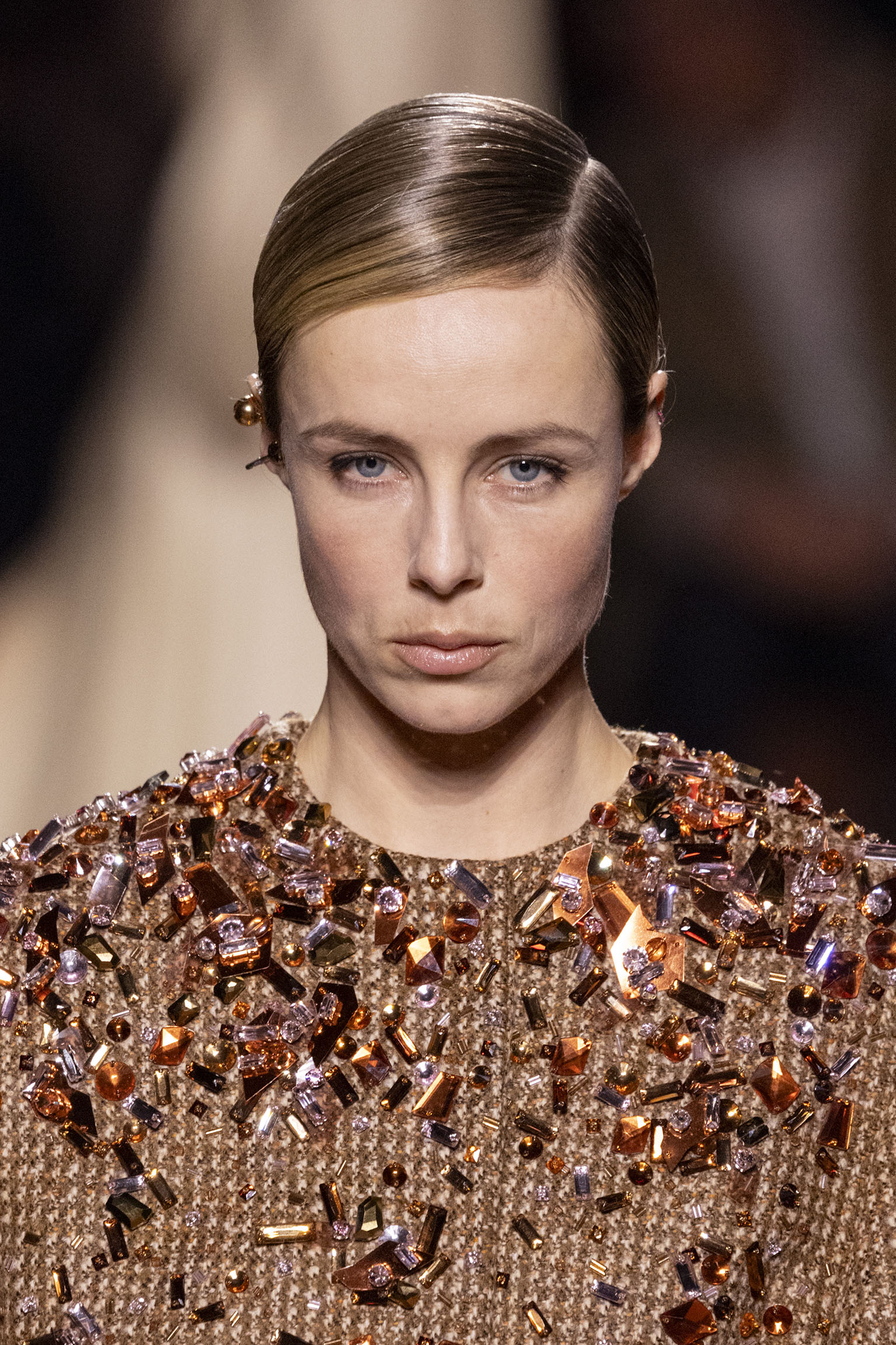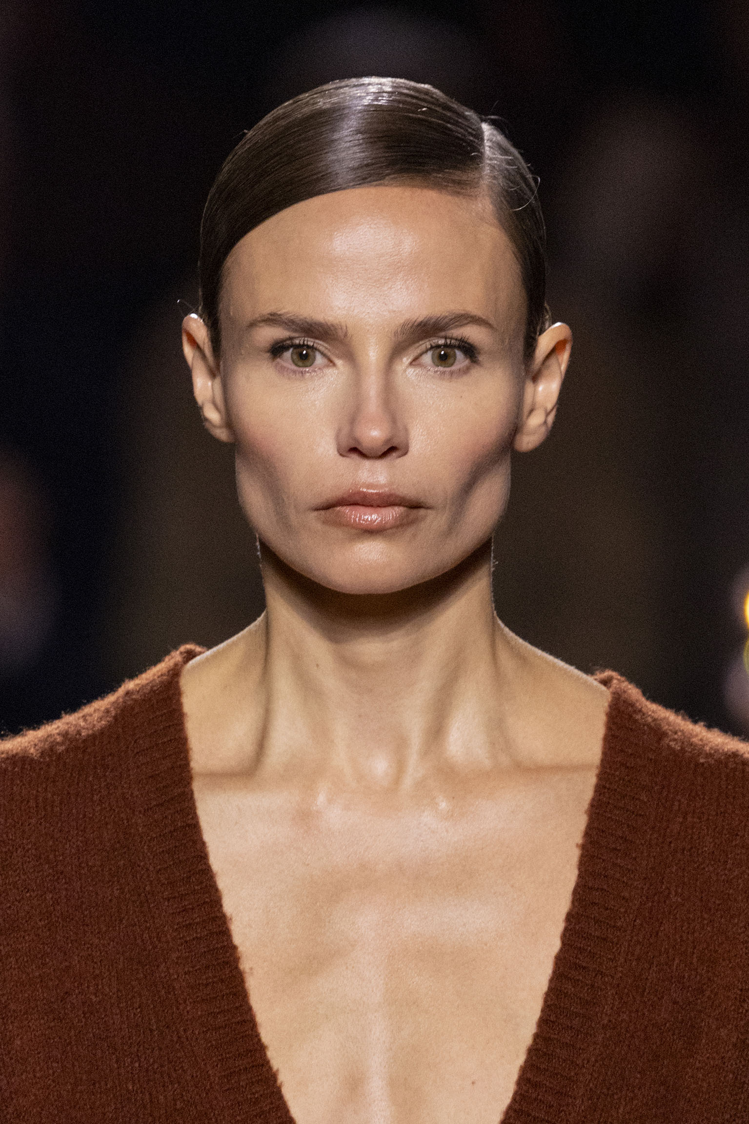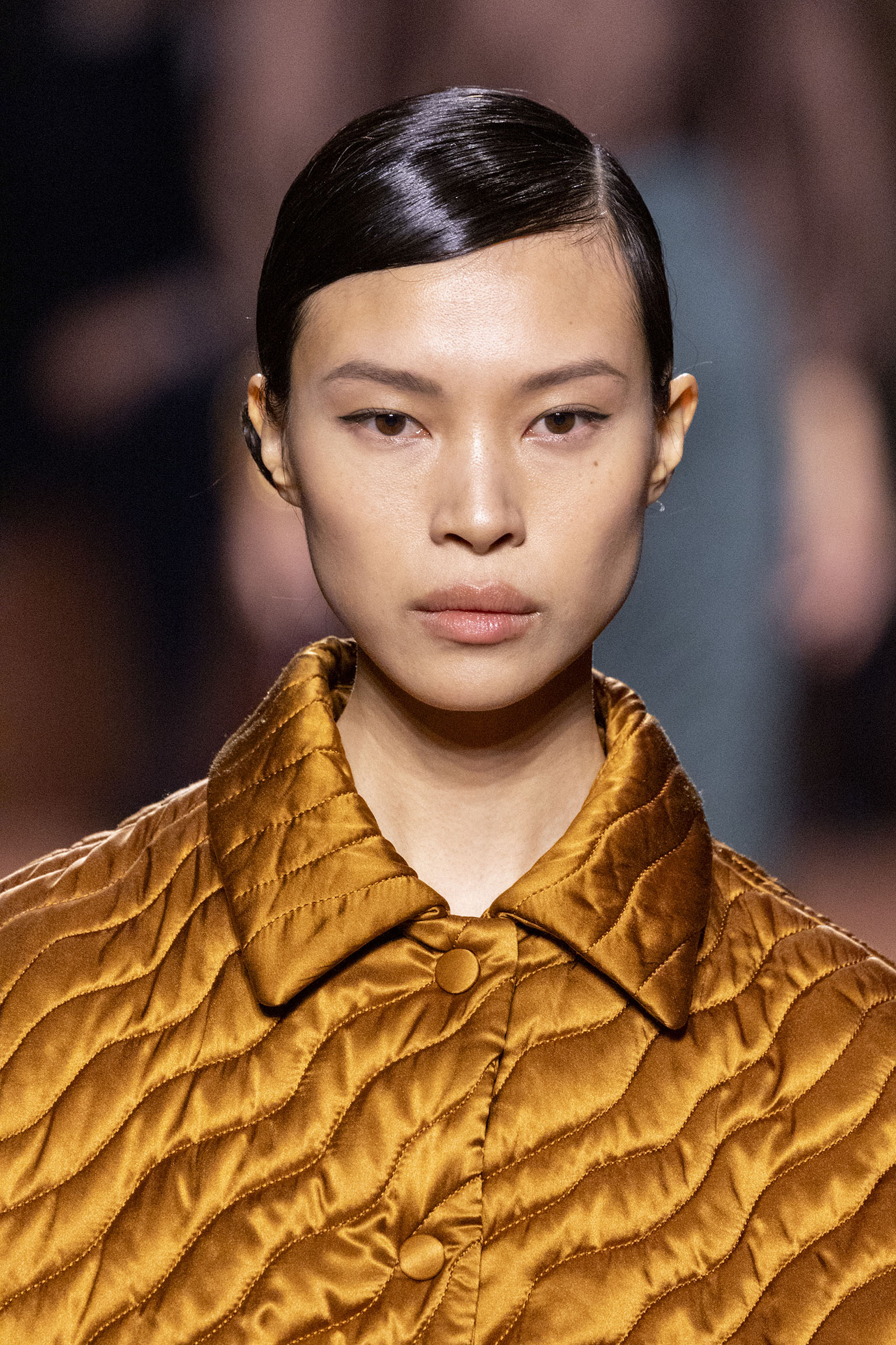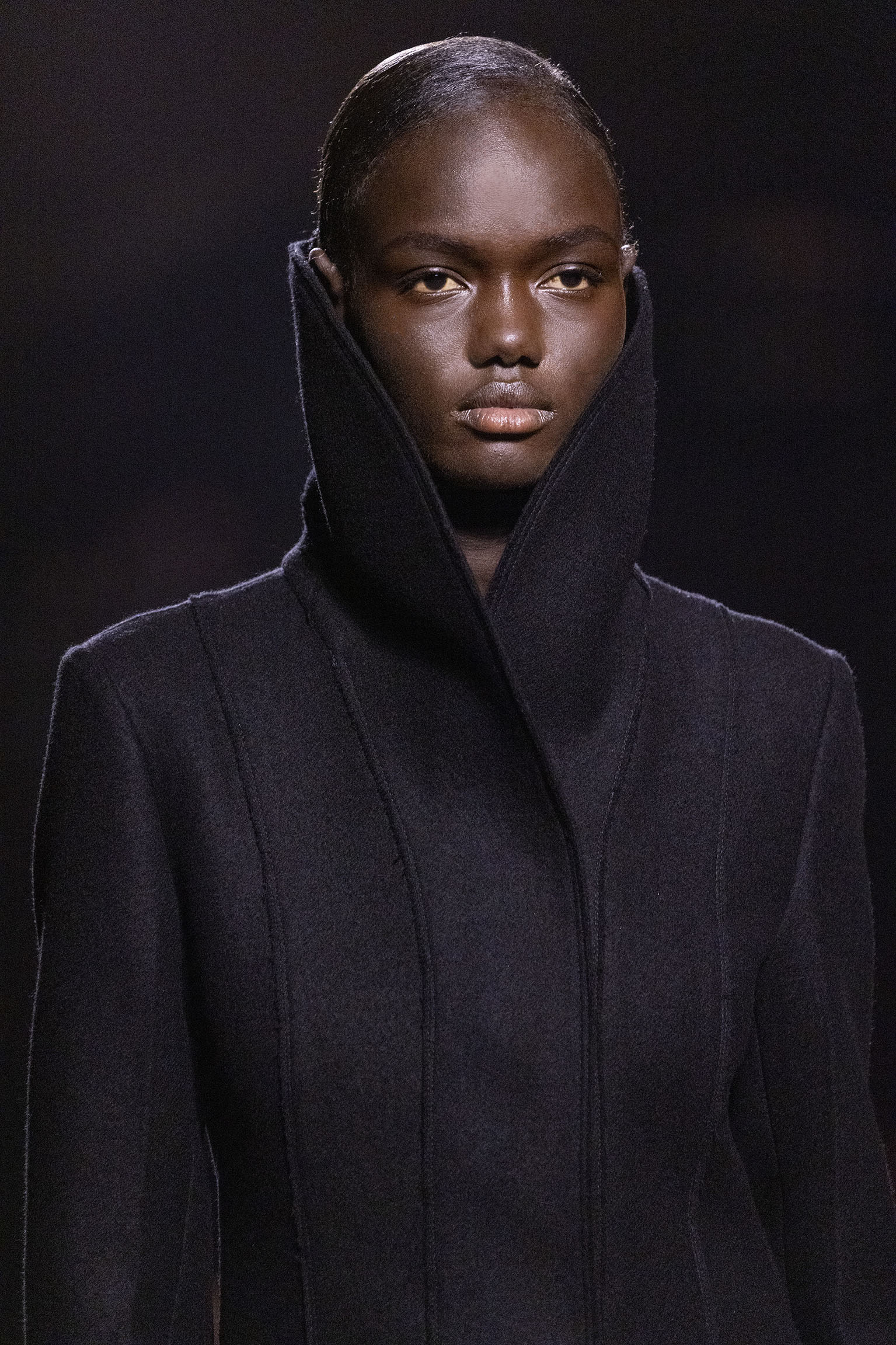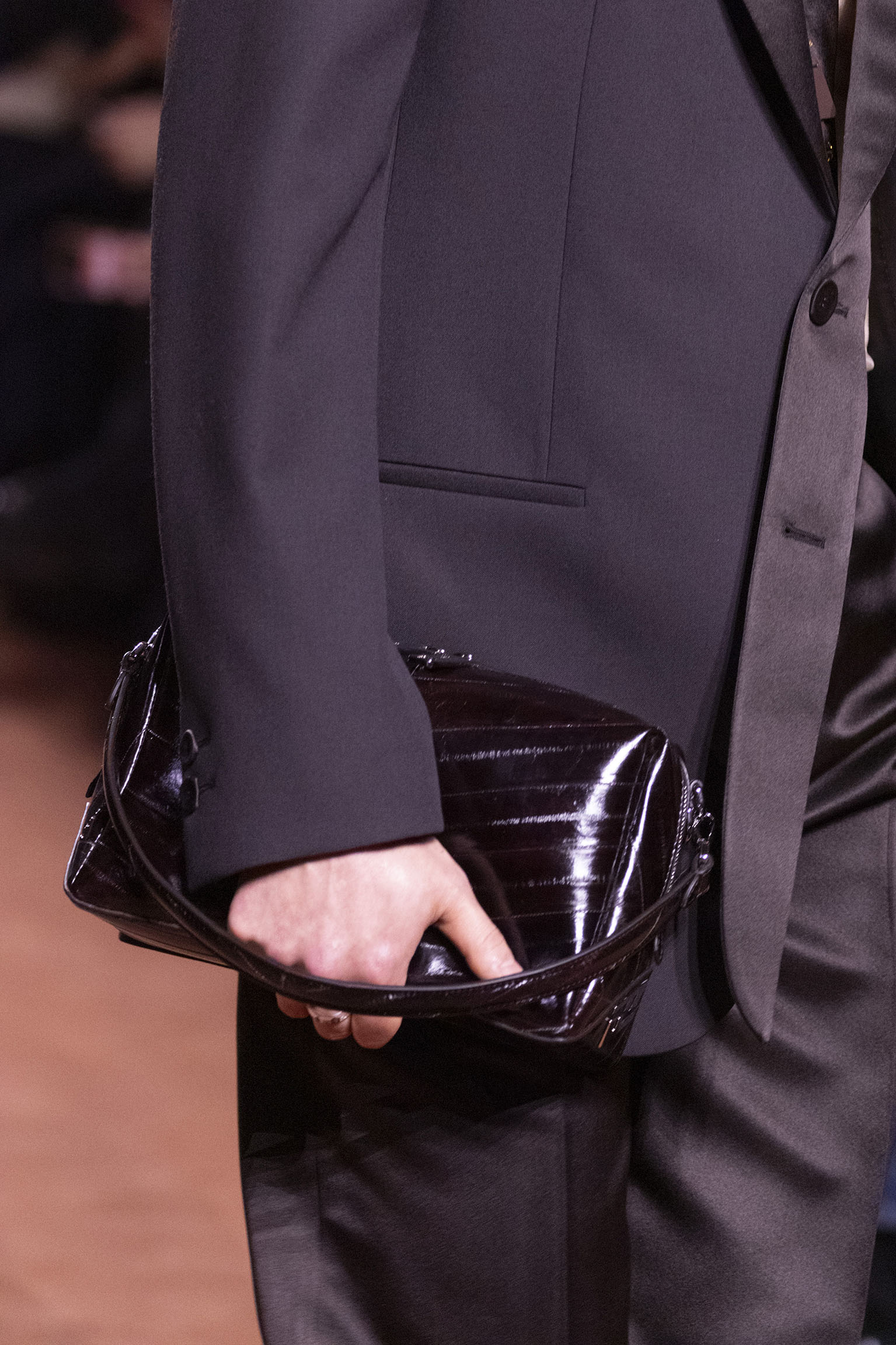 Les jeux de volume et de forme se métamorphosent en une véritable déclaration d’intemporalité et de modernité. Les coupes, à la fois structurées et fluides, invitent à une redéfinition du silhouette traditionnelle. Un manteau retravaillé, par exemple, se déploie en une cape majestueuse, tandis que des vestes se parent d’un revers satinés et de finitions de haute précision. À cela s’ajoute la signature Fendi, toujours présente à travers des motifs graphiques qui réinterprètent l’iconographie du passé – le bracelet-sleeve blazer ou encore le trench revisité – et se déclinent dans une palette de couleurs inspirée des nuances d’un Rome au crépuscule. De la douceur d’un champagne effervescent aux teintes plus robustes telles que le graphite ou le chocolat, chaque couleur évoque une facette de la capitale italienne, tantôt mystérieuse, tantôt éclatante, reflétant la complexité et la richesse d’un héritage millénaire.