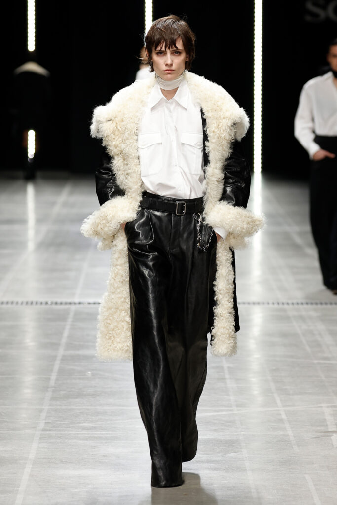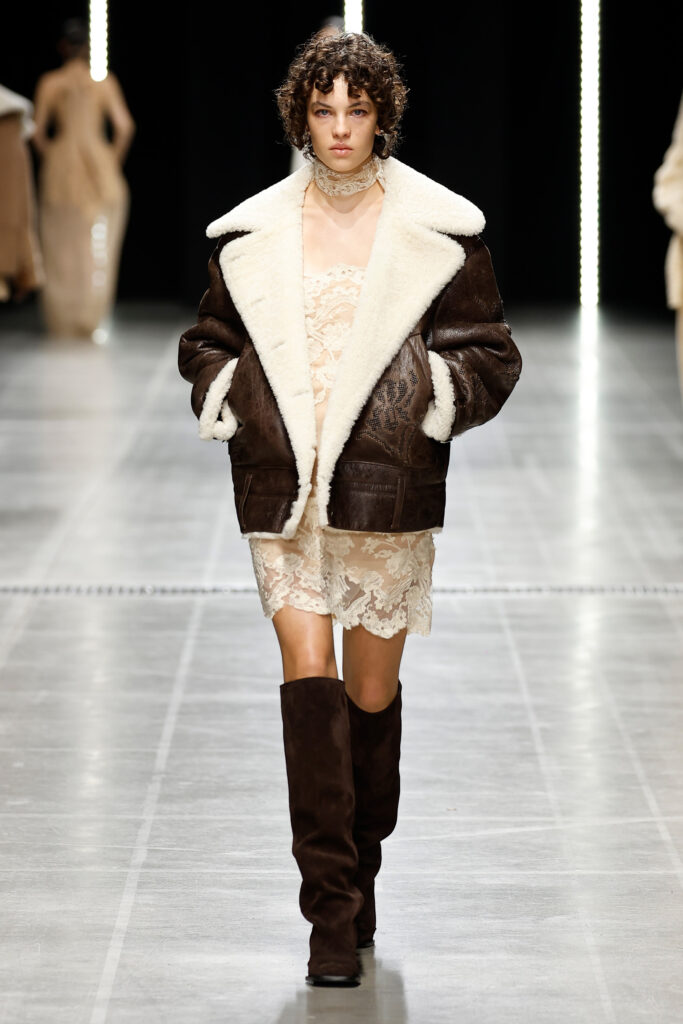 - Le cuir nappa, le suède et le shearling sont sublimés par des broderies en cuir, réinterprétant les textures.