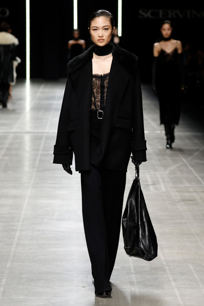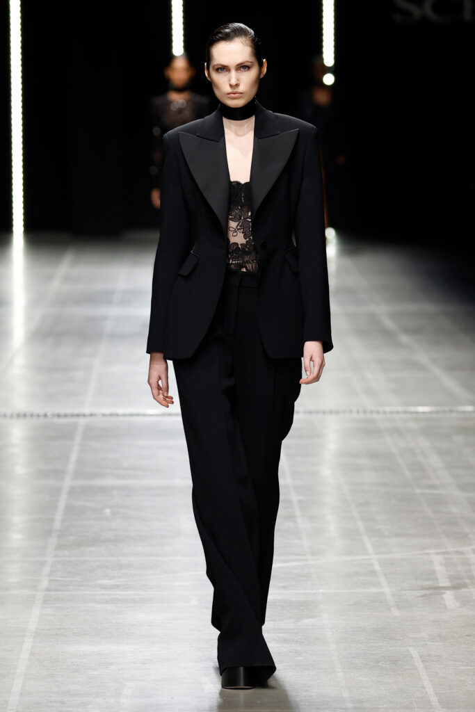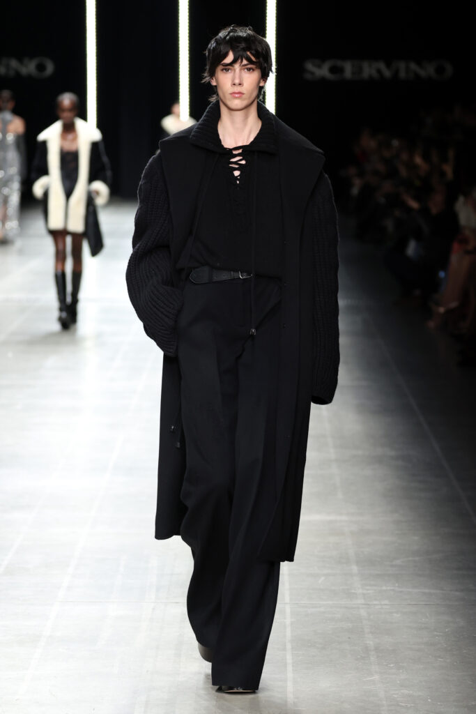 L’approche d’Ermanno Scervino repose sur une construction en contrastes équilibrés, où les matières et les coupes jouent sur l’opposition entre légèreté et structure.