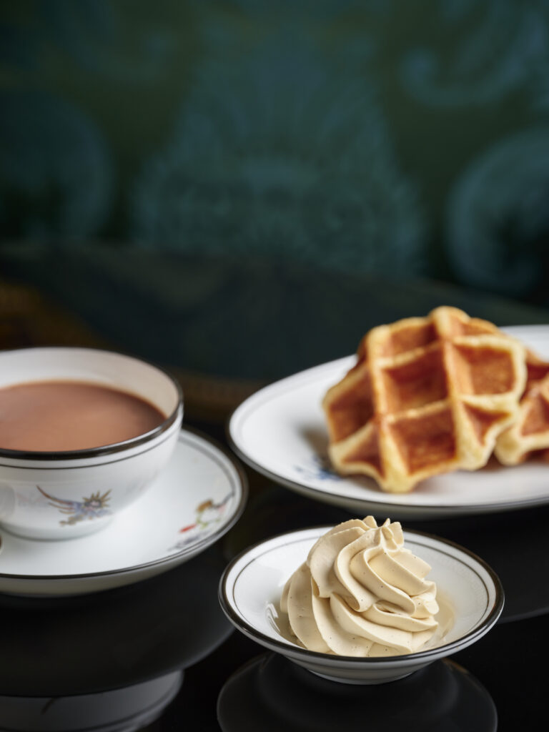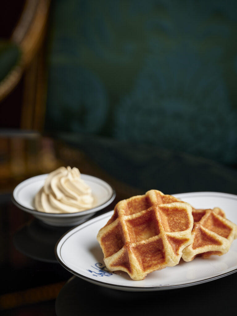 Ces boissons sont servies avec des gaufres liégeoises au sucre perlé, subtilement parfumées à la vanille de Madagascar et à la fleur d’oranger, accompagnées d’une délicate crème fouettée à la vanille.