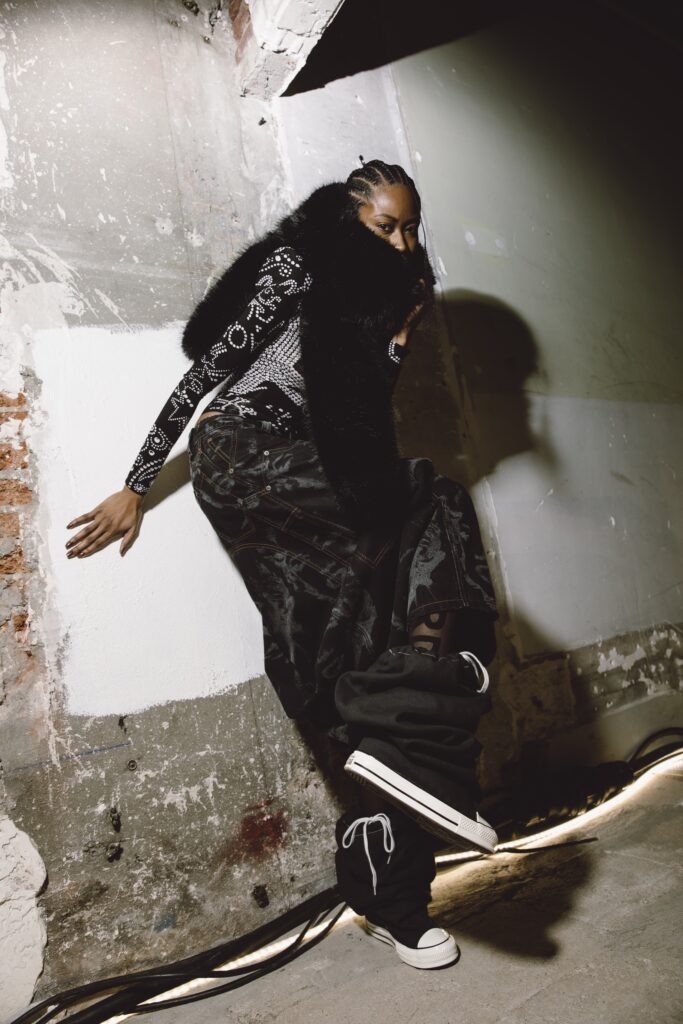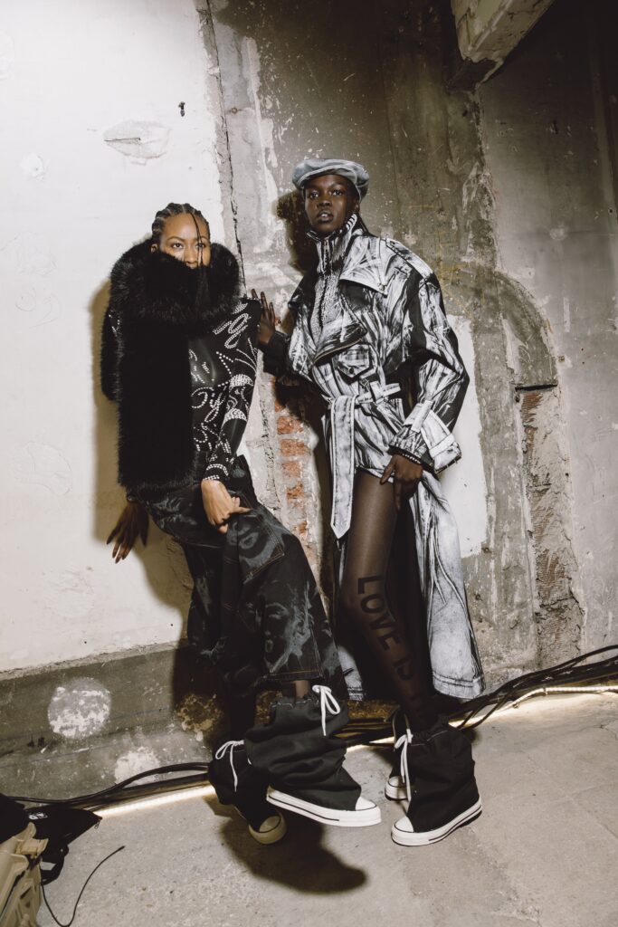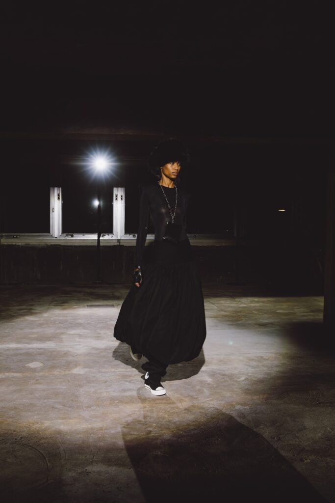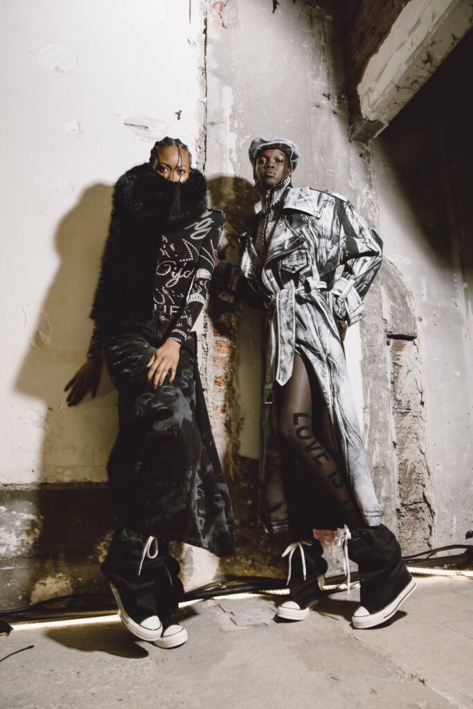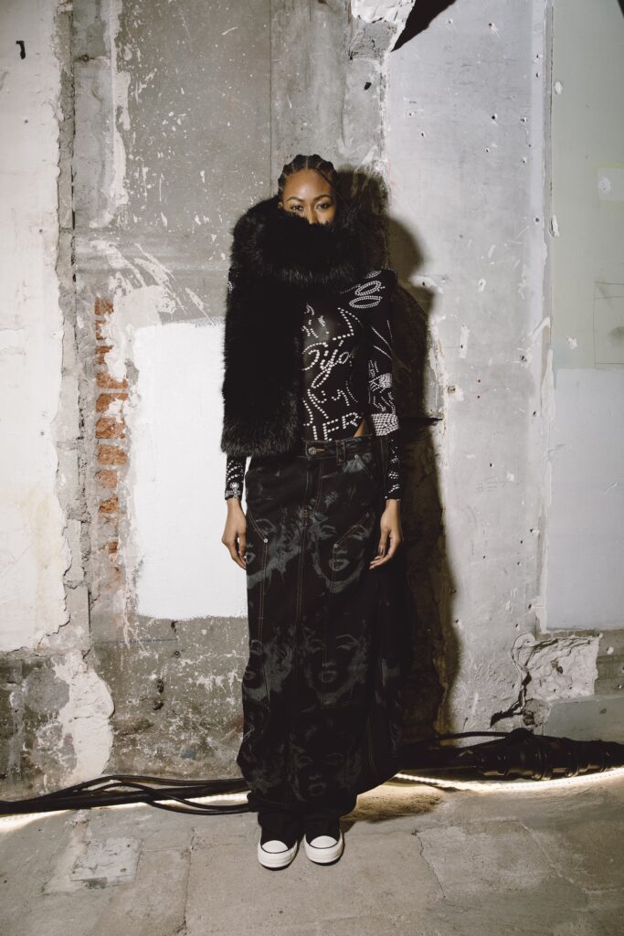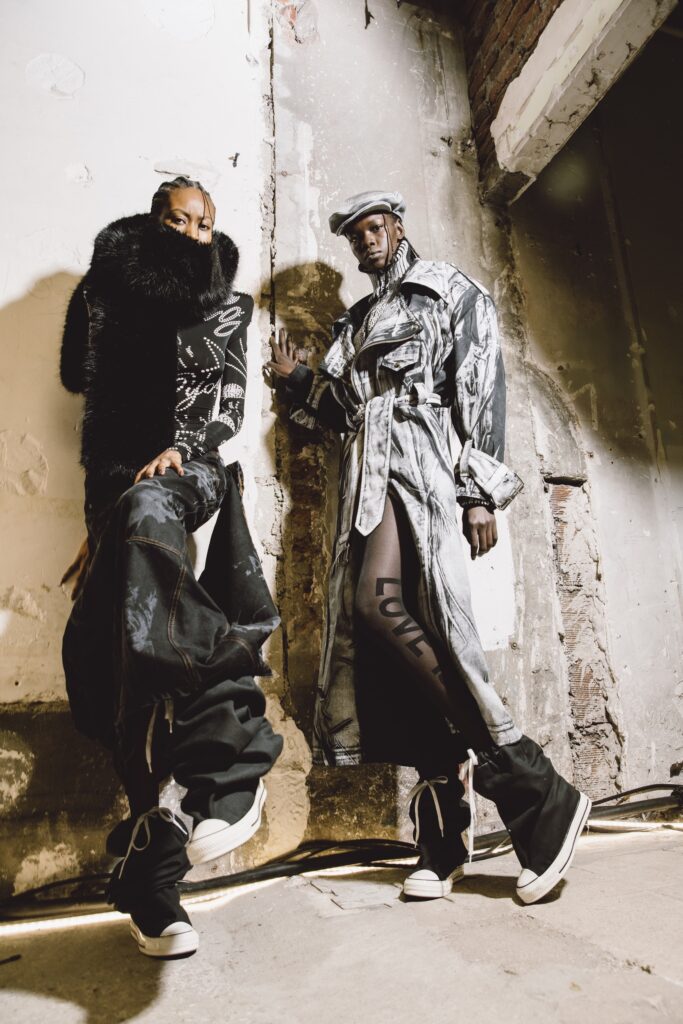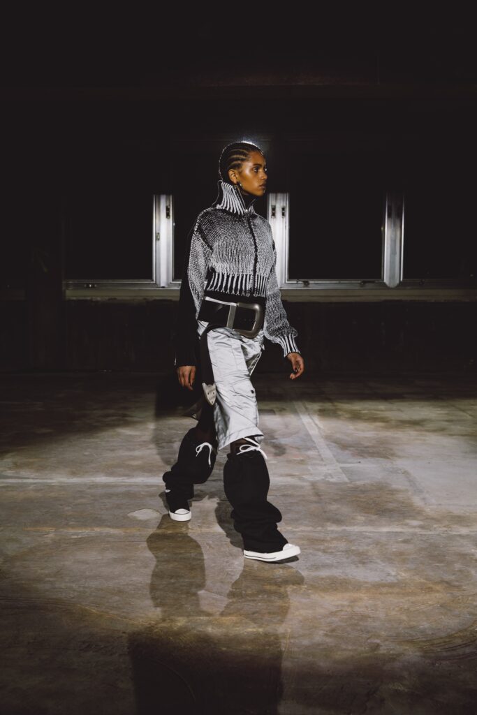 Si l’on devait retenir une pièce emblématique, ce serait sans conteste la transformation radicale de la Converse Chuck Taylor. Pour cette collaboration, Vaquera la métamorphose en botte ample montant jusqu’au genou, dissimulant un talon compensé secret. Cette silhouette, à la croisée du punk, du cabaret et du streetwear, inscrit définitivement cette collaboration dans une esthétique provocante et avant-gardiste.