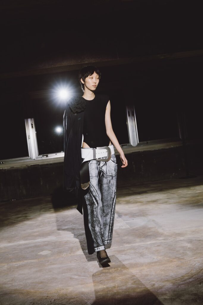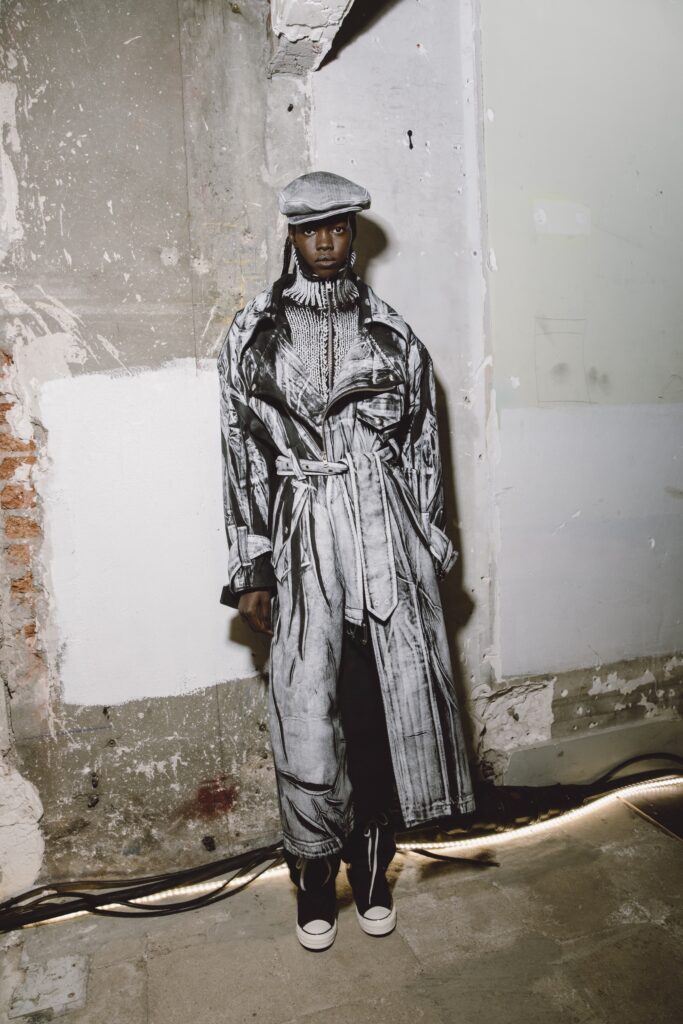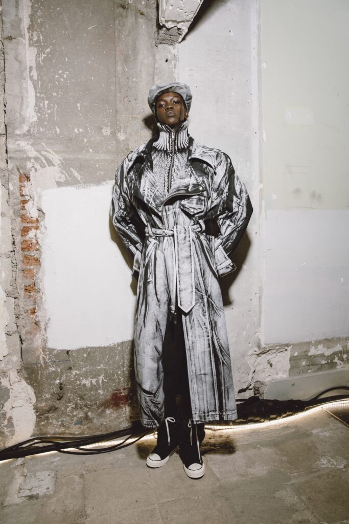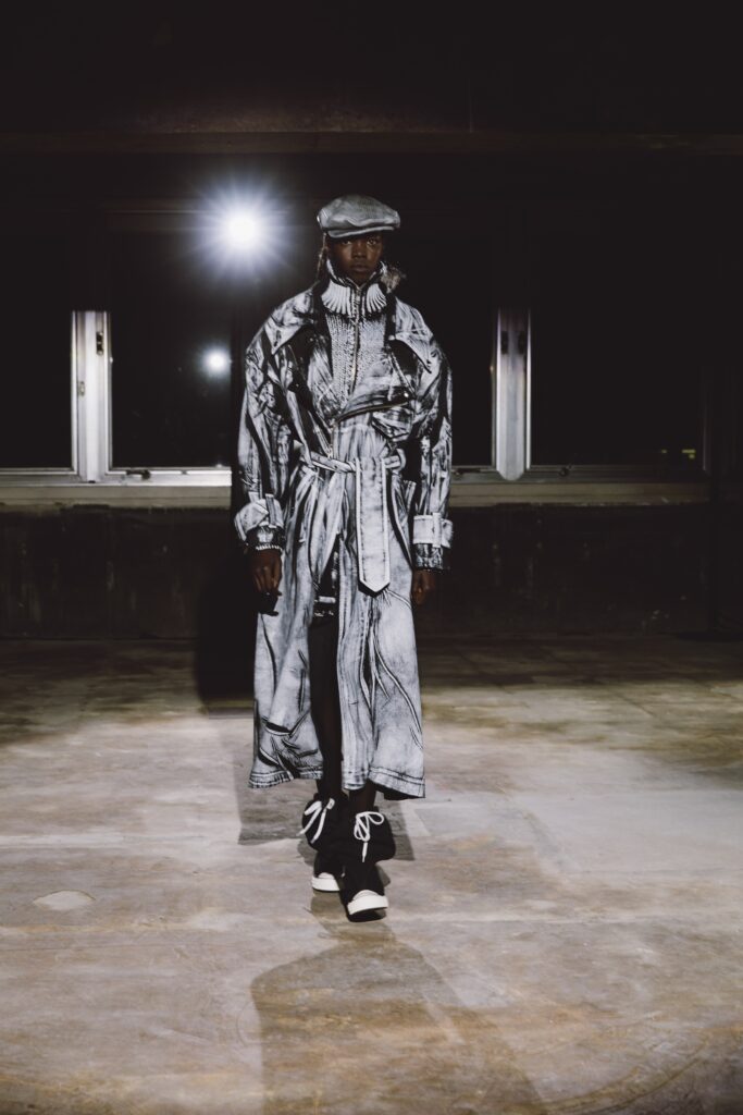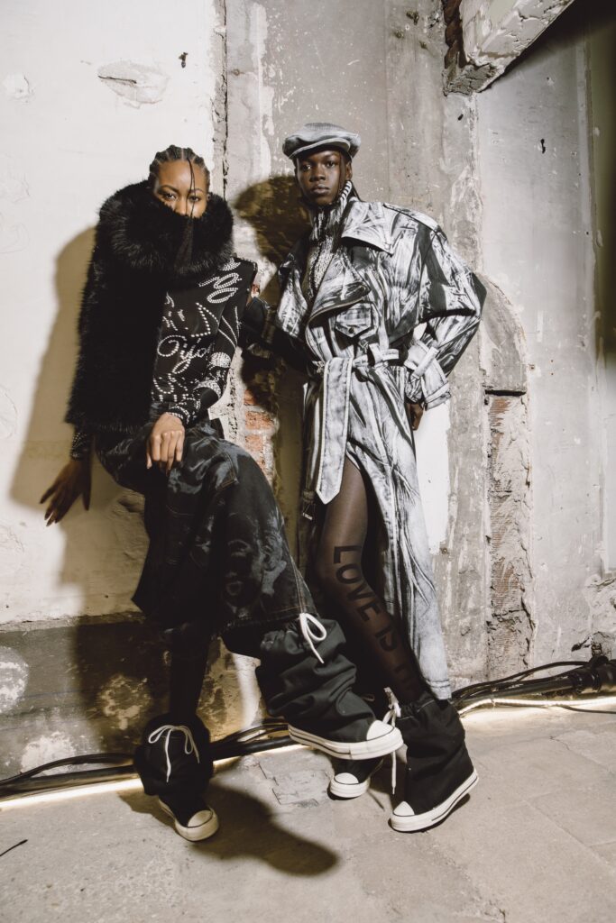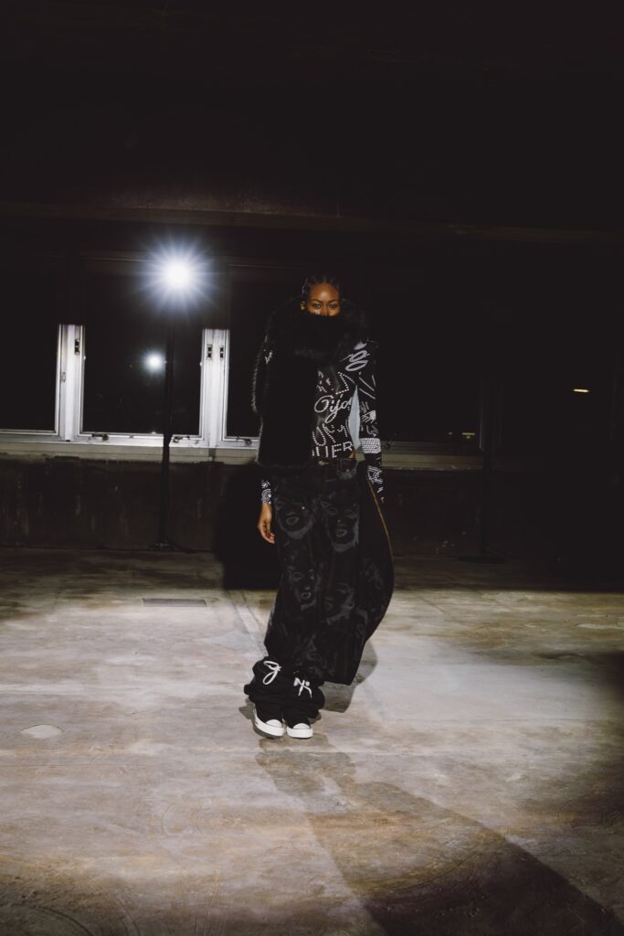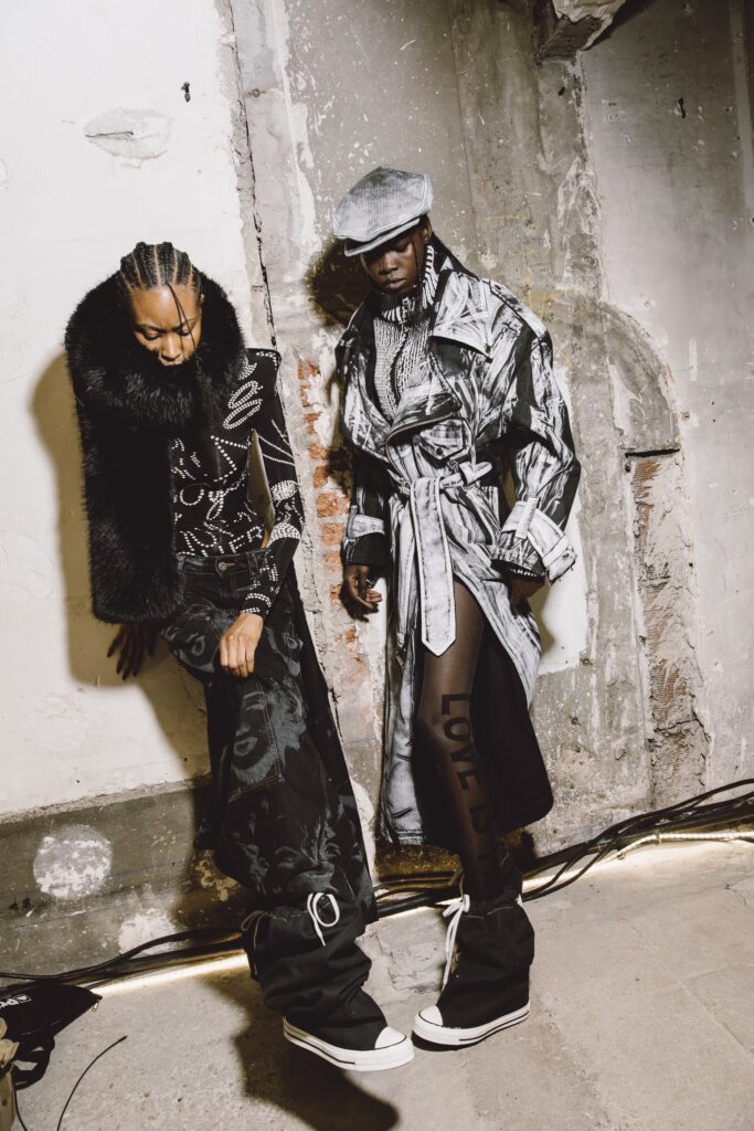 Si l’on devait retenir une pièce emblématique, ce serait sans conteste la transformation radicale de la Converse Chuck Taylor. Pour cette collaboration, Vaquera la métamorphose en botte ample montant jusqu’au genou, dissimulant un talon compensé secret. Cette silhouette, à la croisée du punk, du cabaret et du streetwear, inscrit définitivement cette collaboration dans une esthétique provocante et avant-gardiste.