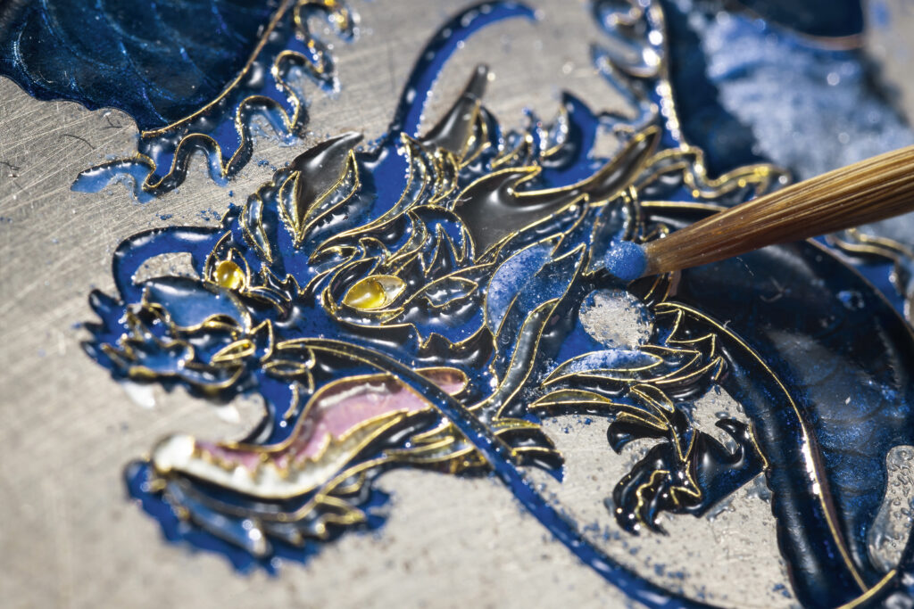 - Matériaux : Or serti de diamants et de saphirs, émail Grand Feu cloisonné