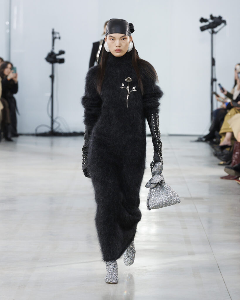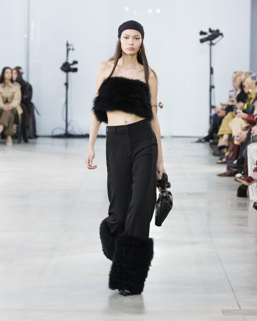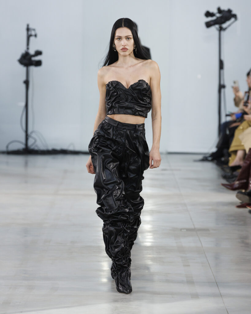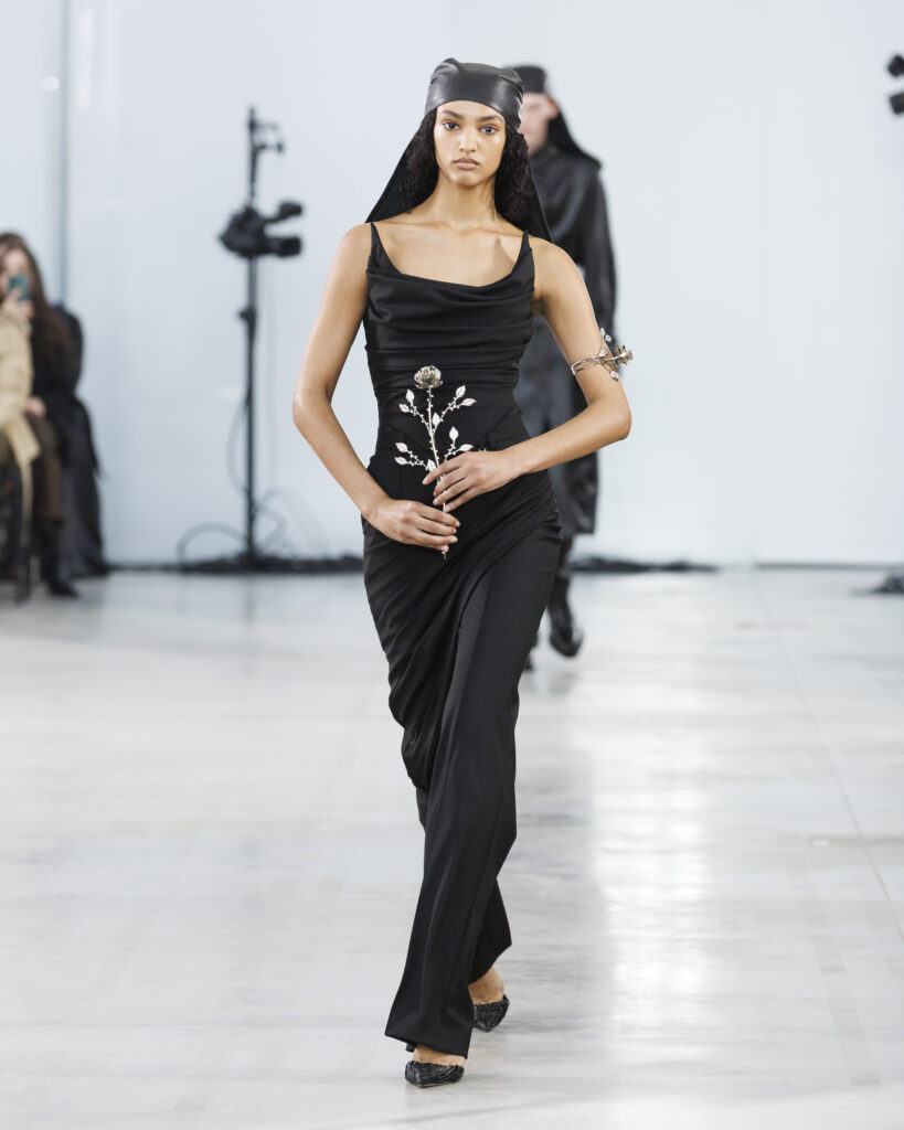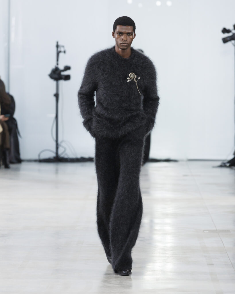 Force et délicatesse, obscurité et lumière, passé et modernité. Giuseppe Di Morabito construit une partition où chaque note traduit un contraste assumé, donnant à sa collection Automne-Hiver 2025 une résonance presque philosophique. En se lançant sur le podium, il ne se contente pas de présenter des vêtements : il orchestre une réflexion sur la nature même du contemporain, explorant la mémoire du vêtement tout en le projetant vers l’avenir.