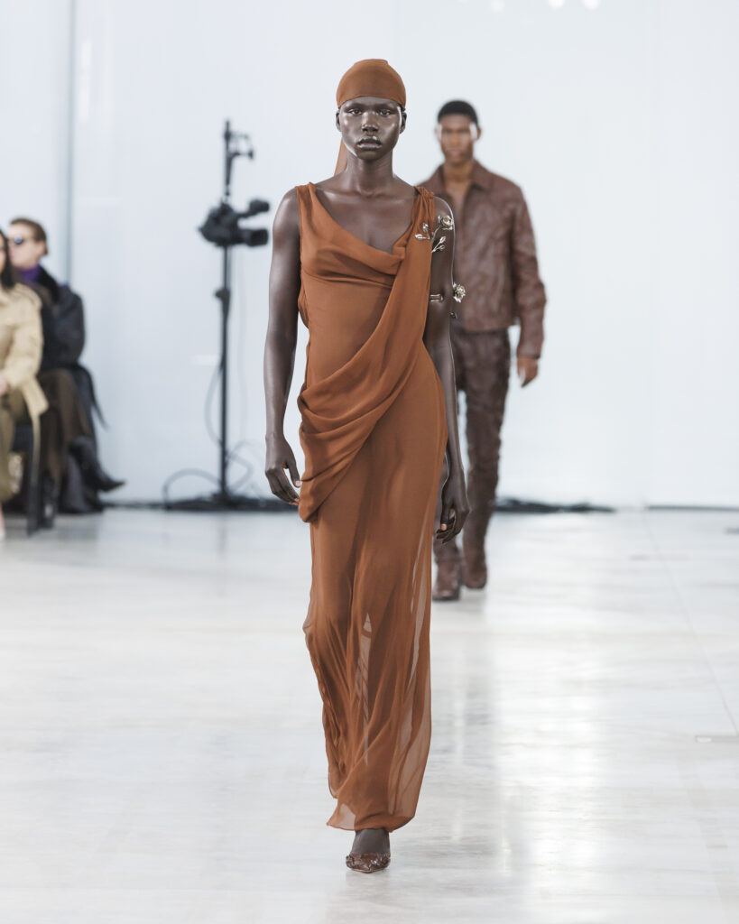 Giuseppe Di Morabito réussit à transcender la mode pour en faire un récit où le vêtement devient mémoire et anticipation, affirmation et questionnement. Automne-Hiver 2025 s’impose ainsi comme une exploration sensible et intellectuelle de notre époque, entre grandeur passée et vertige du futur.
