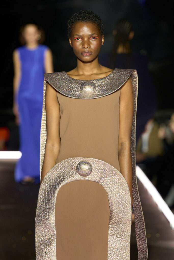 Un élément clé de la collection est la ligne upcycling, qui réinvente des matériaux d’archives sous un nouveau jour. Des textiles innovants, conçus pour protéger des températures extrêmes, ont souligné l’approche avant-gardiste de la collection. Sous la coupole de La Géode, les spectateurs ont assisté à bien plus qu’un simple défilé : une performance immersive brouillant les frontières entre la Terre et l’espace. Les paysages lunaires projetés sur des parois miroitantes ont renforcé l’atmosphère fantastique du show.