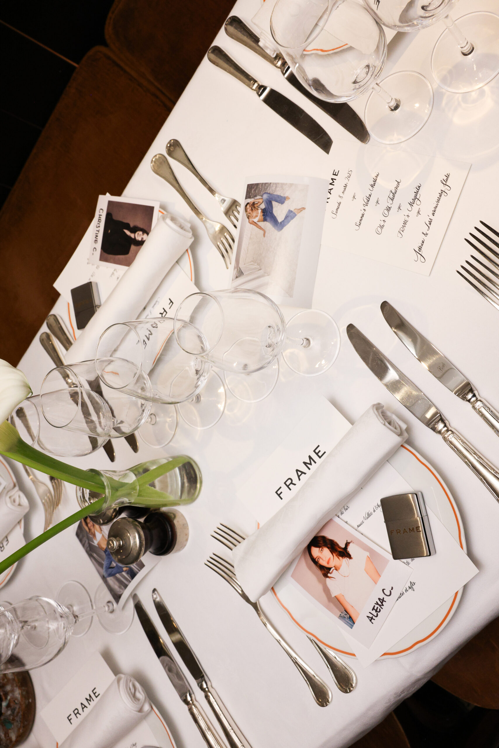 Moment fort de la soirée, Jessica Miller, premier visage de FRAME, a célébré son dixième anniversaire de mariage avec Lars Ulrich, batteur de Metallica, avec un cocktail signature à leur nom.
