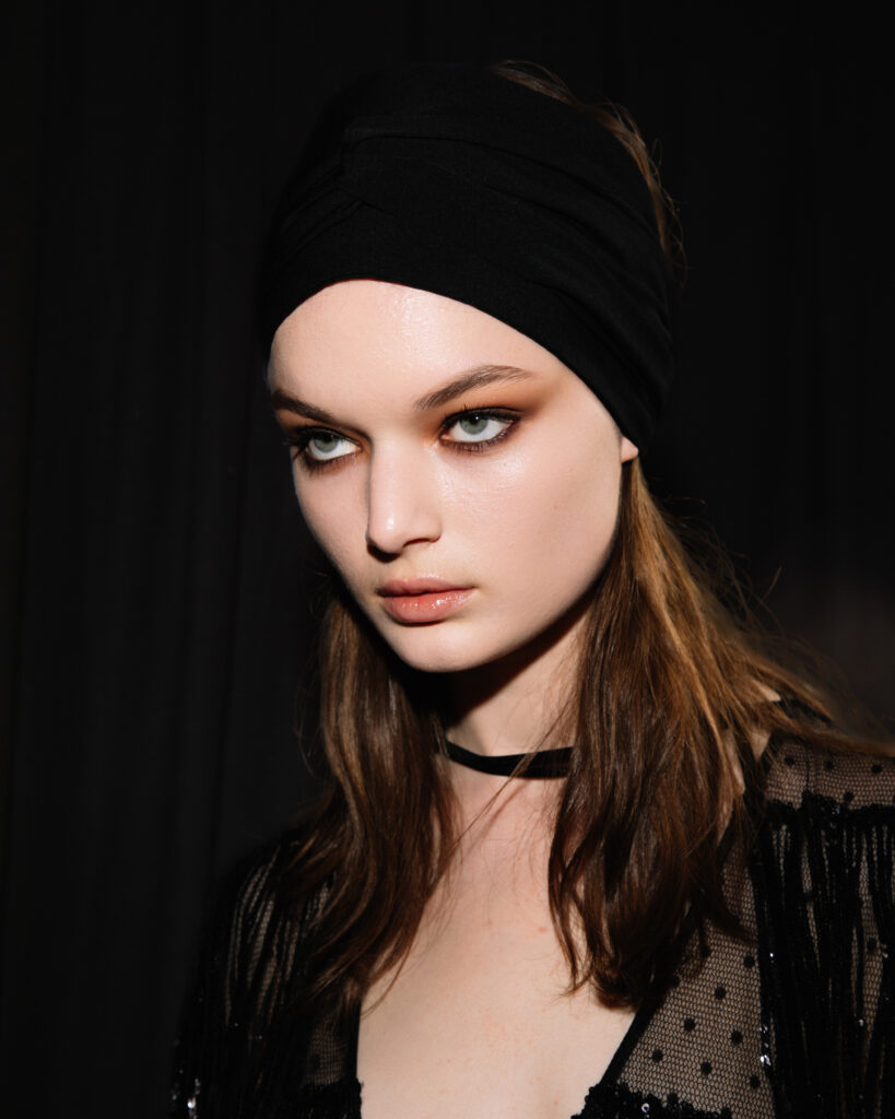 « Nous voulions que le maquillage semble vécu, comme si les mannequins avaient traversé la nuit avec une élégance désinvolte. » – Sofia Tilbury