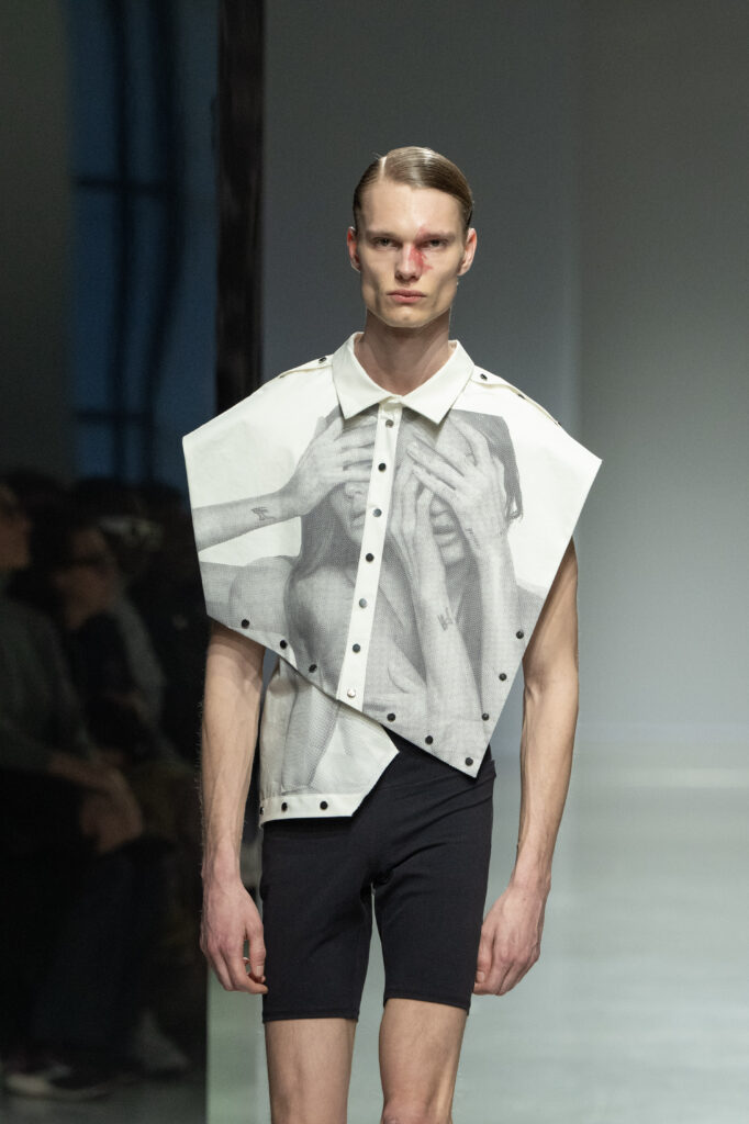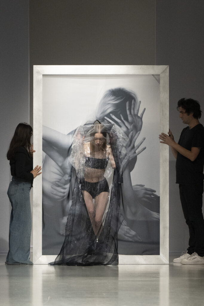 À l’ère du numérique et des filtres omniprésents, où commence notre véritable identité ? Est-elle façonnée par le regard des autres, par notre propre reflet ou par l’image que nous projetons ? Ces questions, au cœur de l’œuvre de Tigran Tsitoghdzyan, trouvent une résonance textile dans la vision d’Armine Ohanyan. Ensemble, ils orchestrent une collection où le vêtement devient un espace de réflexion, un jeu entre réalité et illusion.