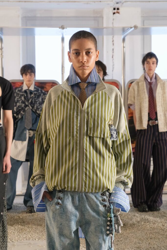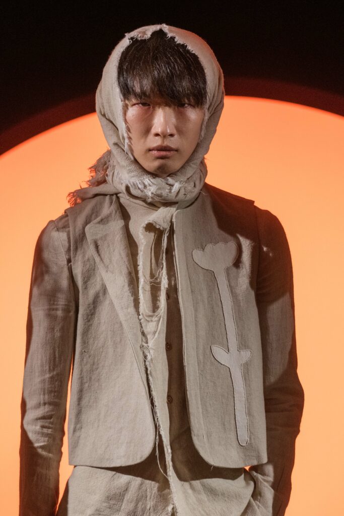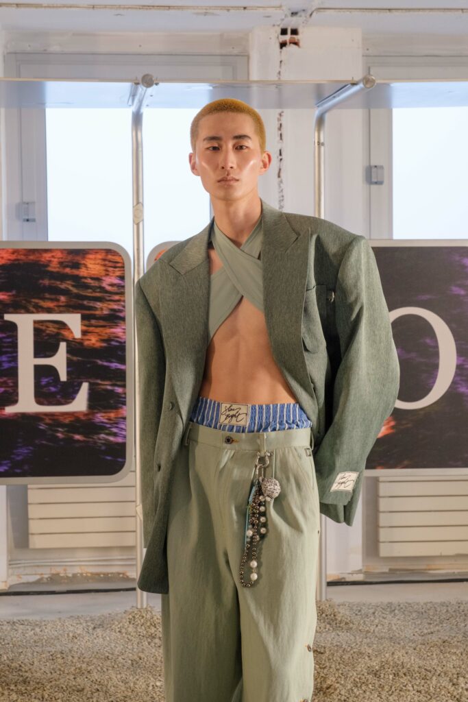 JESSE LEE, quant à lui, a présenté des pièces inspirées par l’ère romantique, conjuguant lyrisme et sensibilité poétique moderne dans une approche sophistiquée de la mode masculine.
