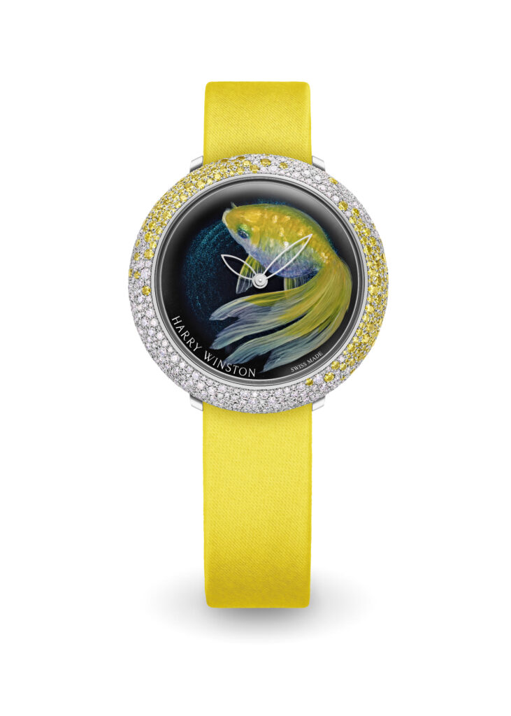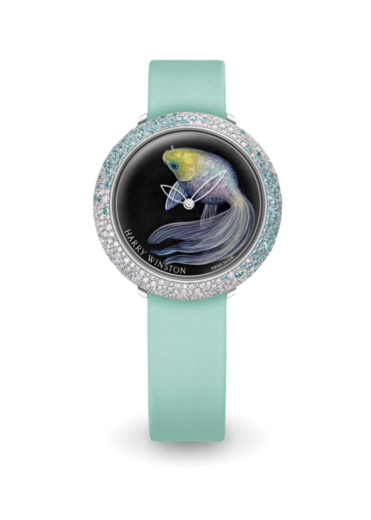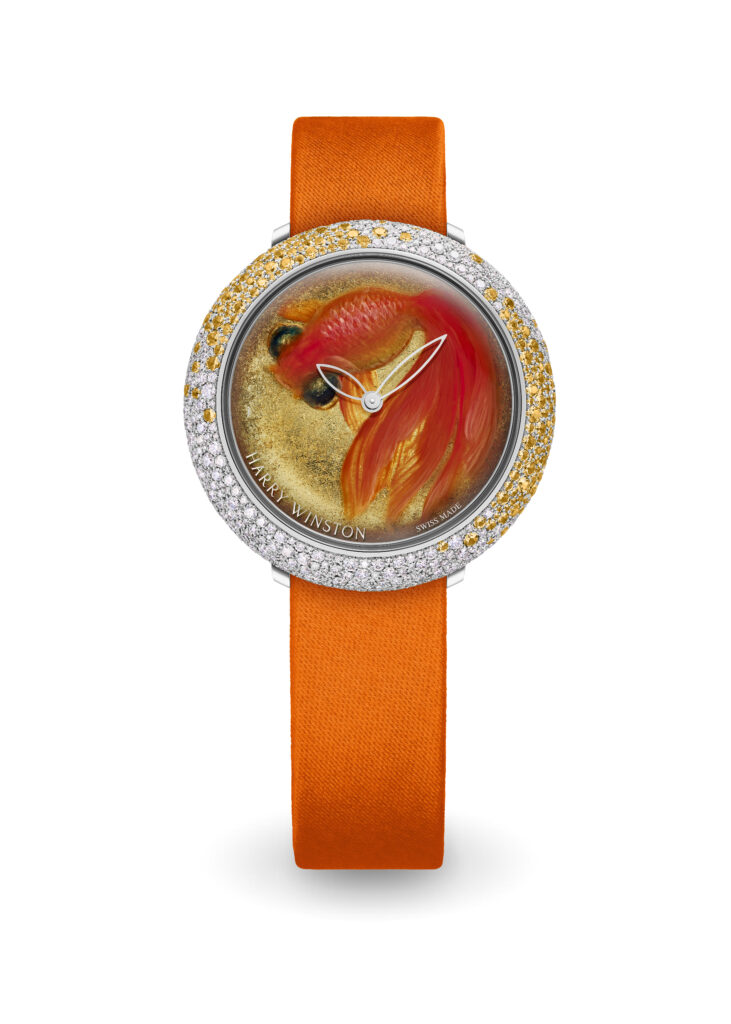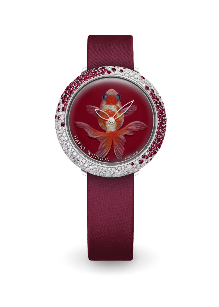 Les garde-temps Wild Treasures, conçus en collaboration avec l’artiste japonais Riusuke Fukahori, repoussent les limites de la créativité. Chaque cadran représente des poissons rouges en « peinture dimensionnelle 2.5 », technique qui allie résine et peinture acrylique pour un réalisme saisissant.