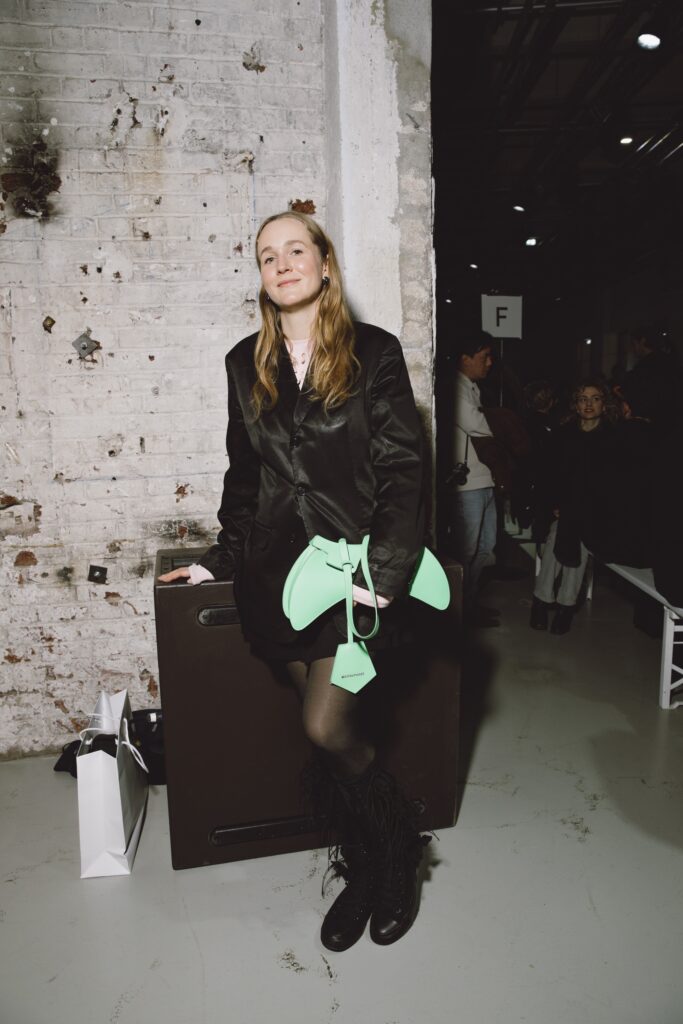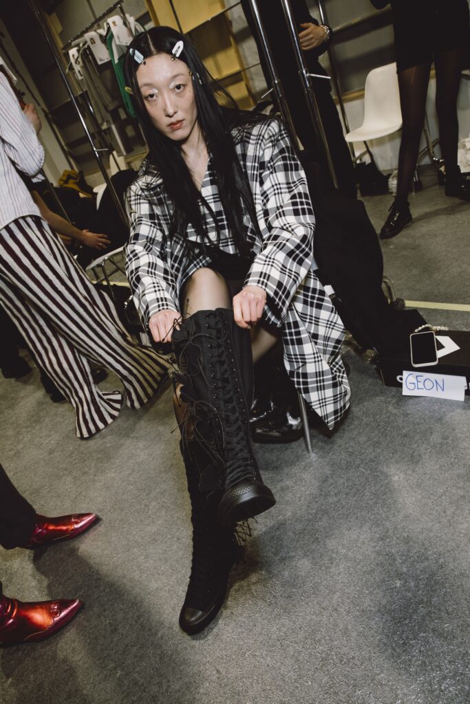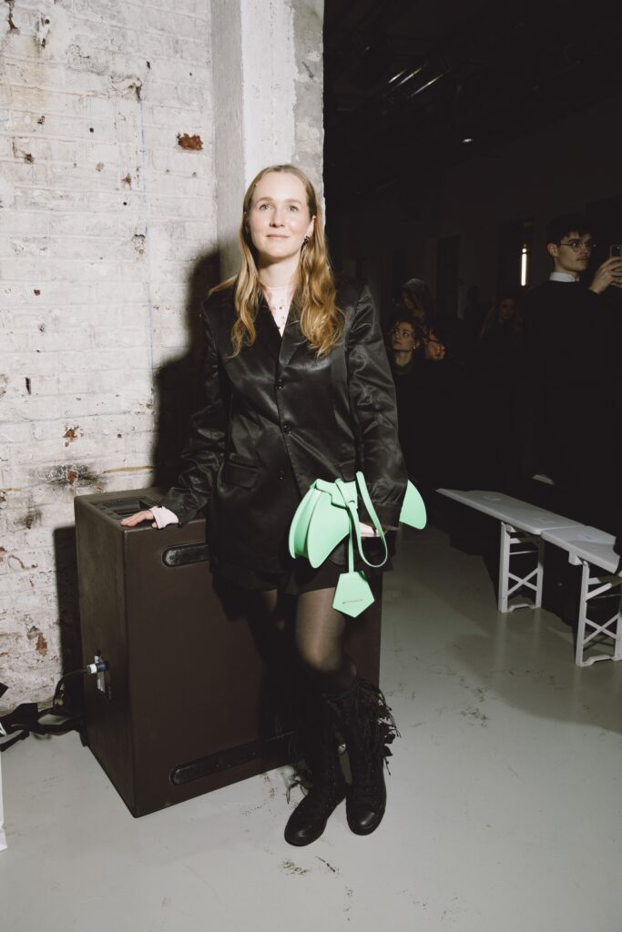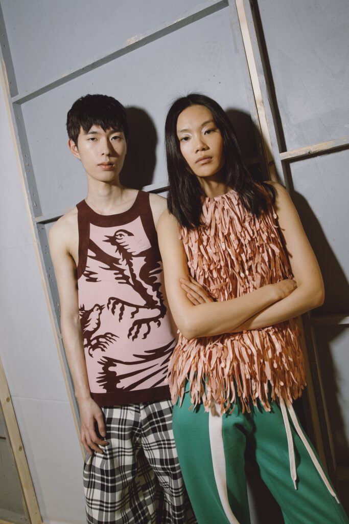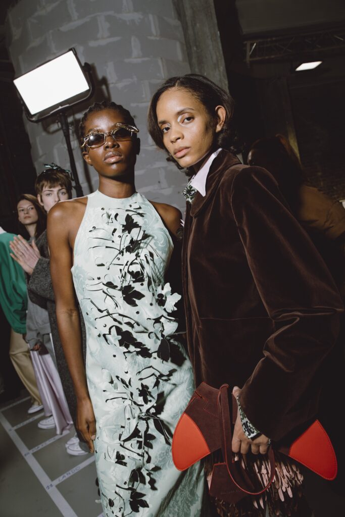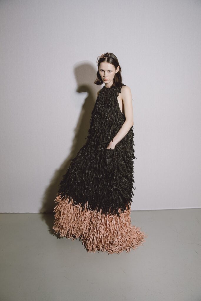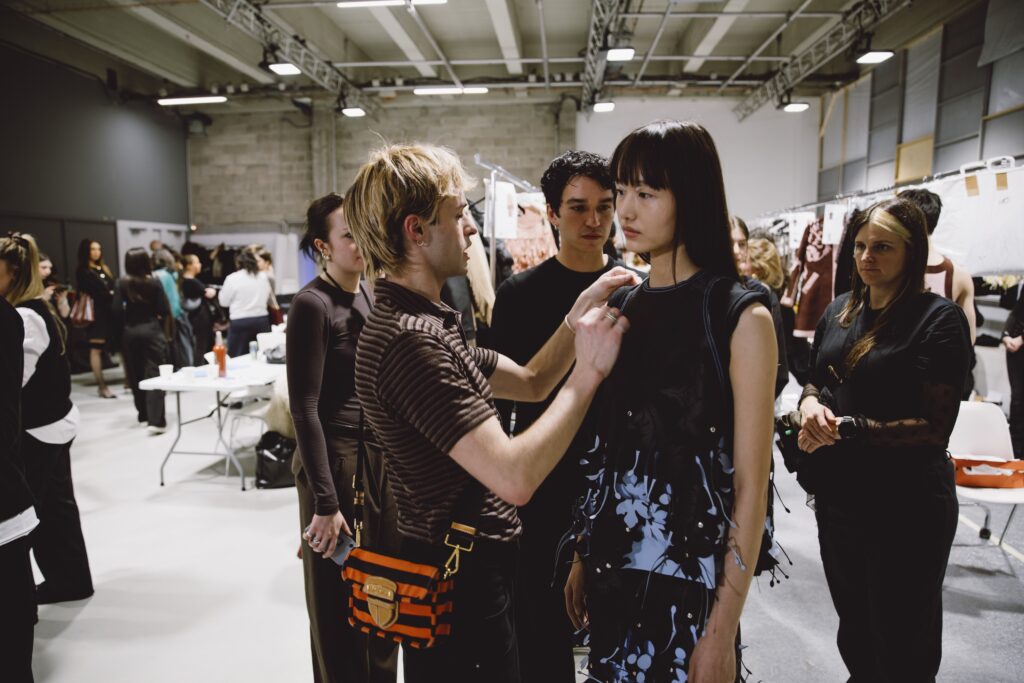 La collection « Futurs Memories » d’Alphonse Maitrepierre explore brillamment les frontières temporelles, fusionnant nostalgie et modernité. Elle juxtapose habilement des pièces structurées à des silhouettes plus décontractées, accentuant l’audace créative grâce à l’intégration stratégique des emblématiques chaussures Converse. Techniques modernes et matériaux recyclés comme les découpes laser précises, broderies raffinées et tissus upcyclés soulignent l’engagement de Maitrepierre pour une mode durable et éthique.