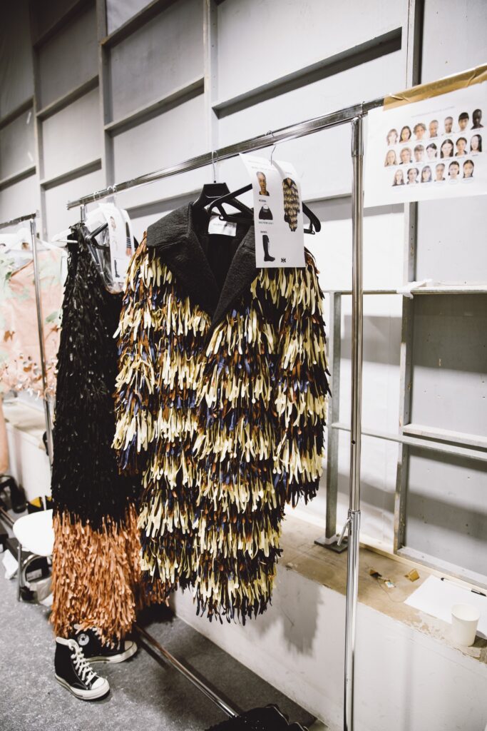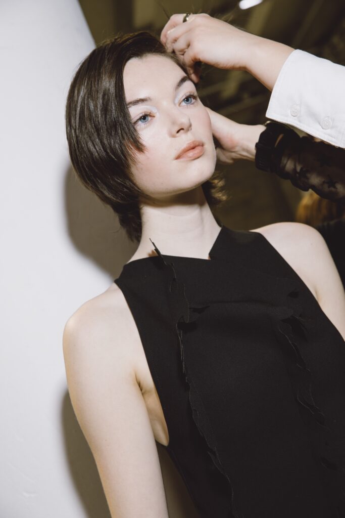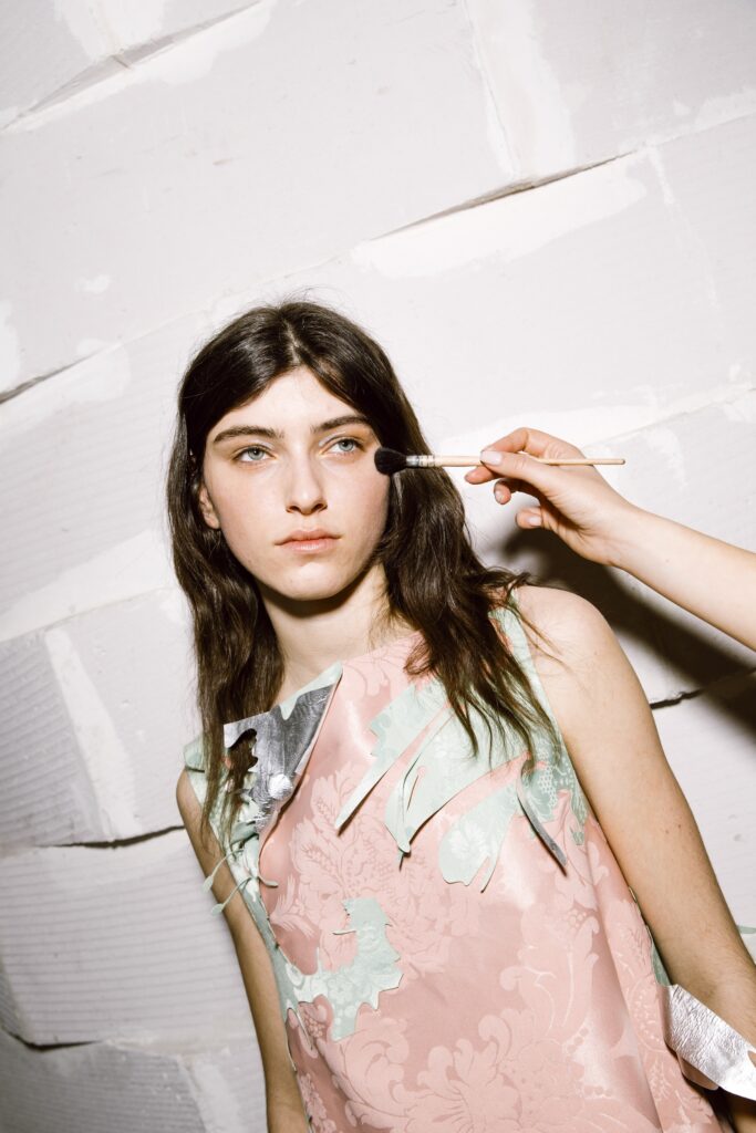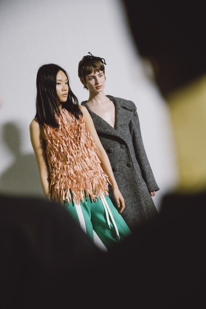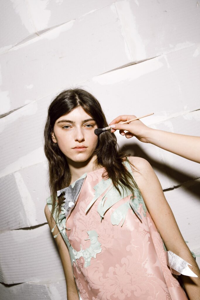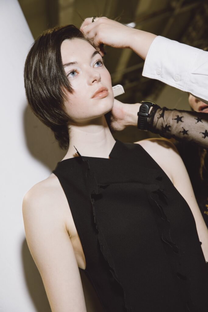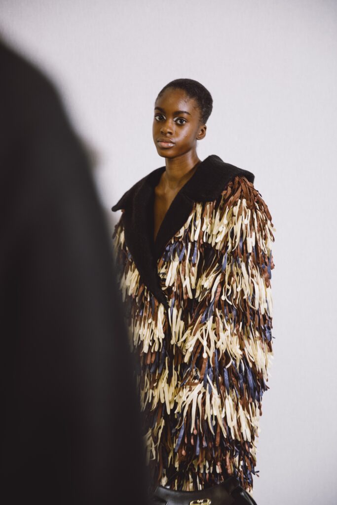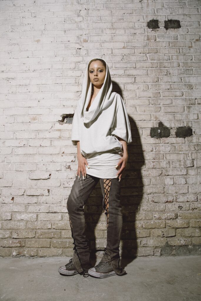 La collection « Futurs Memories » d’Alphonse Maitrepierre explore brillamment les frontières temporelles, fusionnant nostalgie et modernité. Elle juxtapose habilement des pièces structurées à des silhouettes plus décontractées, accentuant l’audace créative grâce à l’intégration stratégique des emblématiques chaussures Converse. Techniques modernes et matériaux recyclés comme les découpes laser précises, broderies raffinées et tissus upcyclés soulignent l’engagement de Maitrepierre pour une mode durable et éthique.