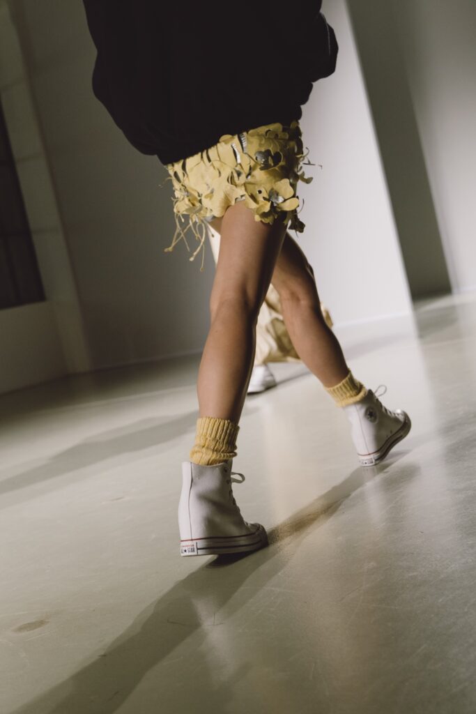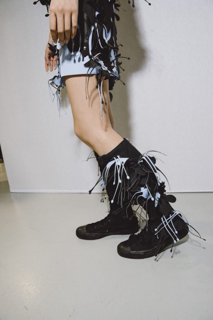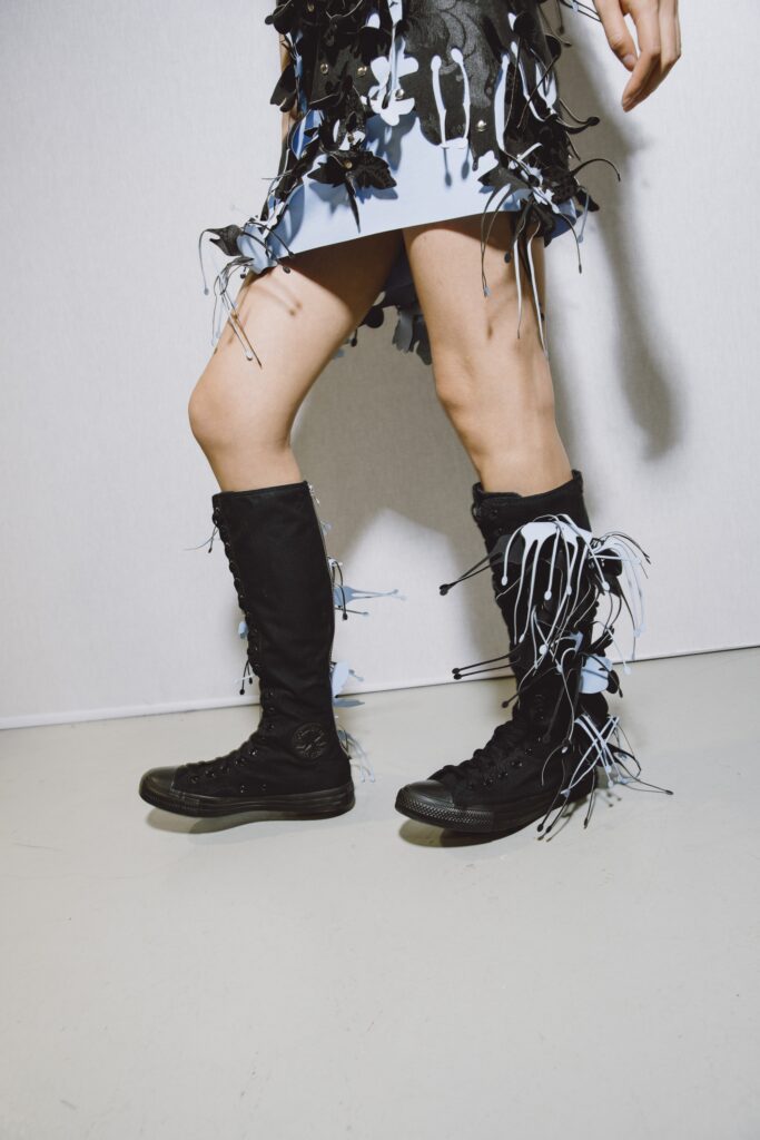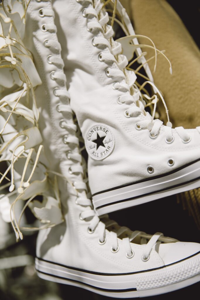 Au cœur de cette collaboration exclusive, Converse dévoile la High Knee Chuck Taylor All Star, réinterprétée magistralement par Maitrepierre. Cette nouvelle version se distingue par des broderies florales réalisées au laser et une silhouette audacieuse qui fusionne harmonieusement l’héritage sportif de Converse à l’esthétique visionnaire du créateur français. Ce modèle devient alors une véritable déclaration stylistique, marquant une nouvelle étape dans la mode responsable et innovante.