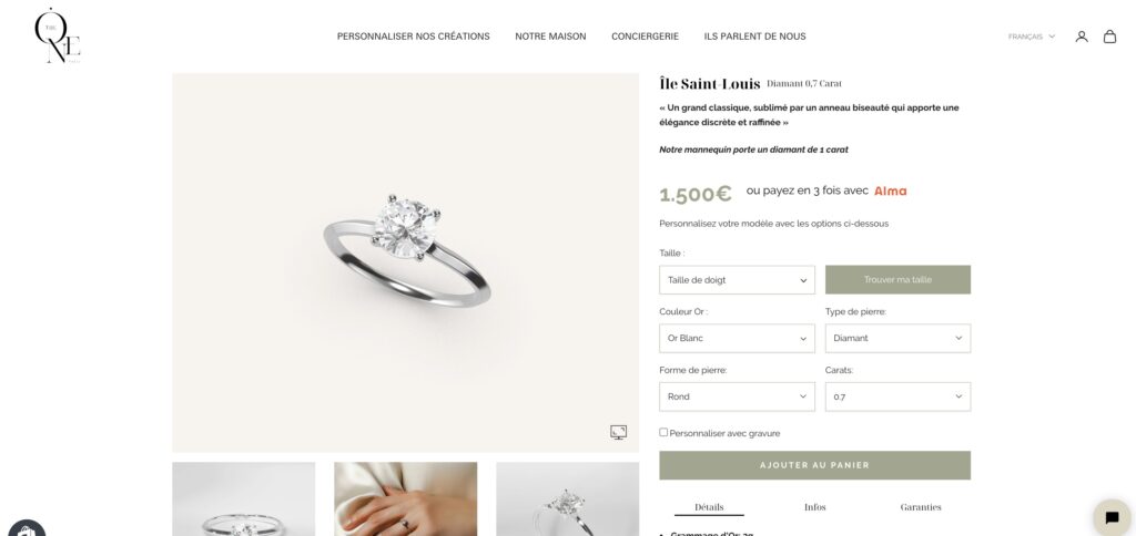 Avec des prix compétitifs, The One Paris permet d’acquérir une bague sertie d’un diamant de 1 carat pour moins de 2 000 euros, une première dans la joaillerie française. Les clients peuvent personnaliser leur bijou à travers :