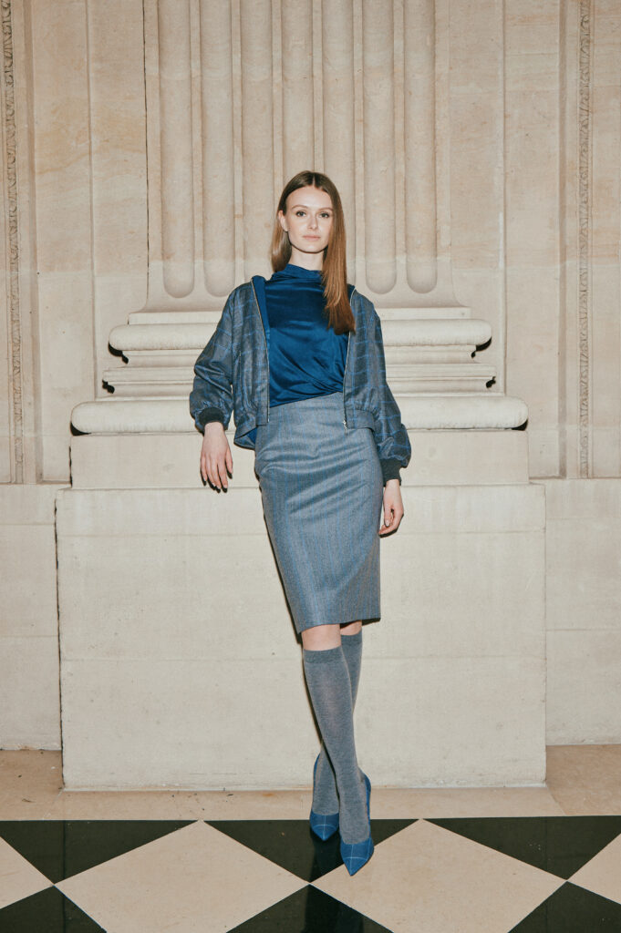 Dans une recherche d’harmonie absolue, la palette chromatique joue sur des gris profonds ou perle, du noir structurant, du blanc éclatant, du rose poudré, du rouge charnu et des déclinaisons de bleu, du marine au bleu roi. Rien ne crie, tout est équilibre.