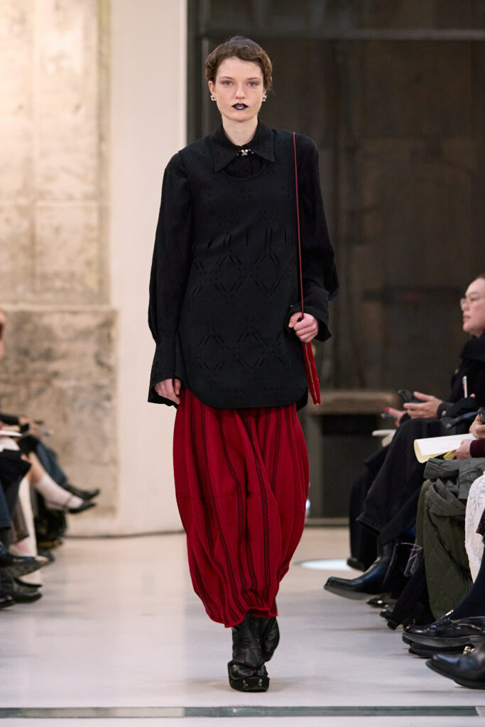 Inspirée par l’ouvrage The Forms of Japan (Tankosha, 1978), déjà source d’inspiration la saison passée, la collection explore cette fois l’art du laque japonais, où la brillance et la douceur des surfaces dialoguent avec la profondeur des formes sculptées.