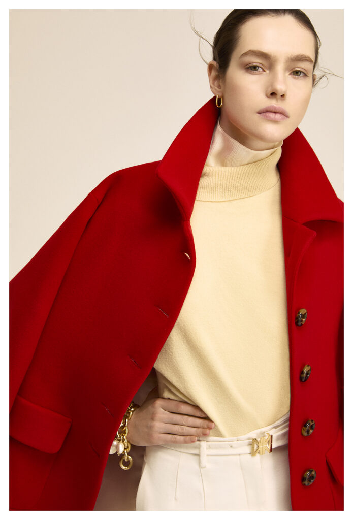 Cette saison, le tailoring retrouve une place centrale, réinterprété dans des vestes sculpturales, des manteaux aux lignes souples et des ensembles aux coupes affûtées. Chaque pièce porte l’empreinte du savoir-faire Natan, puisant dans les traditions artisanales de ses ateliers bruxellois tout en s’ancrant dans une modernité assumée.