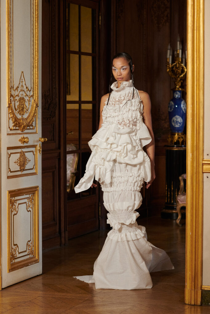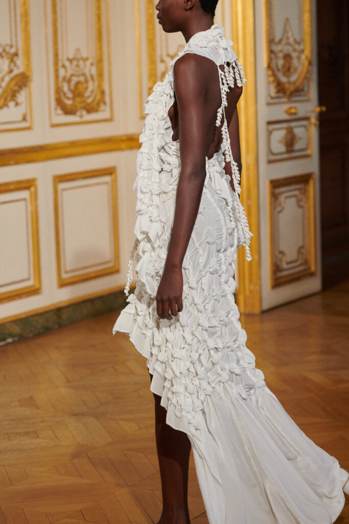 Présentée le 7 mars 2025 à l’Ambassade d’Irlande à Paris, cette collection navigue entre l’héritage textile et l’expérimentation contemporaine, créant des pièces aériennes, sculpturales et poétiques, dans un dialogue constant entre tradition et modernité.