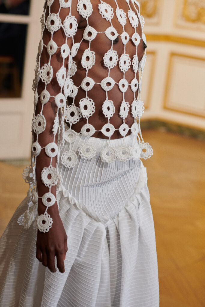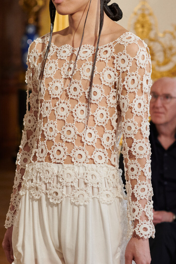 - Des structures en crochet irlandais, inspirées des médaillons d’archives, réinterprétées avec des techniques innovantes.