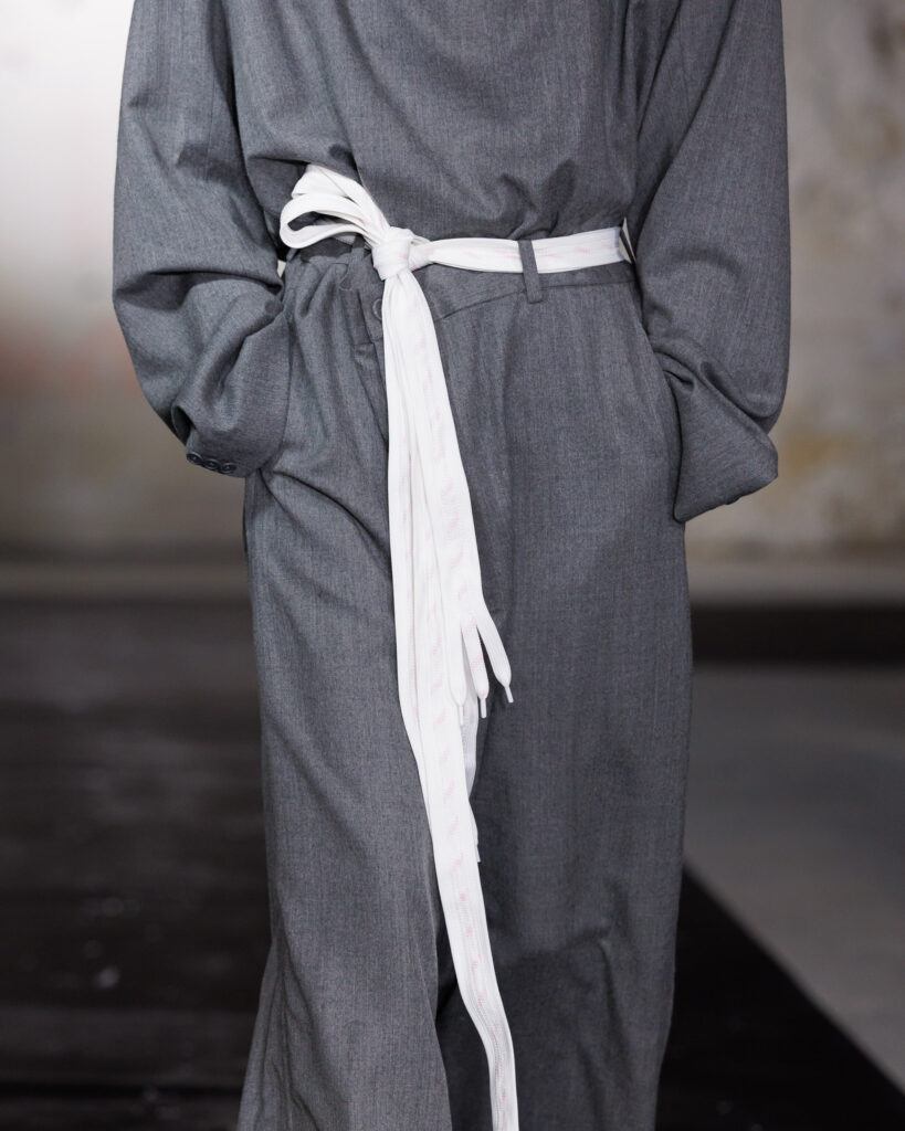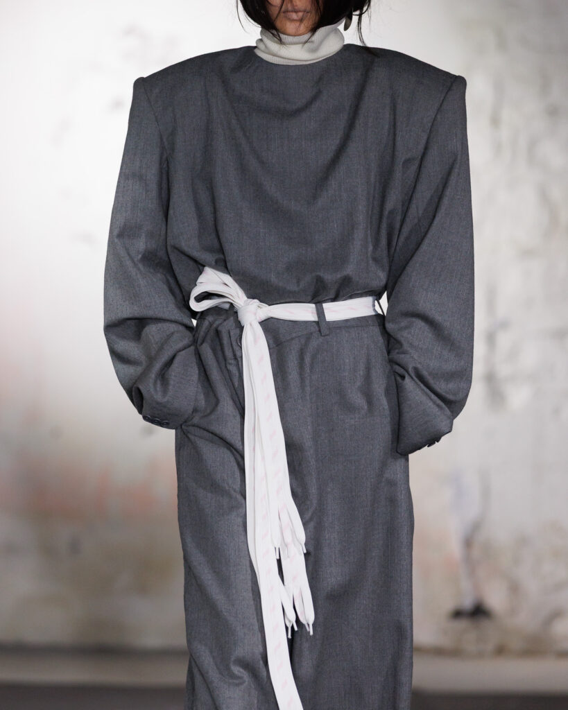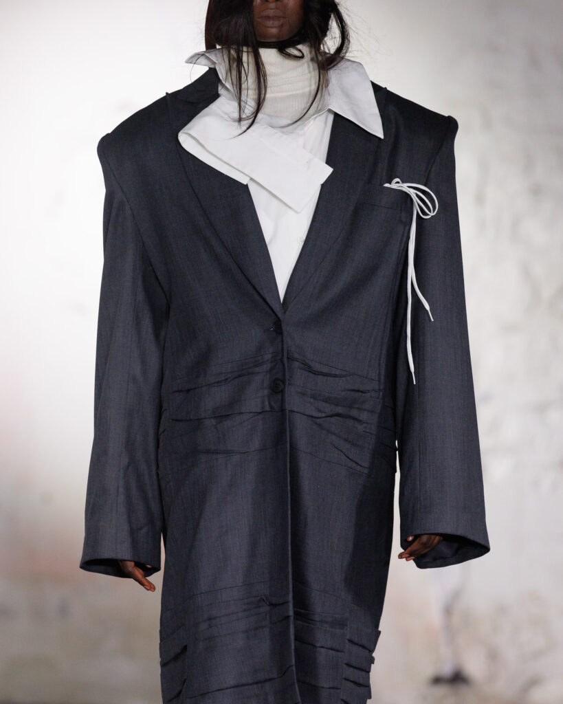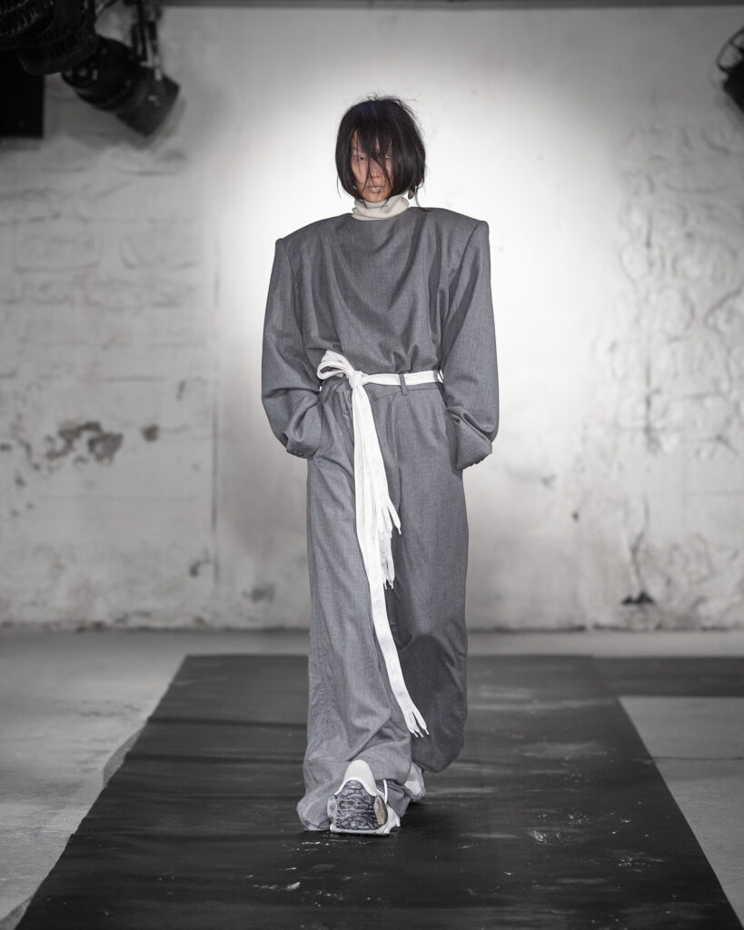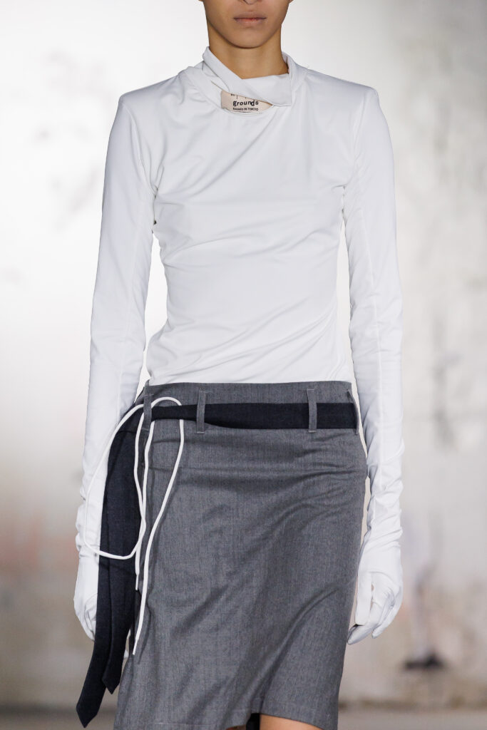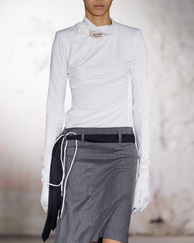 La tension entre familiarité et innovation est au cœur de chaque création. Les détails futuristes côtoient des matériaux traditionnels, créant un contraste saisissant qui trouble délicieusement la perception du spectateur. Cette recherche d’équilibre parfait entre classique et futuriste fait partie intégrante du langage créatif de grounds, contribuant à forger son identité unique dans l’univers de la mode.