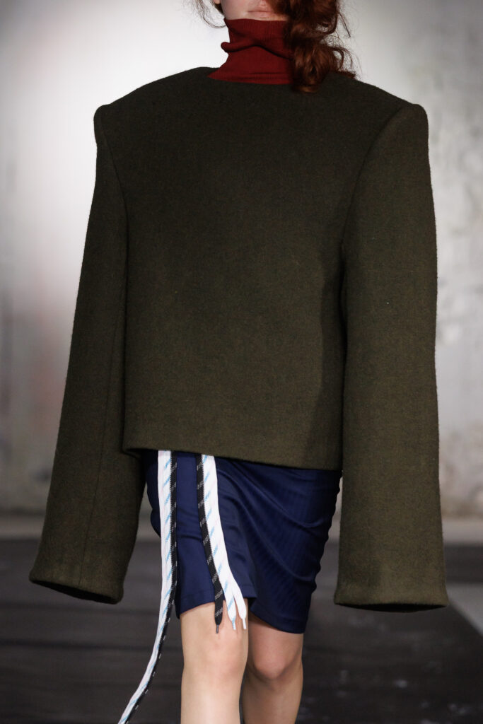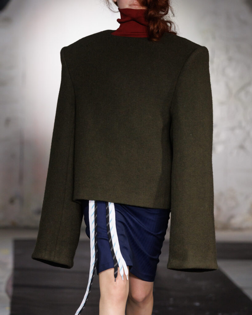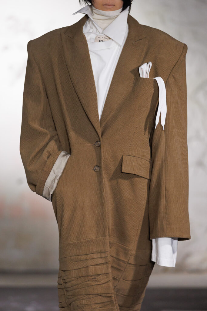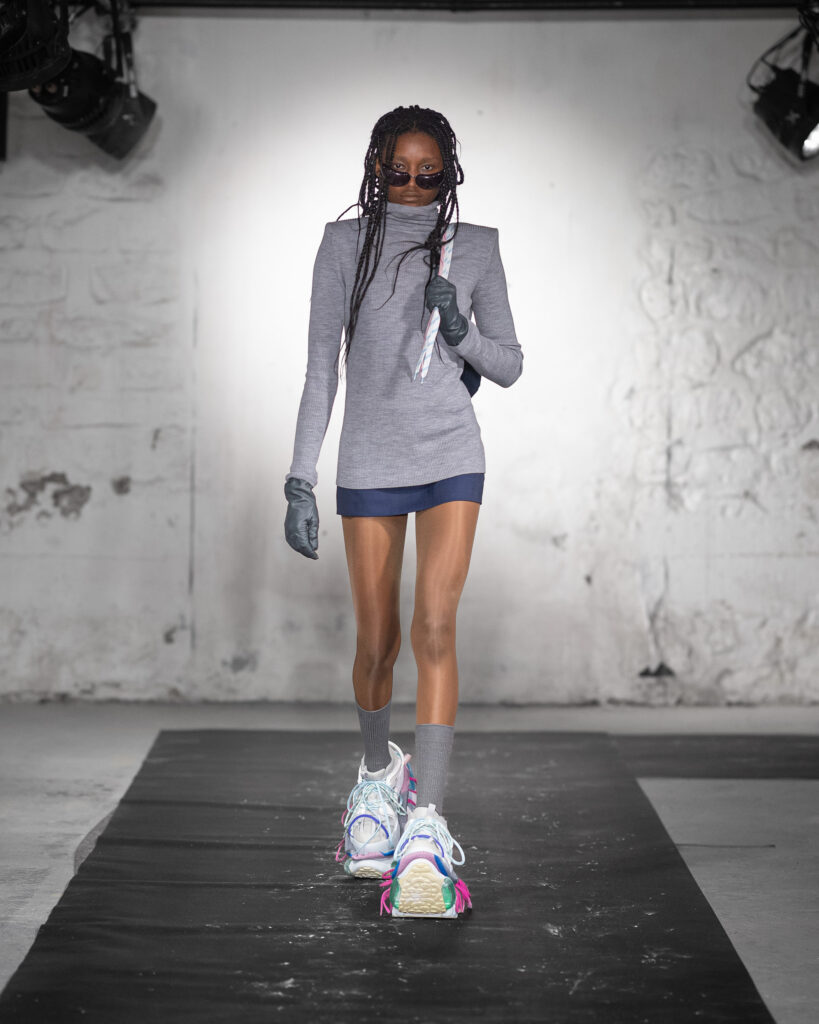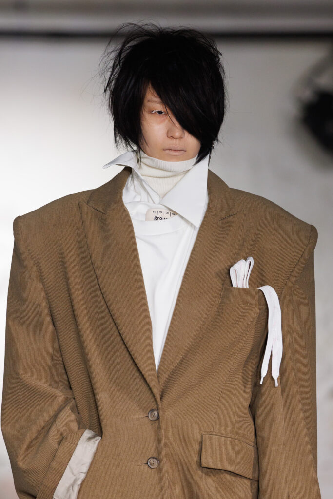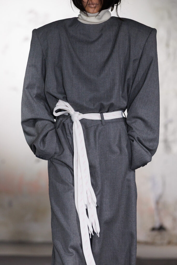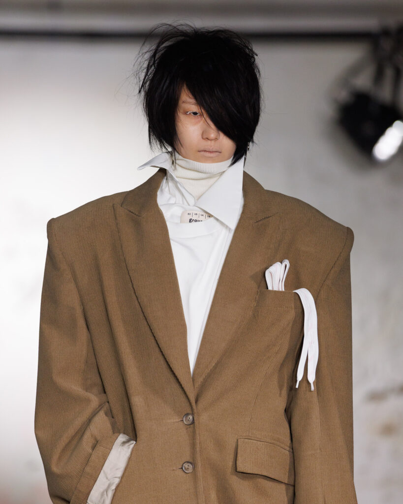 La tension entre familiarité et innovation est au cœur de chaque création. Les détails futuristes côtoient des matériaux traditionnels, créant un contraste saisissant qui trouble délicieusement la perception du spectateur. Cette recherche d’équilibre parfait entre classique et futuriste fait partie intégrante du langage créatif de grounds, contribuant à forger son identité unique dans l’univers de la mode.