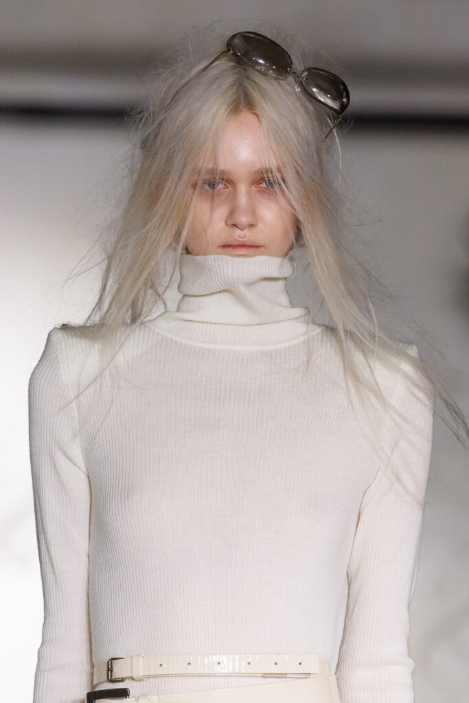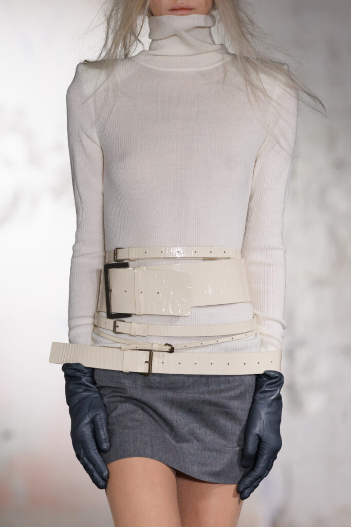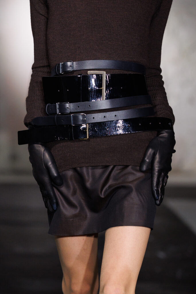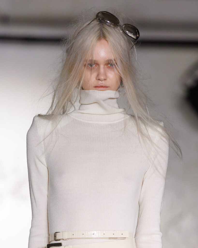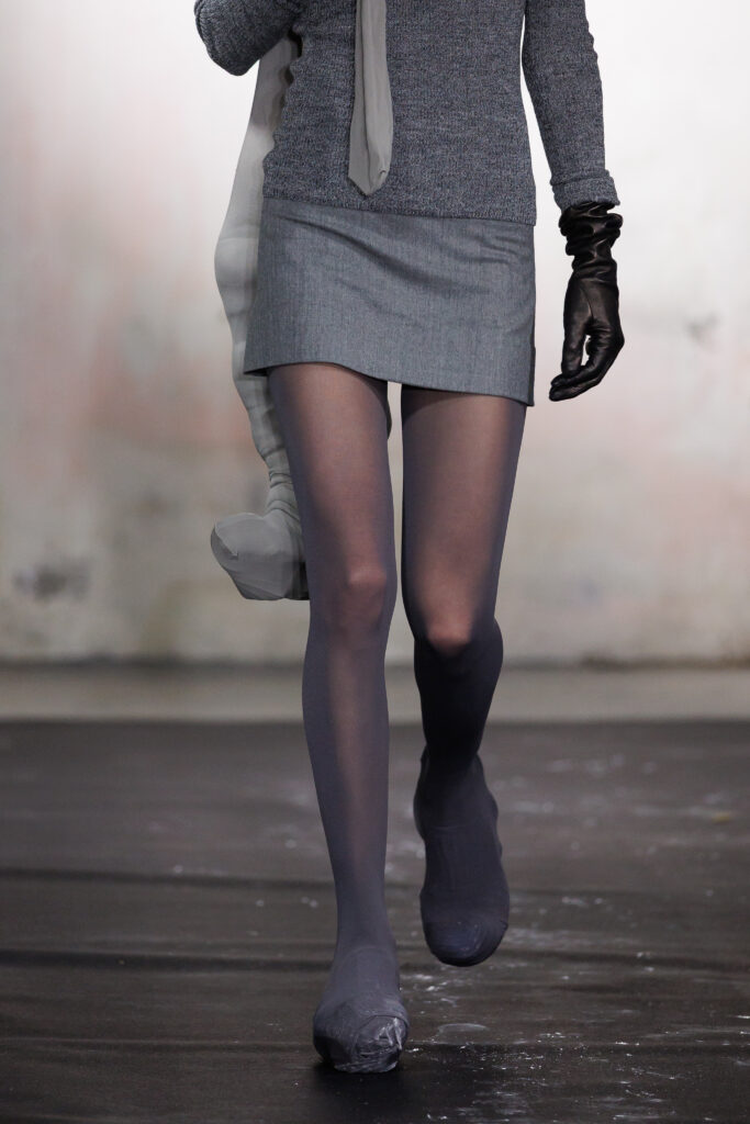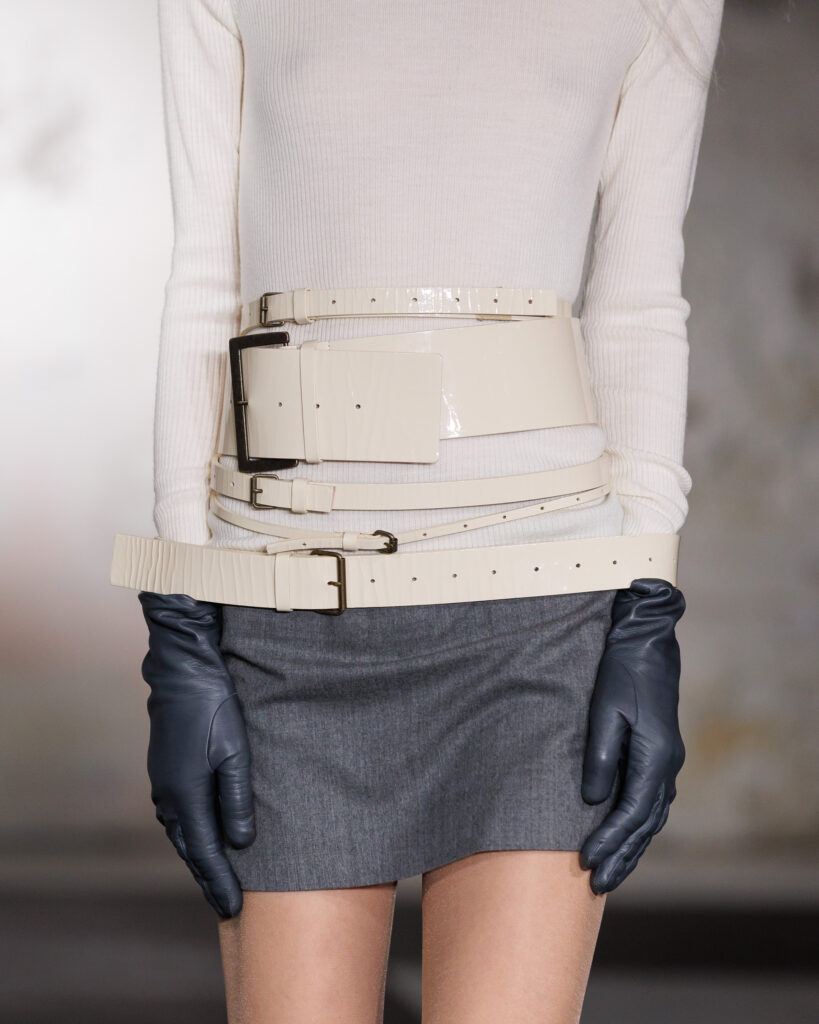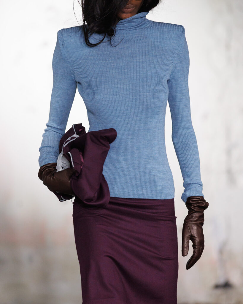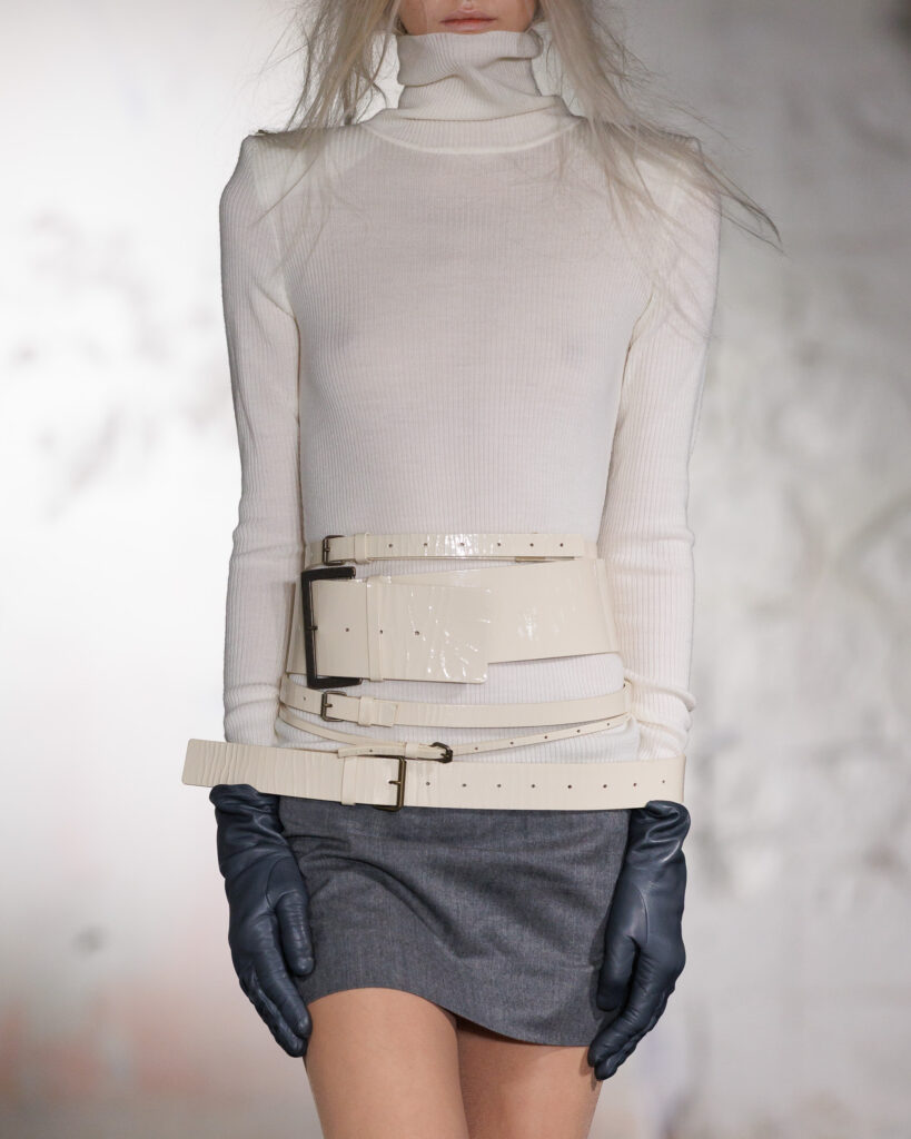 Le stylisme audacieux signé Betsy Johnson accentue cette démarche provocante, introduisant des transformations surprenantes : les mains se métamorphosent en chaussures, tandis que des éléments rigoureusement structurés flirtent avec une nonchalance étudiée. Ainsi, la collection joue habilement sur une esthétique quotidienne empreinte de sensualité provocatrice, un équilibre maîtrisé entre une allure classique et une modernité audacieuse, frôlant l’insolite.