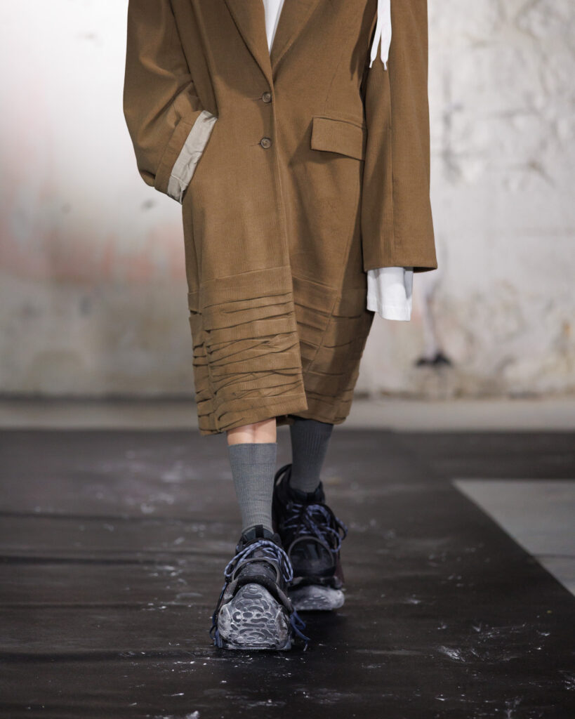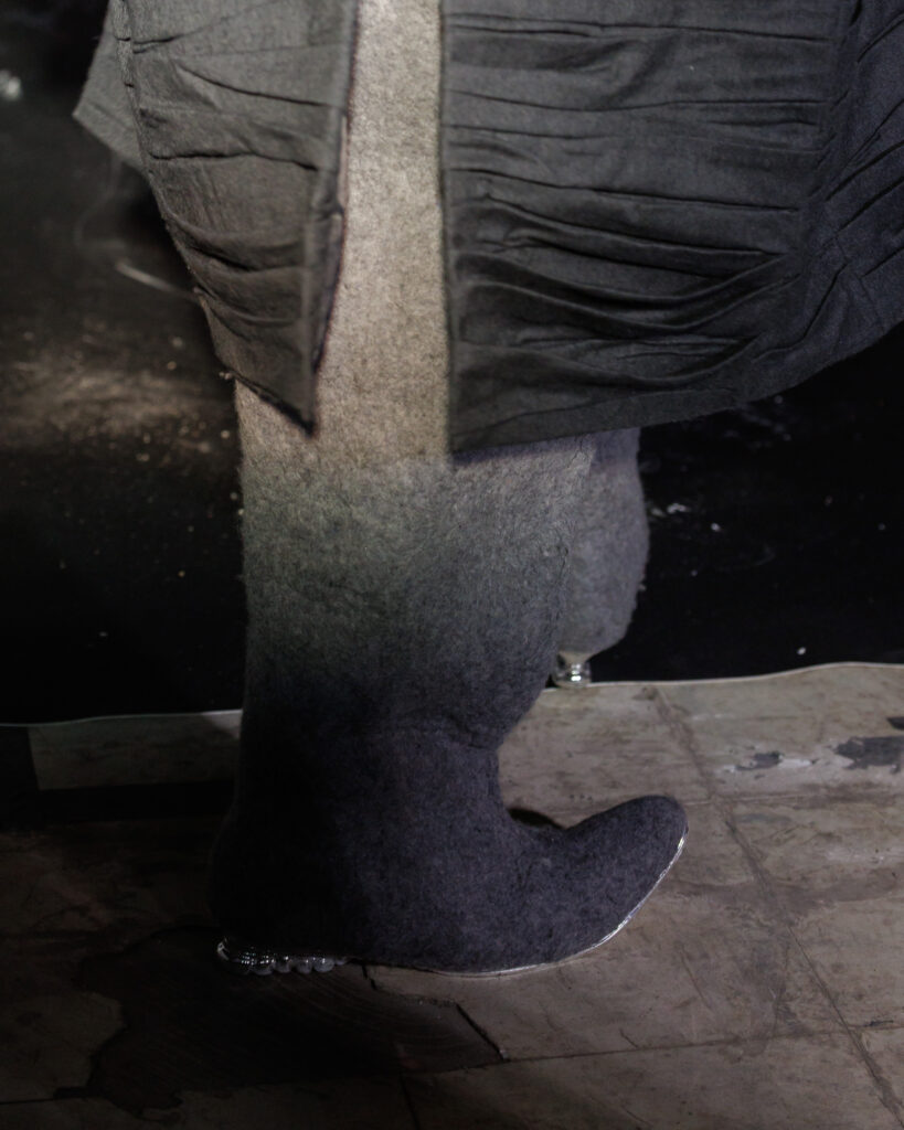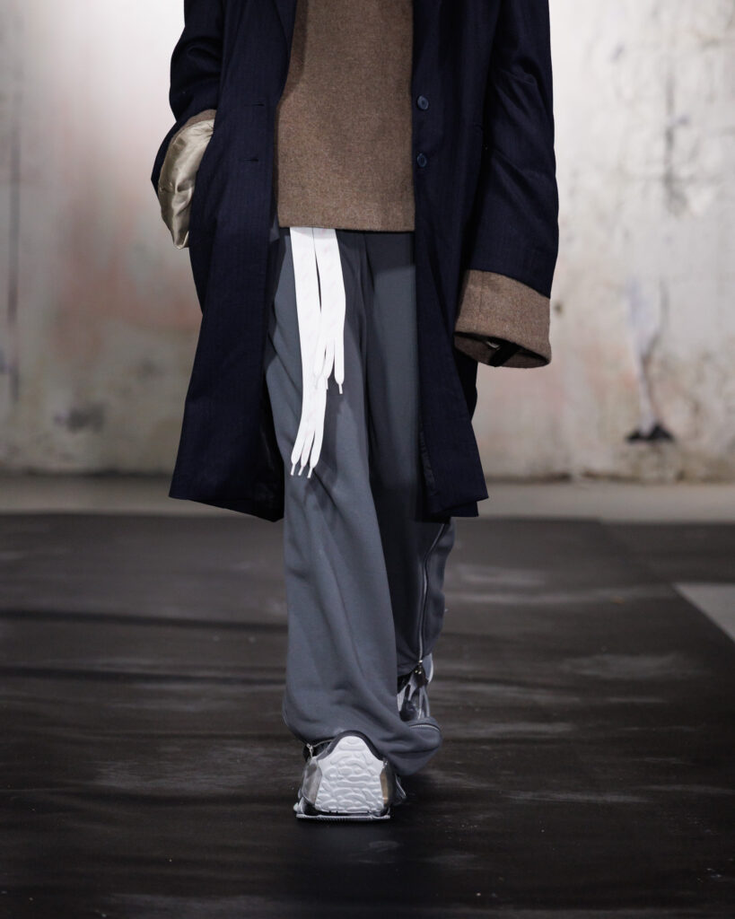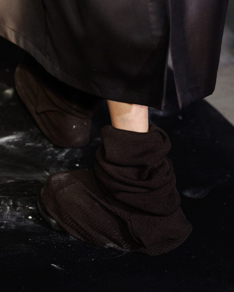Cette saison marque un tournant significatif pour grounds, qui élargit son horizon créatif au-delà de ses chaussures sculpturales emblématiques. Tout en conservant son obsession distinctive pour les silhouettes inversant la gravité, grounds explore désormais de nouveaux territoires de l’habillement et des accessoires haut de gamme.