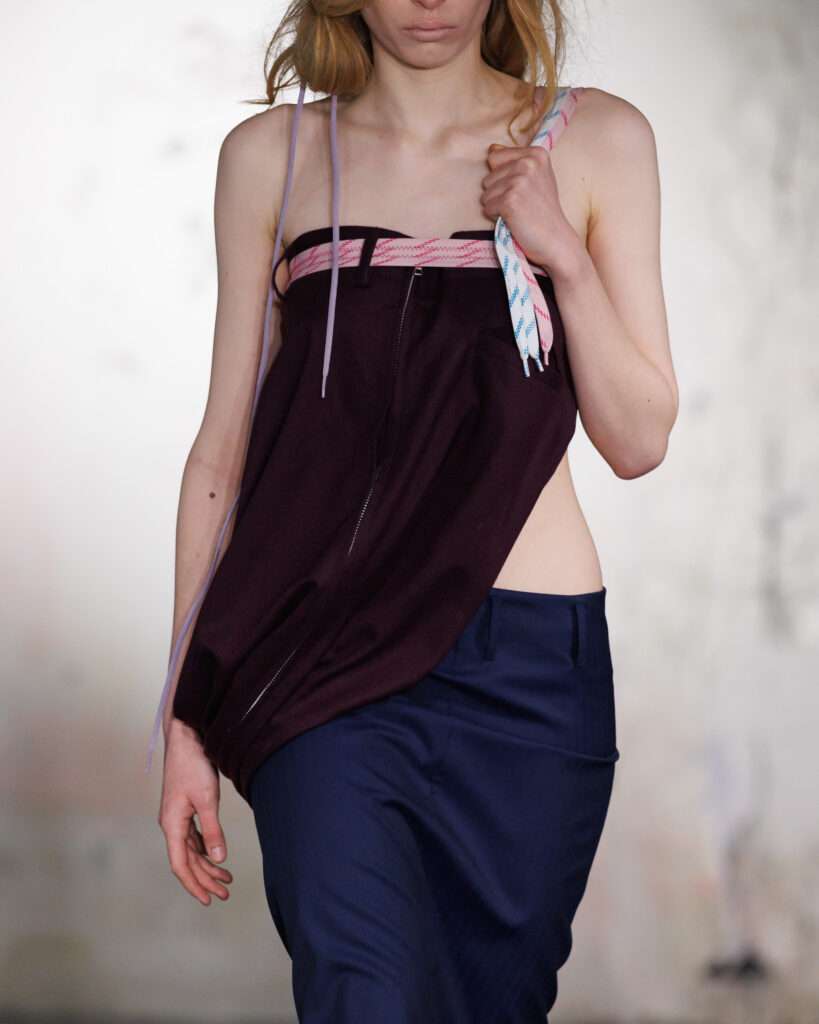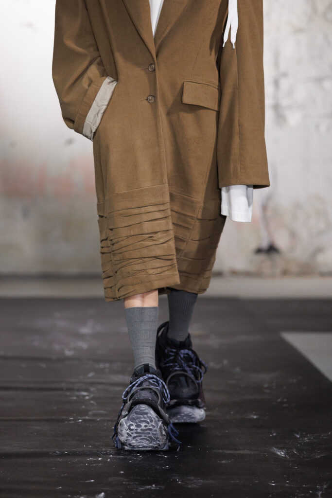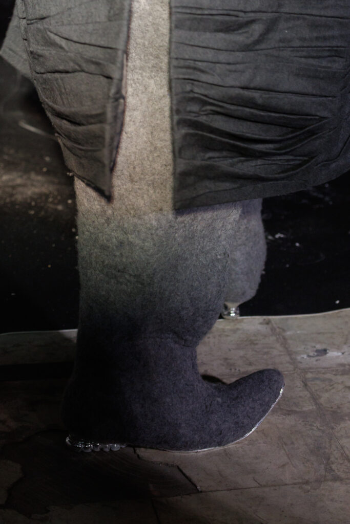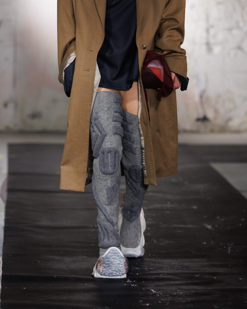 Cette saison marque un tournant significatif pour grounds, qui élargit son horizon créatif au-delà de ses chaussures sculpturales emblématiques. Tout en conservant son obsession distinctive pour les silhouettes inversant la gravité, grounds explore désormais de nouveaux territoires de l’habillement et des accessoires haut de gamme.