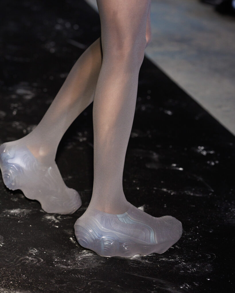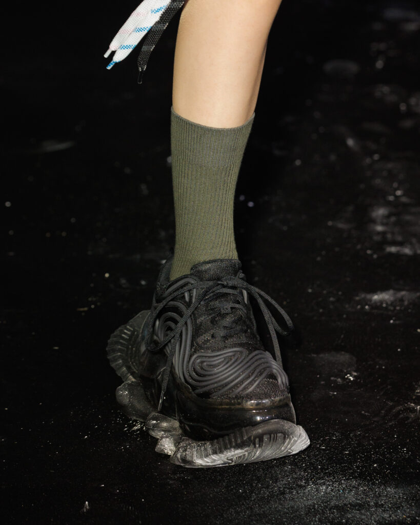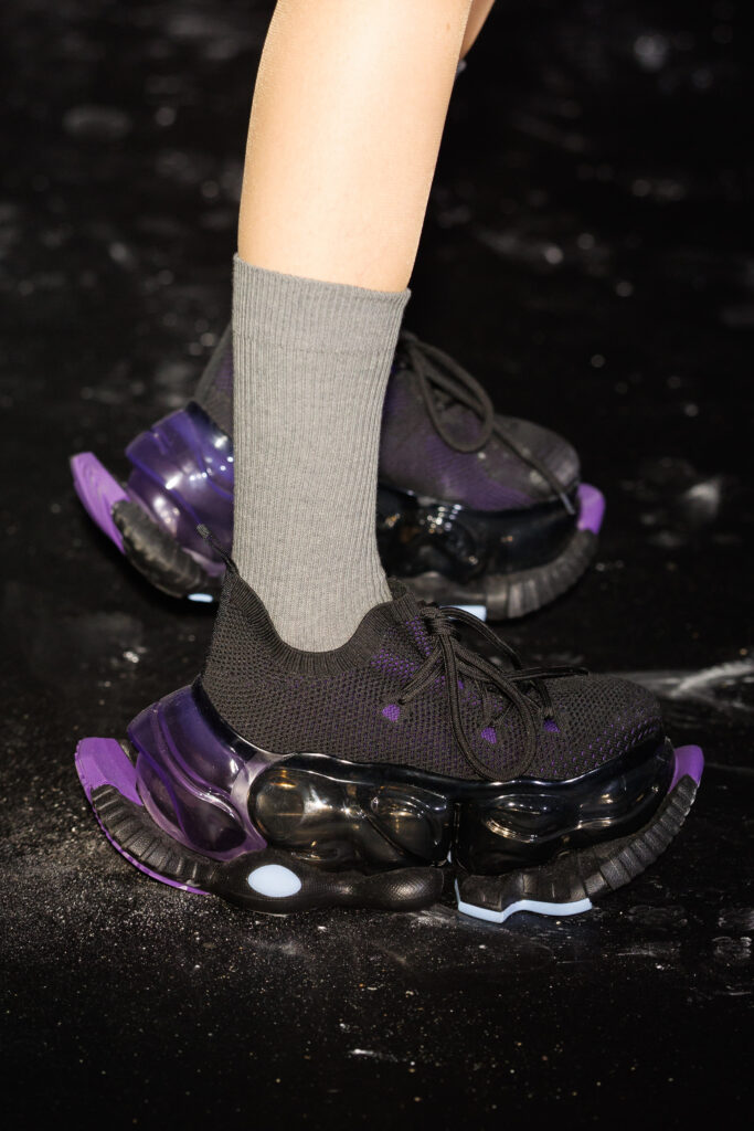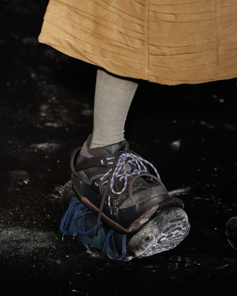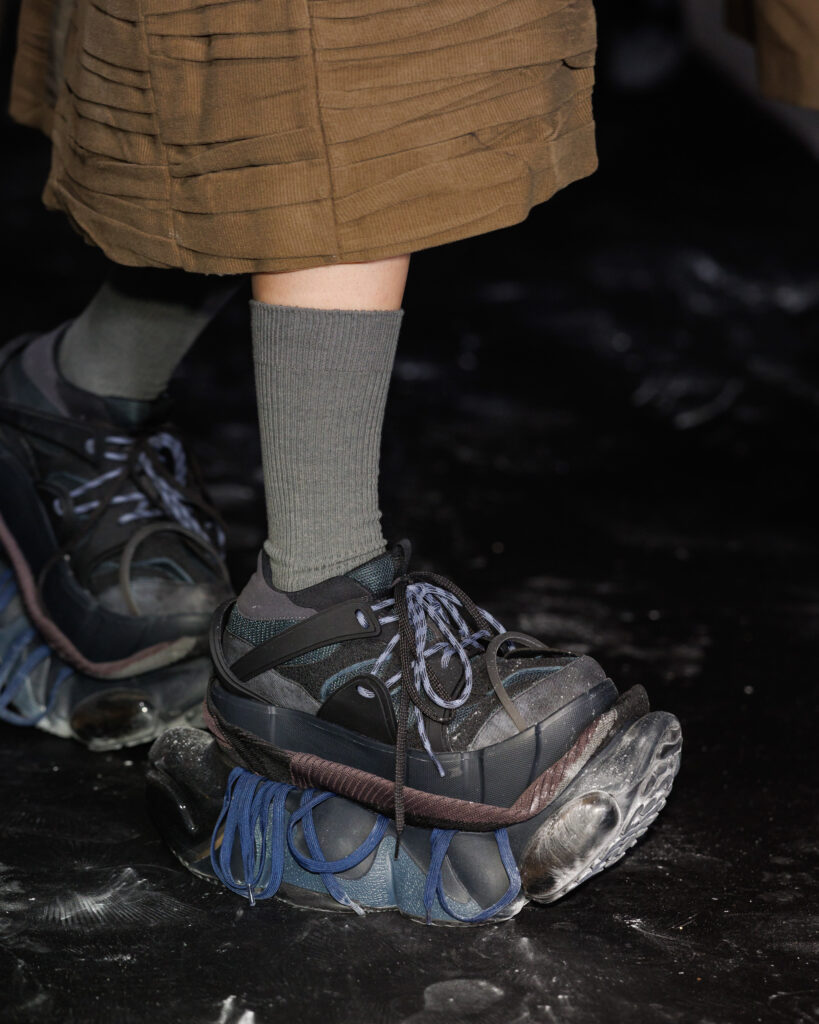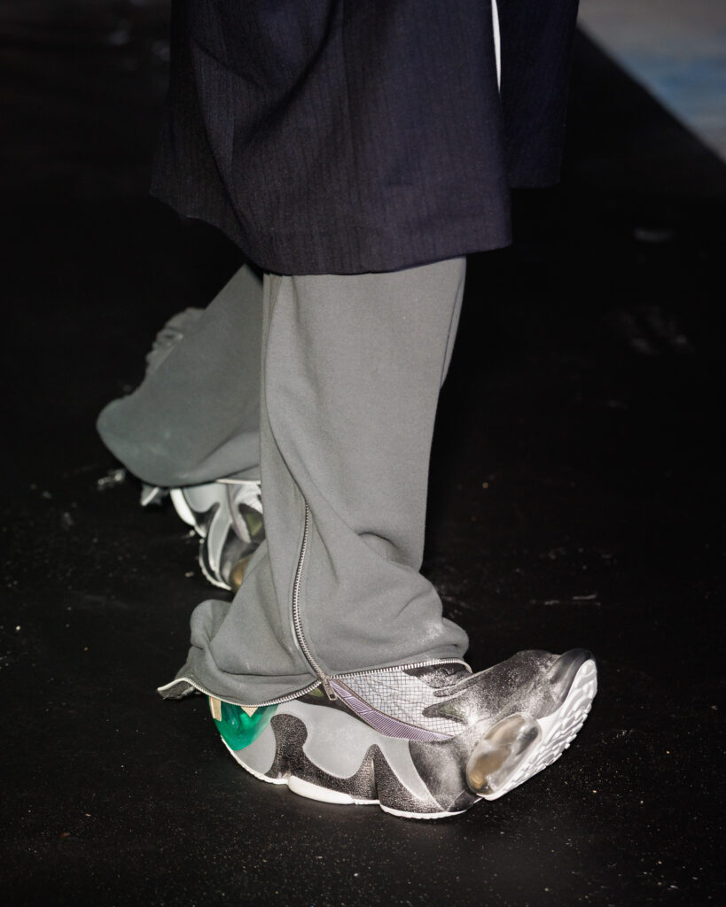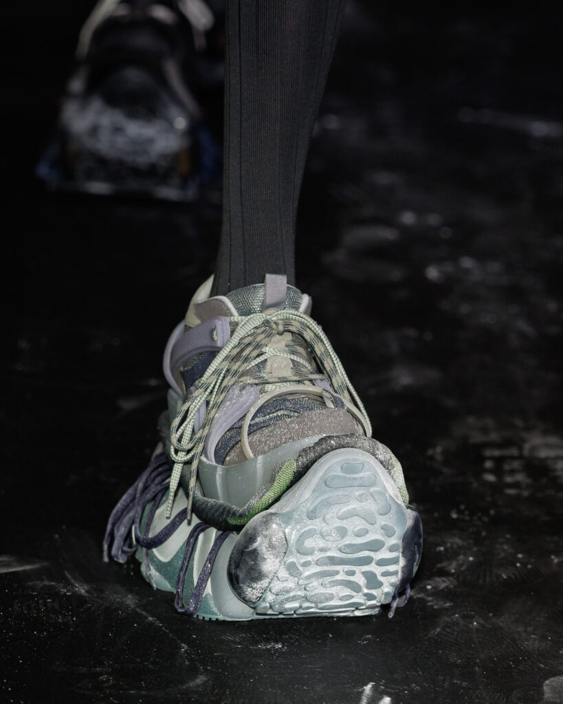 Toujours focalisée sur le pied et son rapport singulier avec le sol, la marque réaffirme son expertise à travers des chaussures aux semelles amplifiées et des constructions techniques sophistiquées, repoussant sans cesse les limites de l’imagination. Mais l’évolution ne s’arrête pas là : grounds fait cette saison une entrée remarquée dans l’univers des lunettes de soleil haut de gamme, élargissant son spectre créatif tout en restant fidèle à sa philosophie d’une mode immersive et radicalement innovante.