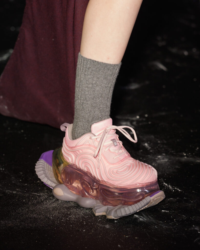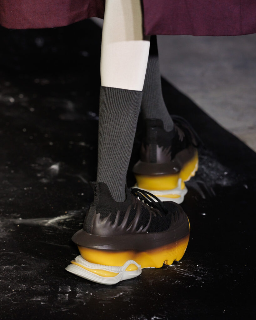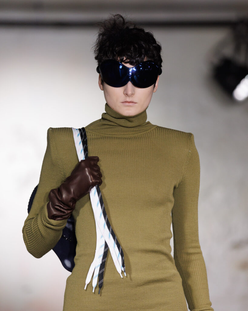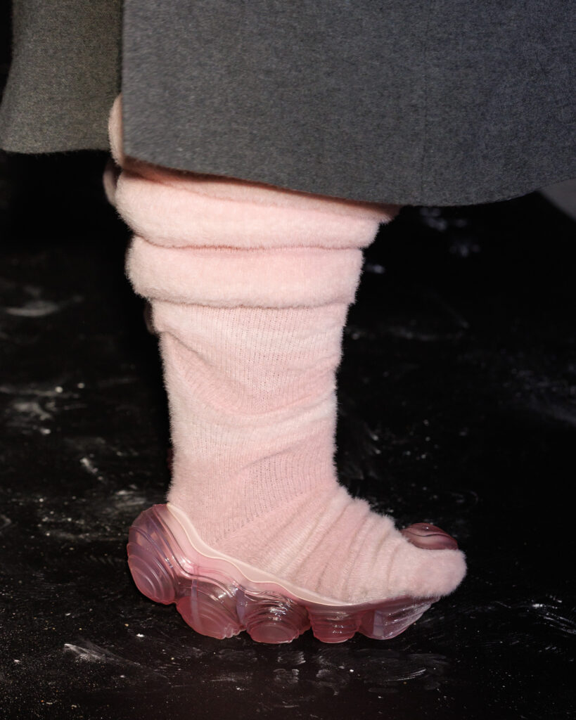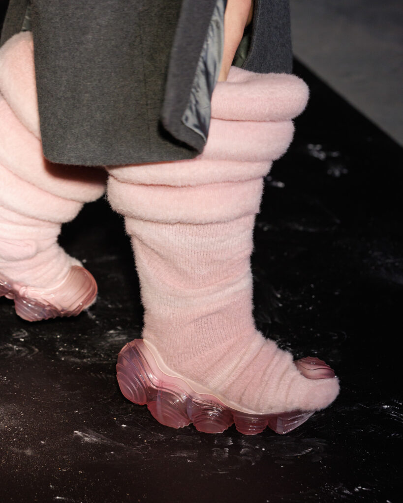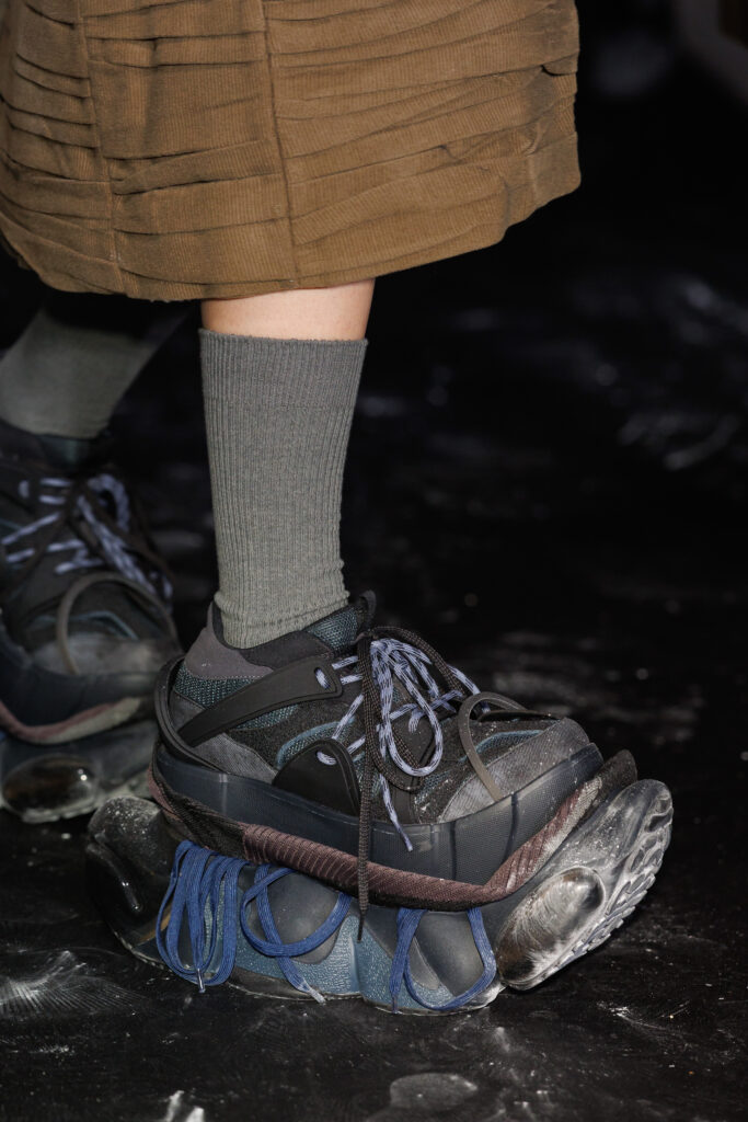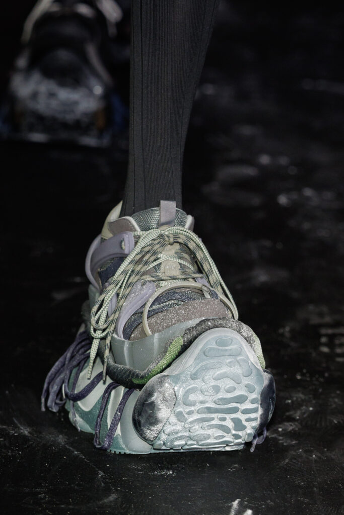 Toujours focalisée sur le pied et son rapport singulier avec le sol, la marque réaffirme son expertise à travers des chaussures aux semelles amplifiées et des constructions techniques sophistiquées, repoussant sans cesse les limites de l’imagination. Mais l’évolution ne s’arrête pas là : grounds fait cette saison une entrée remarquée dans l’univers des lunettes de soleil haut de gamme, élargissant son spectre créatif tout en restant fidèle à sa philosophie d’une mode immersive et radicalement innovante.