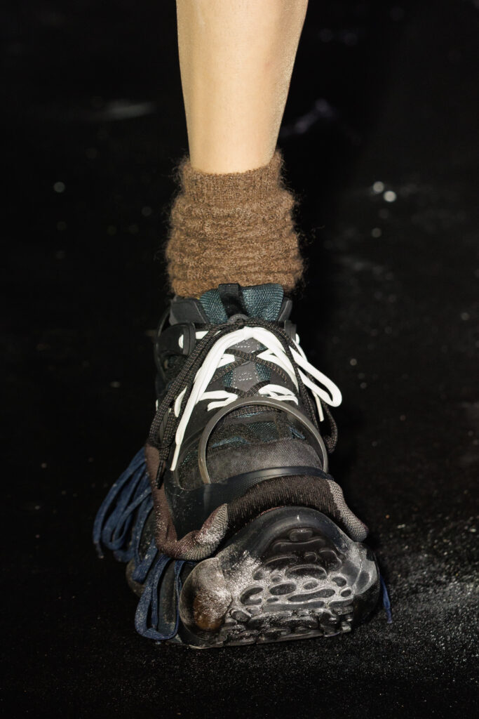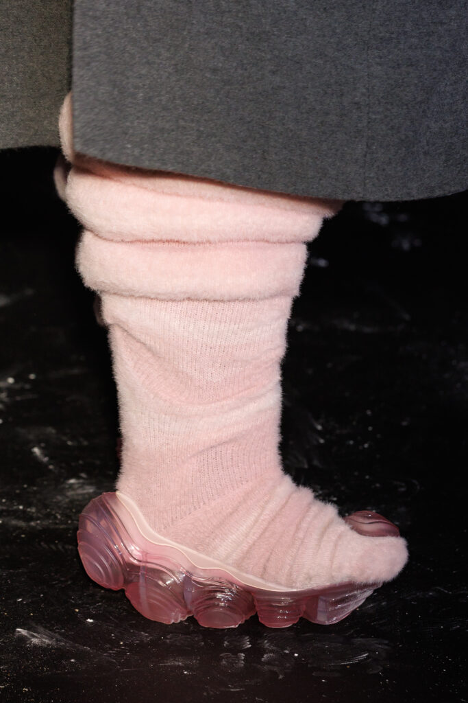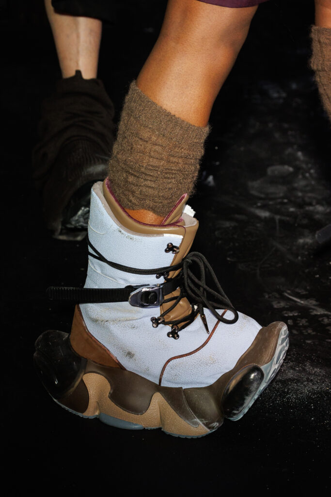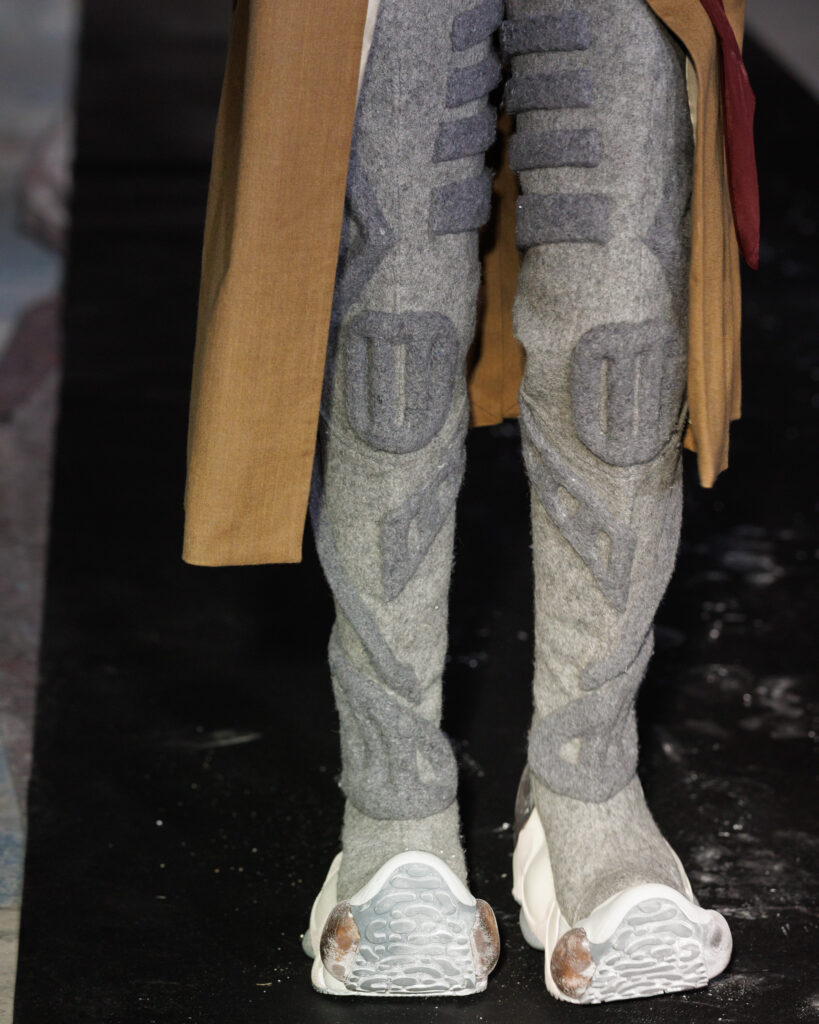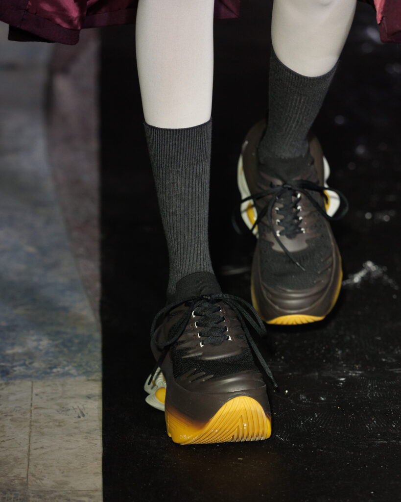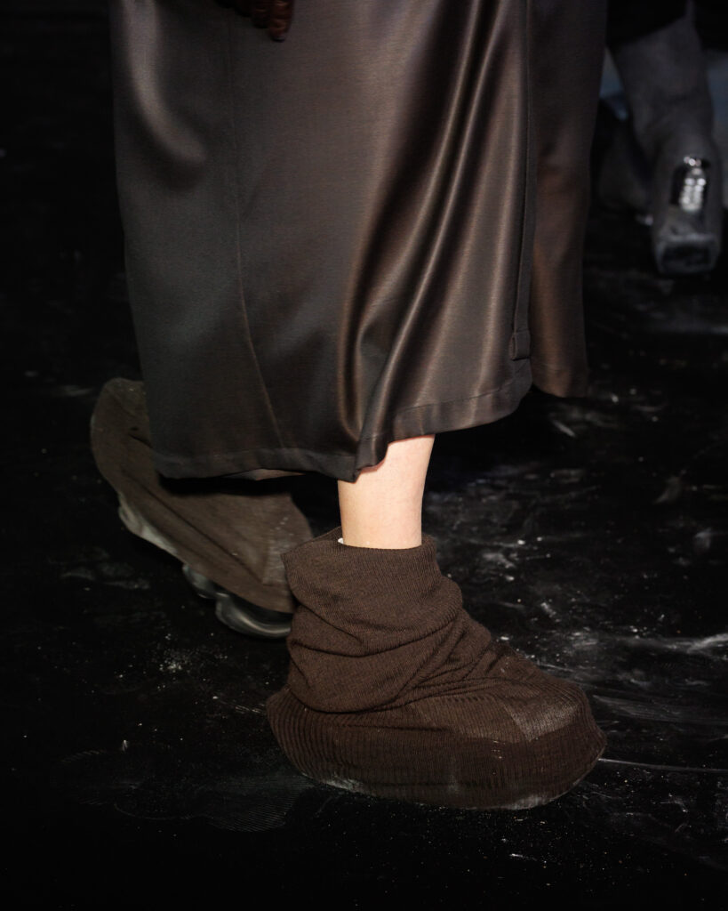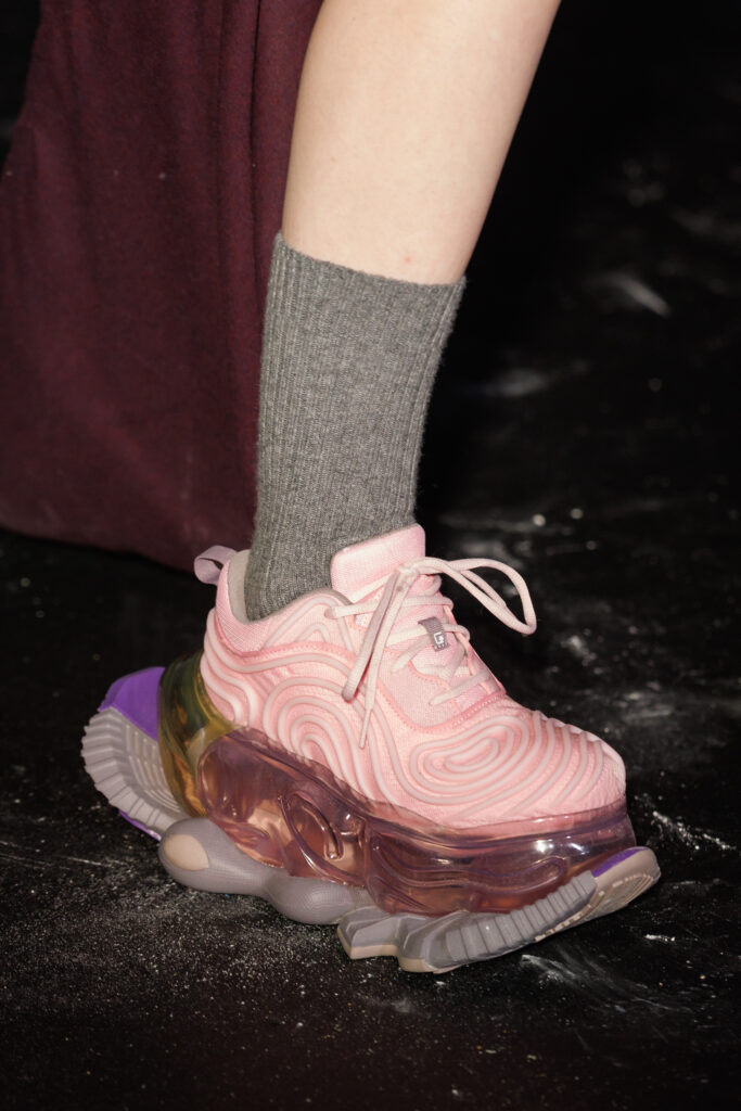 Toujours focalisée sur le pied et son rapport singulier avec le sol, la marque réaffirme son expertise à travers des chaussures aux semelles amplifiées et des constructions techniques sophistiquées, repoussant sans cesse les limites de l’imagination. Mais l’évolution ne s’arrête pas là : grounds fait cette saison une entrée remarquée dans l’univers des lunettes de soleil haut de gamme, élargissant son spectre créatif tout en restant fidèle à sa philosophie d’une mode immersive et radicalement innovante.